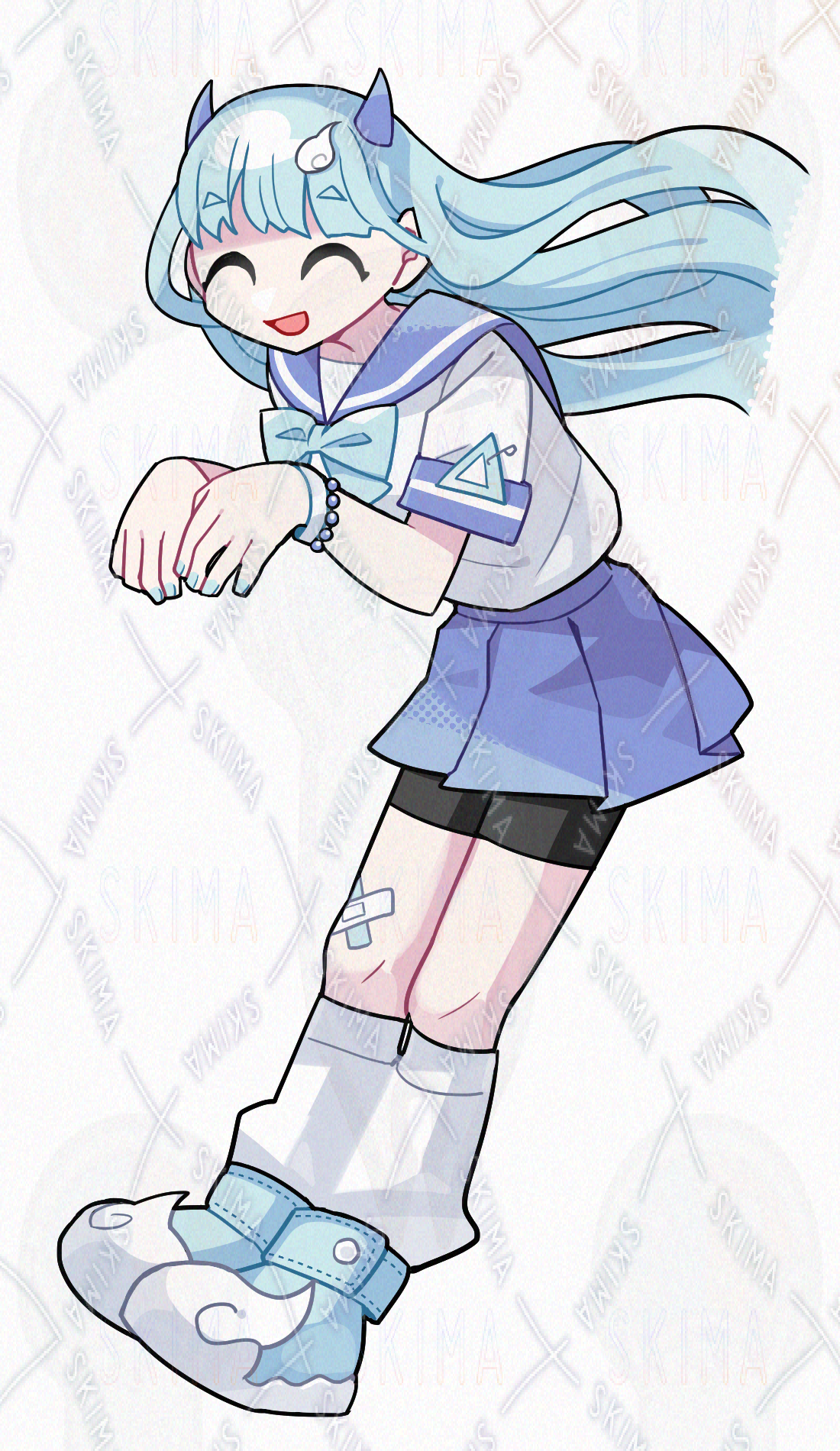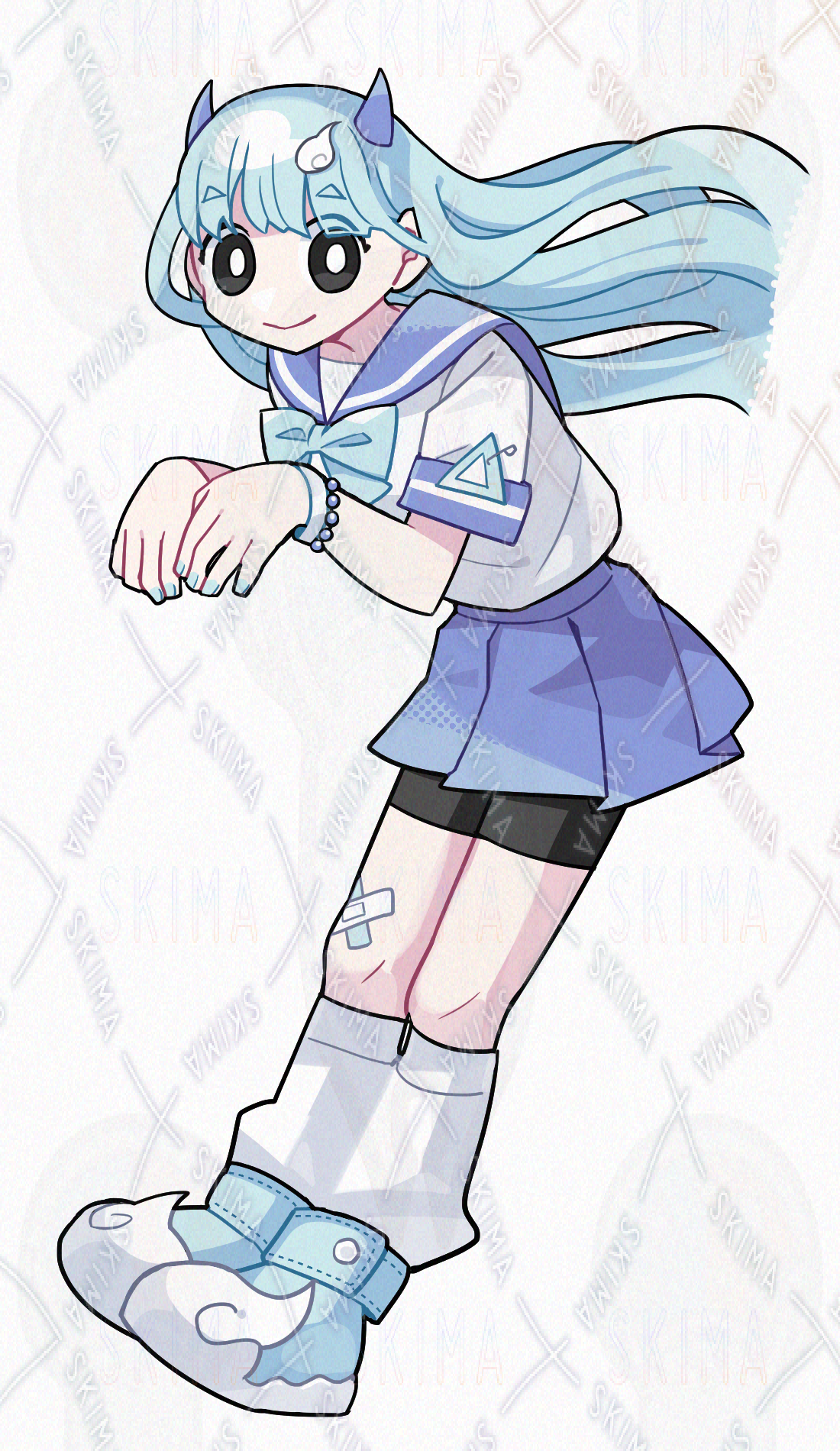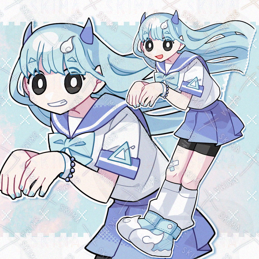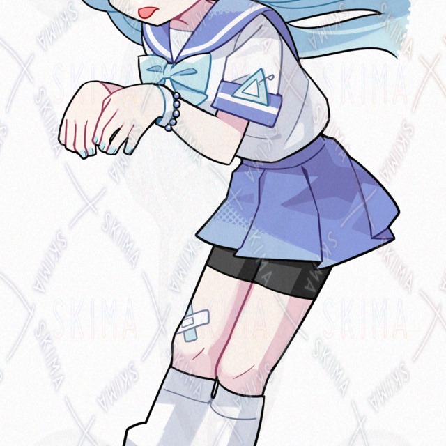 水色/青/セーラー服/スパッツ/ロングヘア