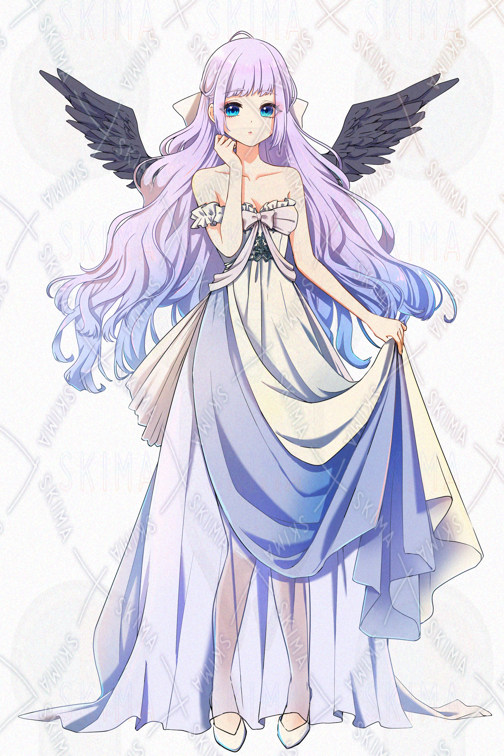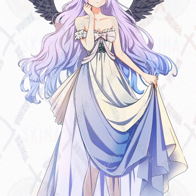 女の子、天使、羽根、女神、ロングヘア、紫髪、メイク、狂気、怒り、悲しみ、腹黒