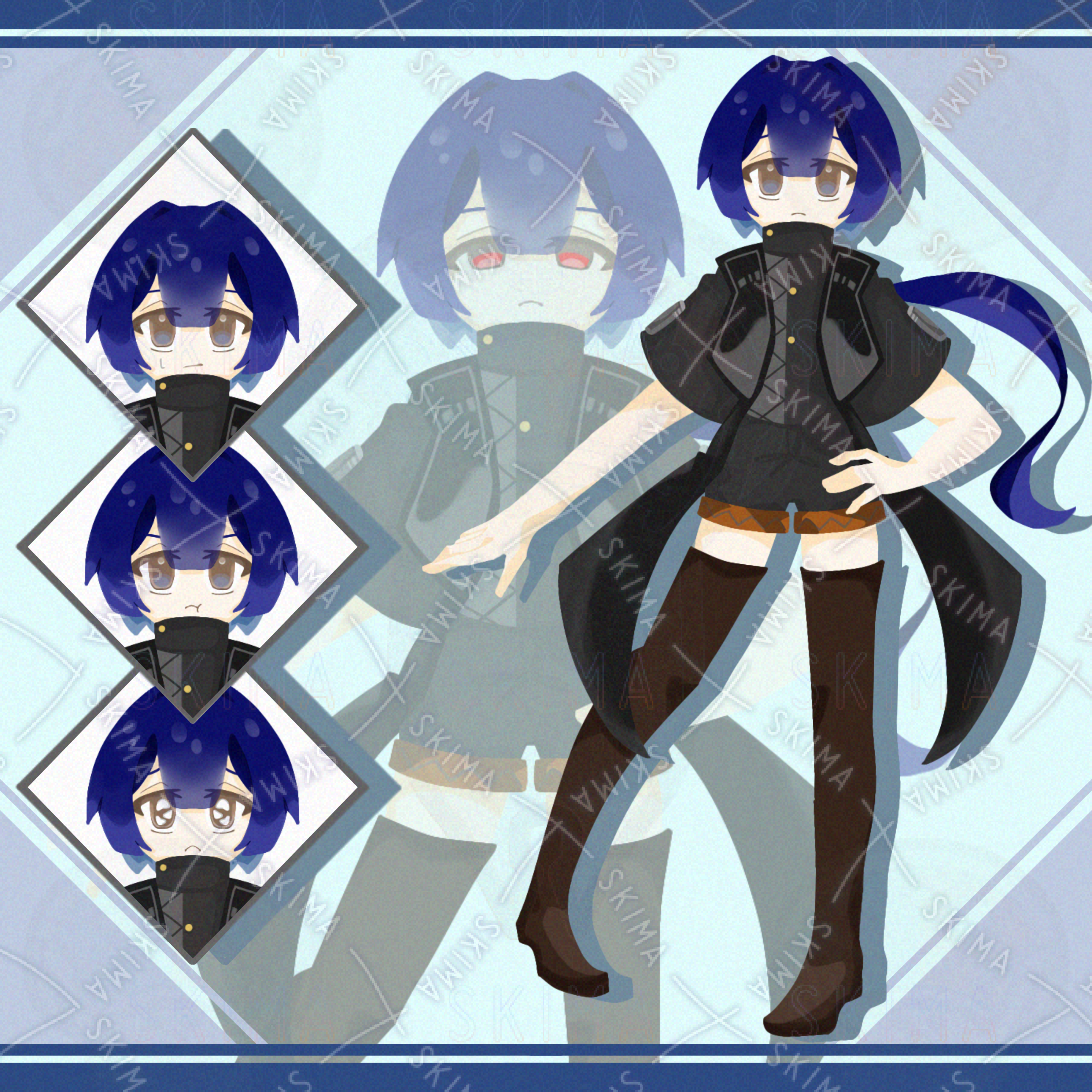 《表情7種+装飾》ゆるっと青系少女