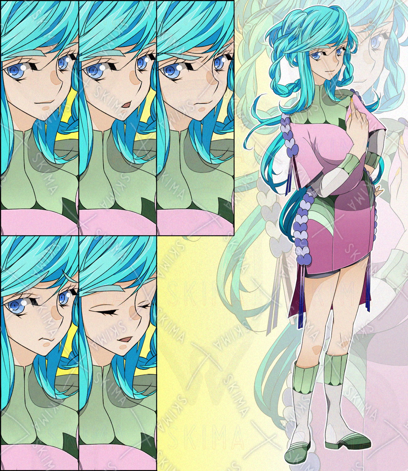 【立ち絵素材】水色の髪の女性【表情5種】