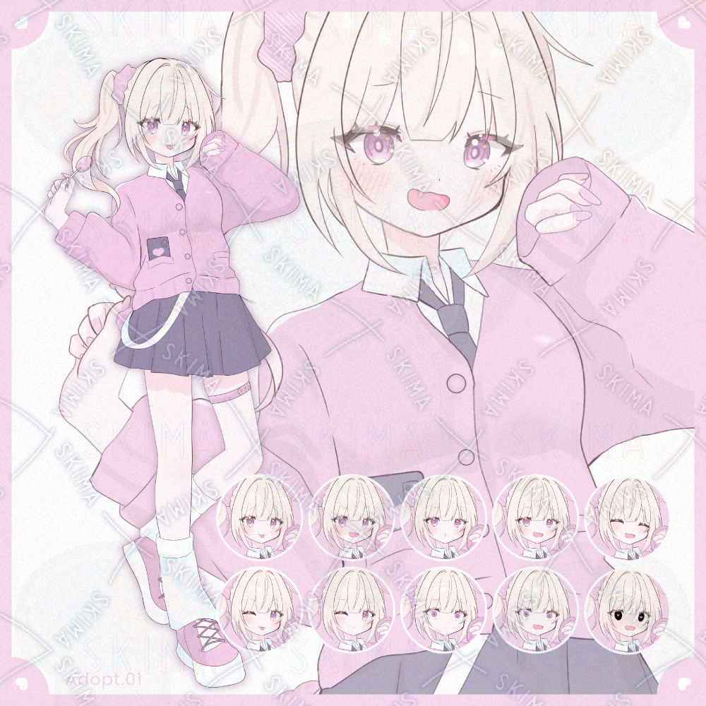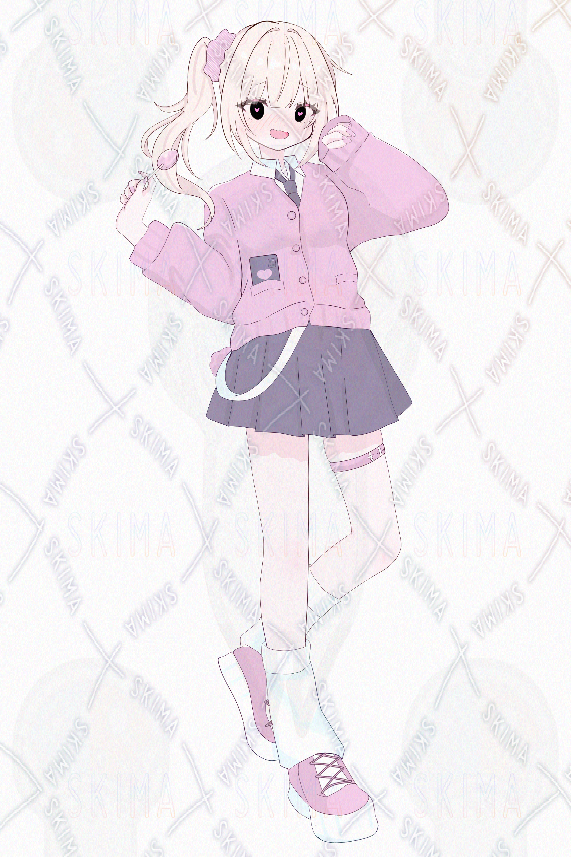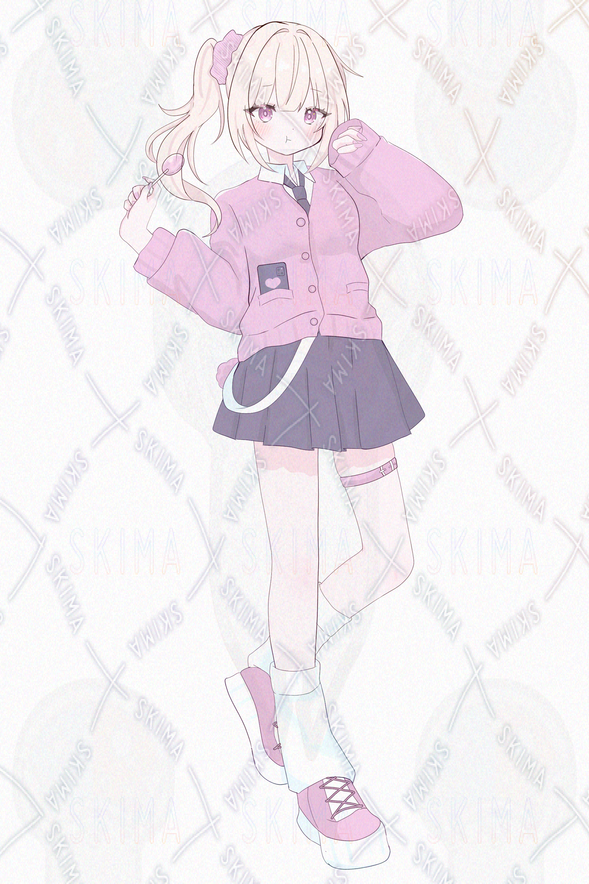 金髪、ピンク、サイドテール、制服、カーディガン、シュシュ、ギャル、飴、かわいい、女の子