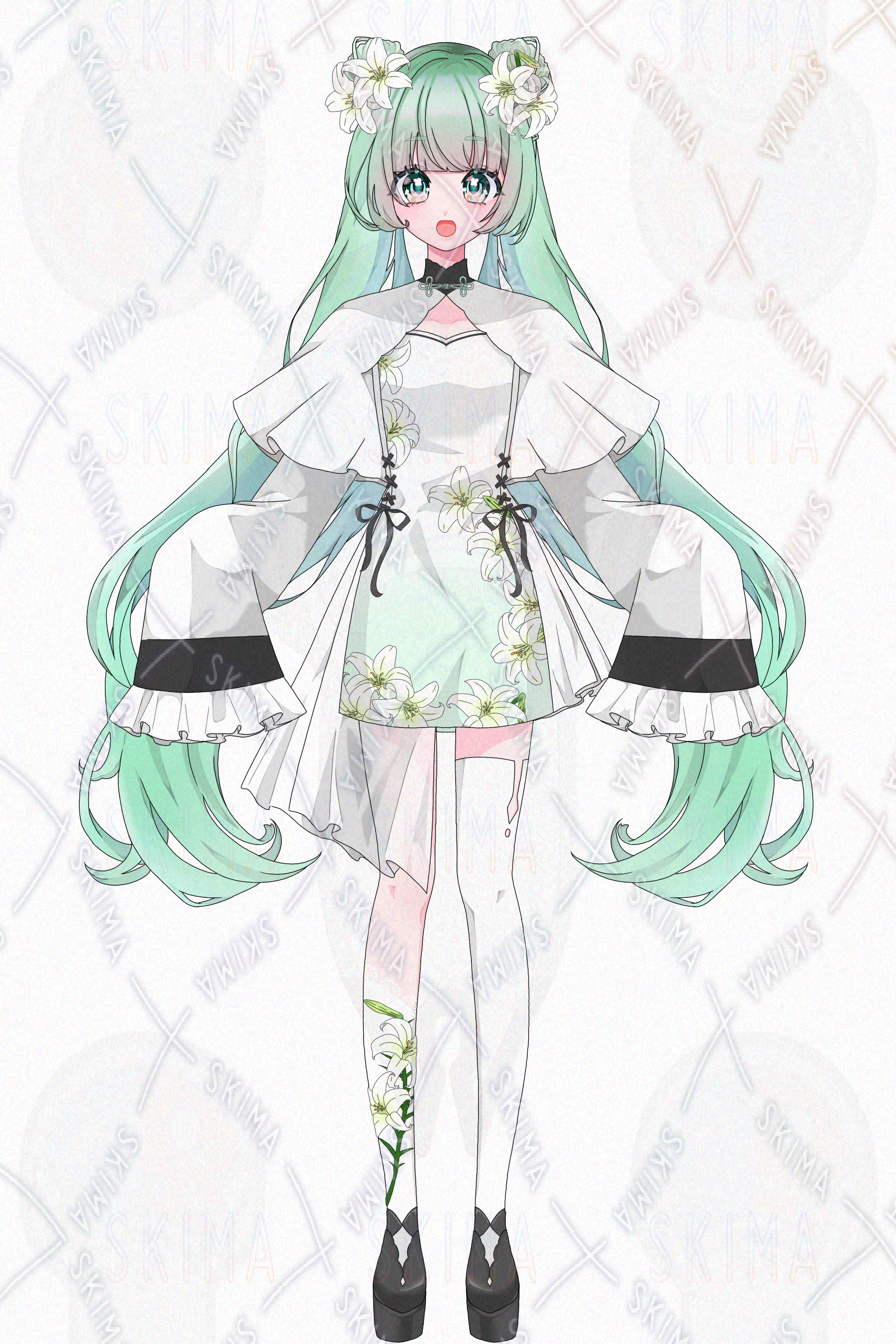 女性 女子 少女 百合 ユリ ツインテール ワンピース ケープ ハイソックス フリル リボン