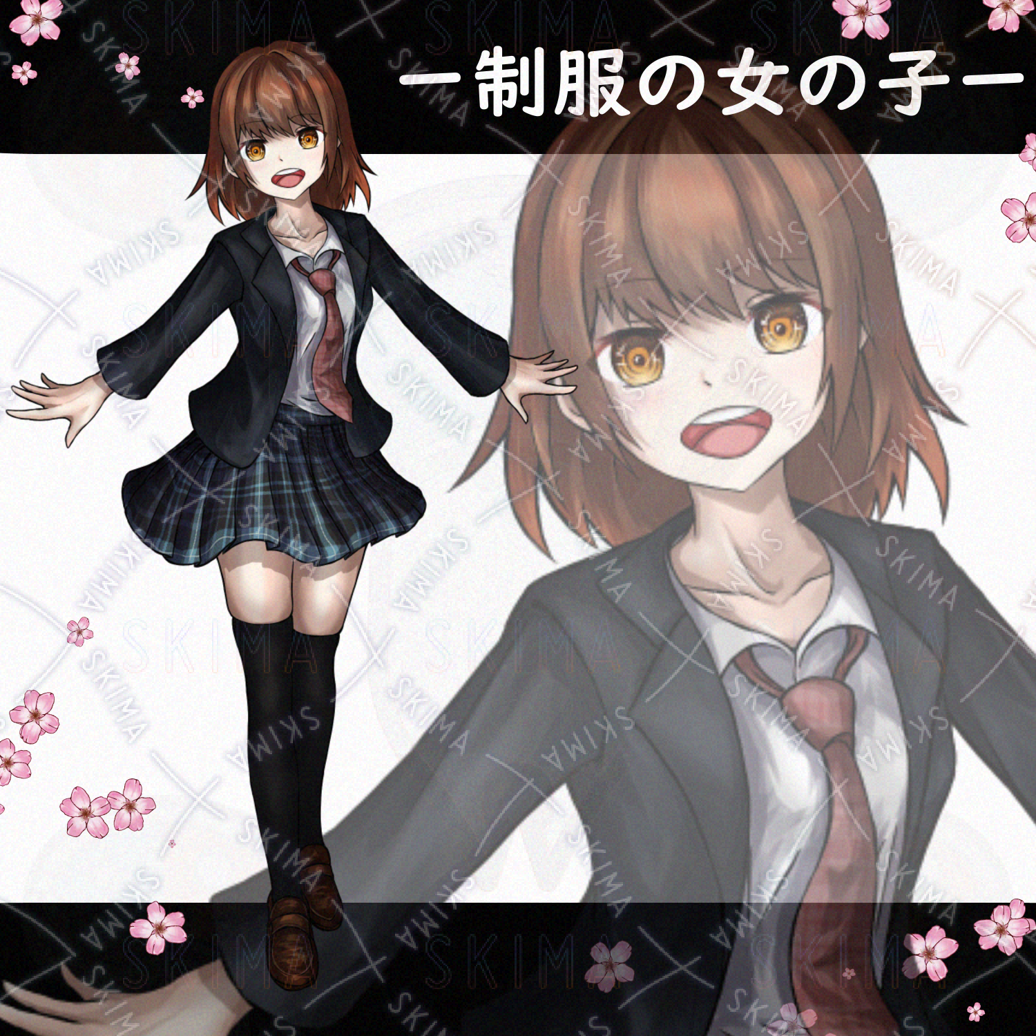 女性/女の子/立ち絵/TRPG/女性立ち絵/全身/制服/学生/女子高生