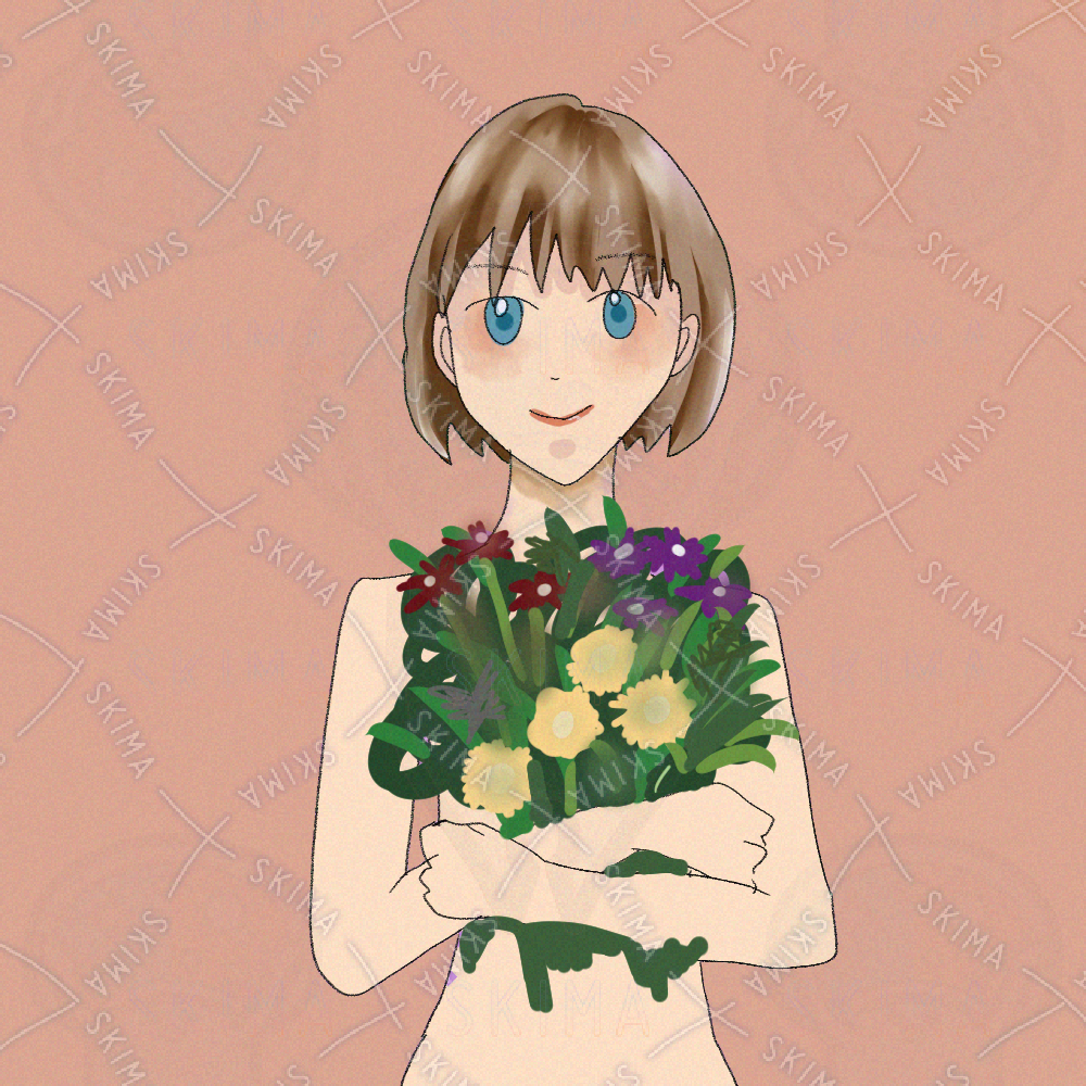 花束を持った女の子のイラストです。