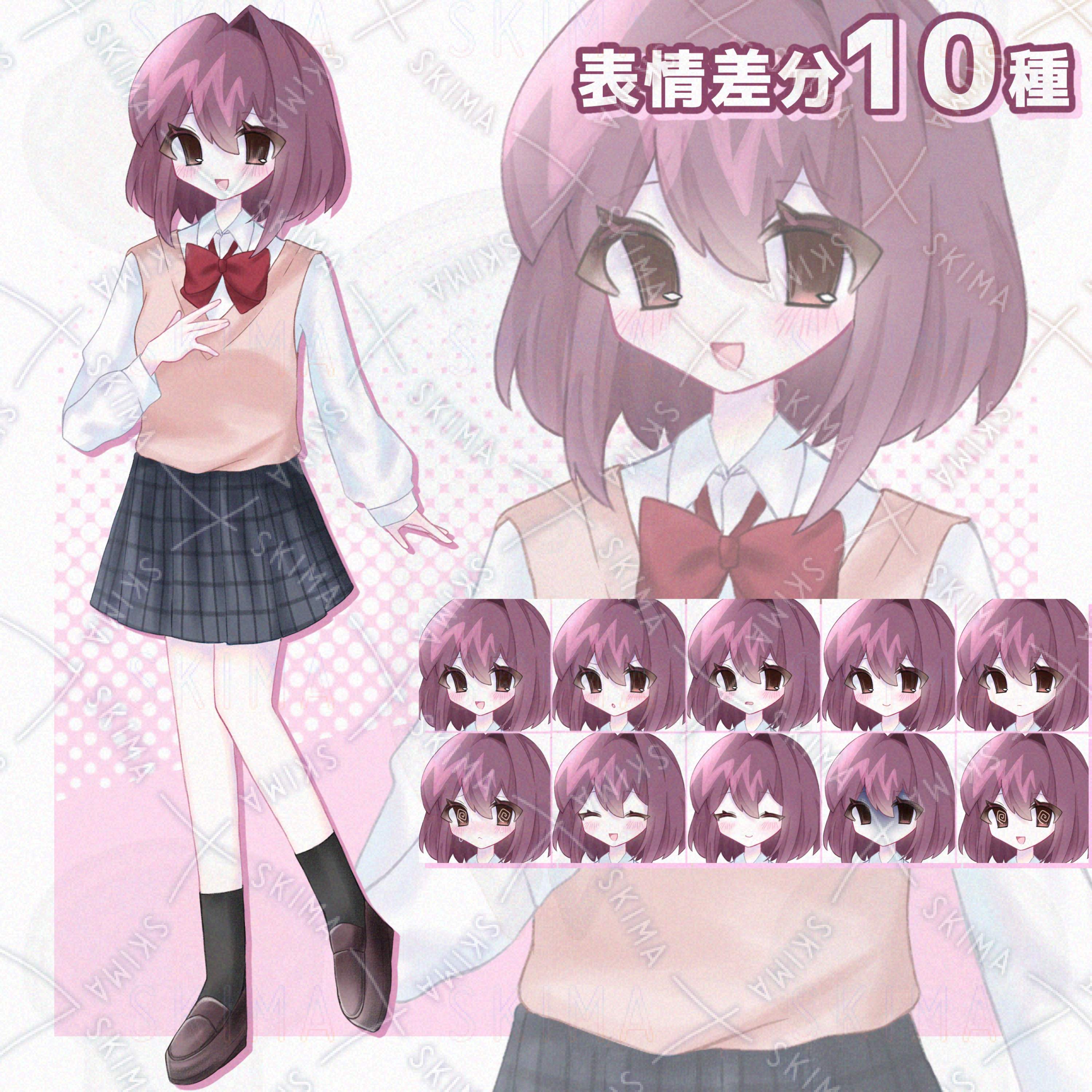 表情差分 10種(喜.怒.哀.楽.真顔.照れ.閉じ目喜.閉じ目楽.青ざめ.洗脳)
