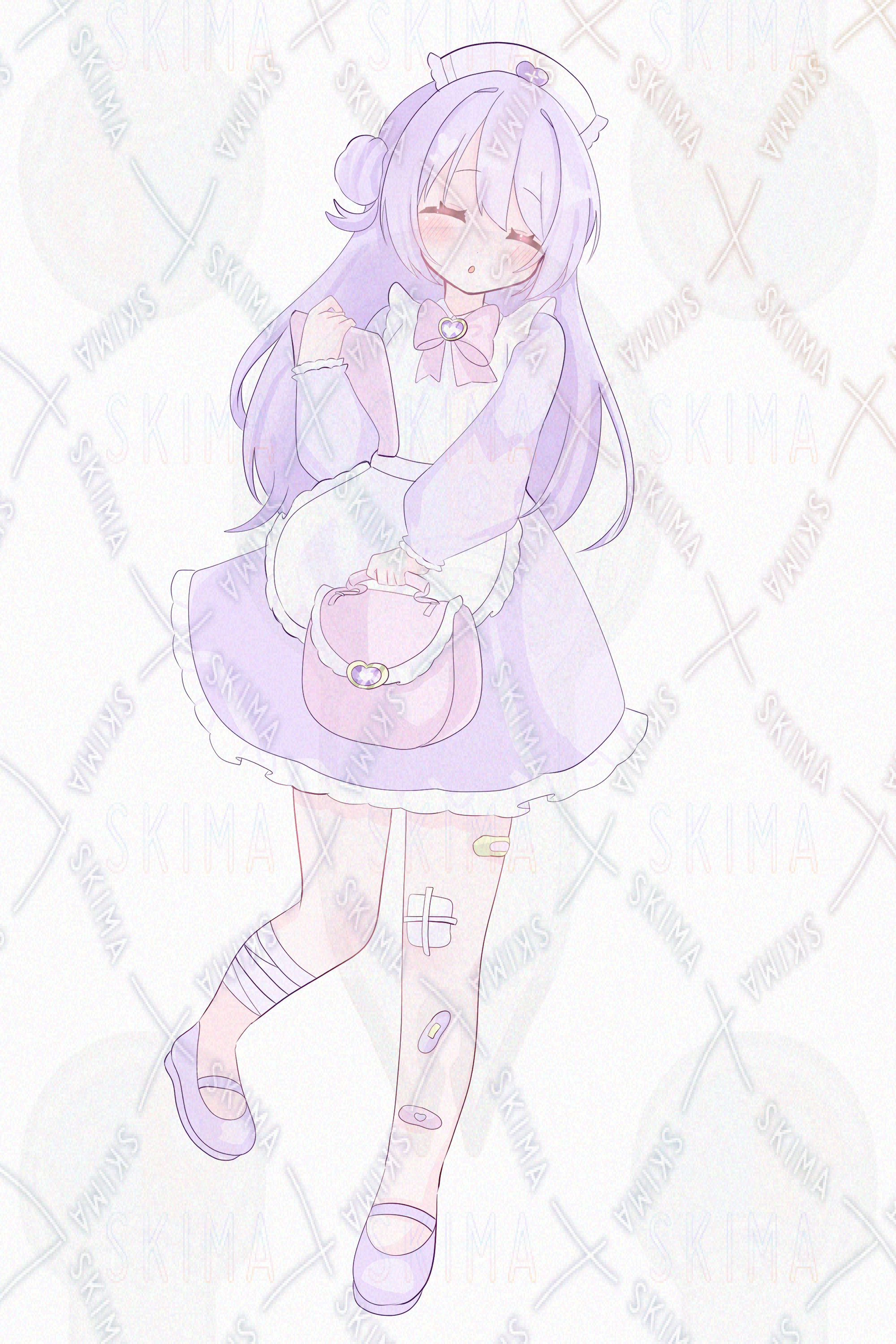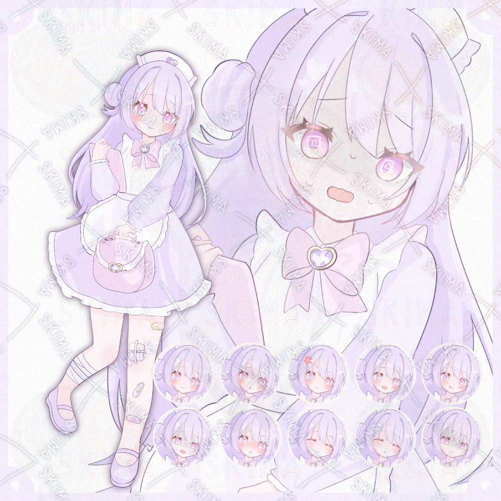 全身立ち絵、紫、ピンク、ナース、医者、治療、包帯、絆創膏、お団子、夢かわいい、女の子