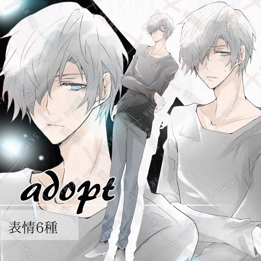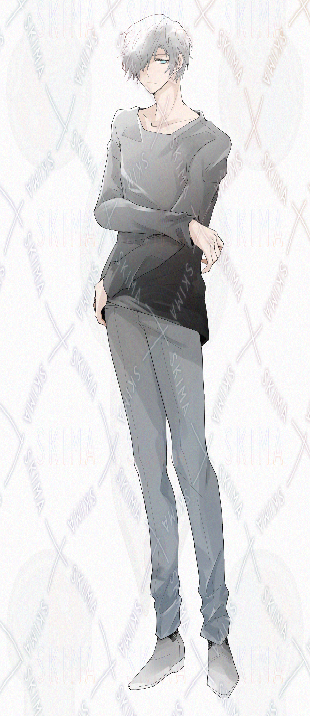 TRPGや配信等にご使用できる、白髪の片目が隠れた男性立ち絵です。
