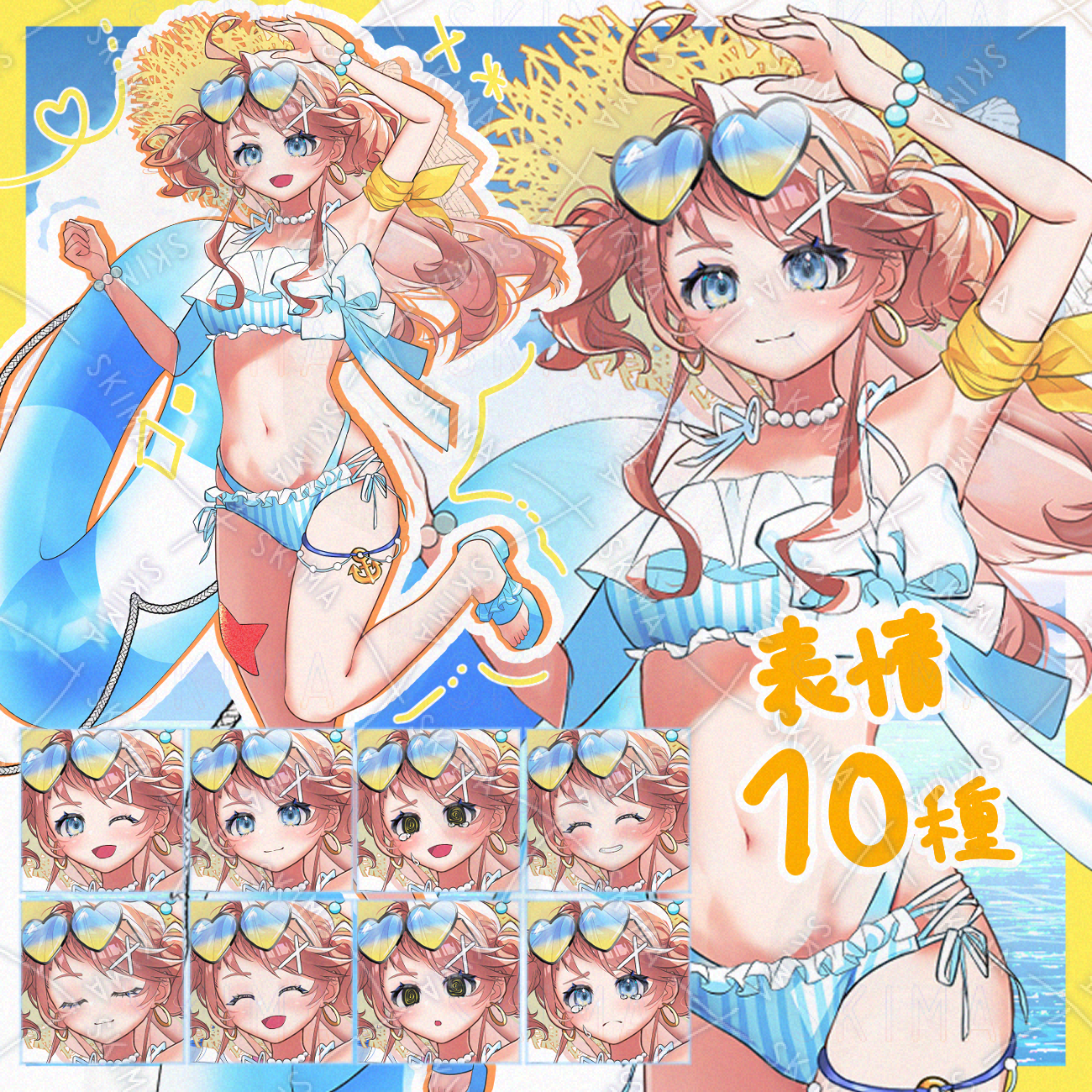 Vtuber / IRIAM / 女の子 / 水着 / 浮き輪 / 全身 / 女子 / ビキニ / サングラス / ツインテール / 茶髪