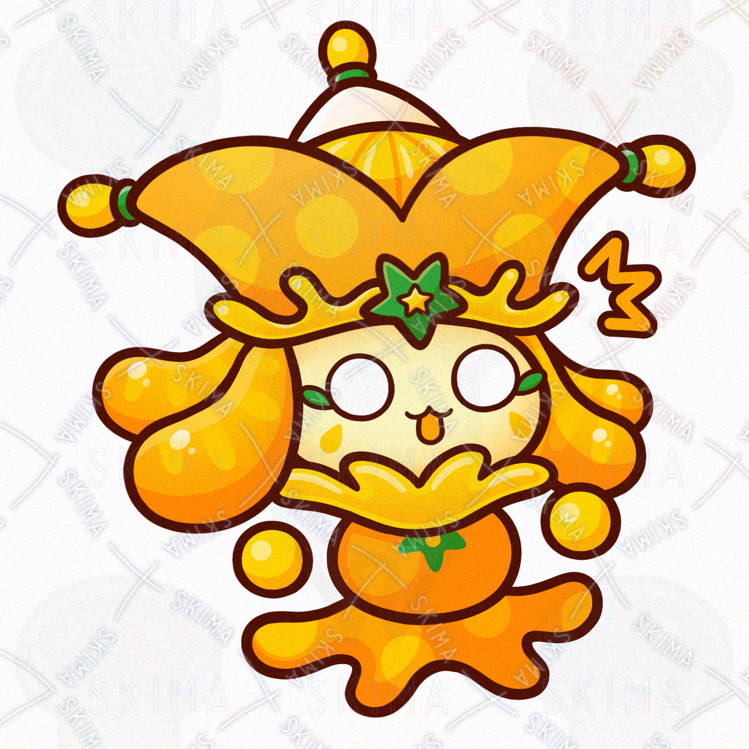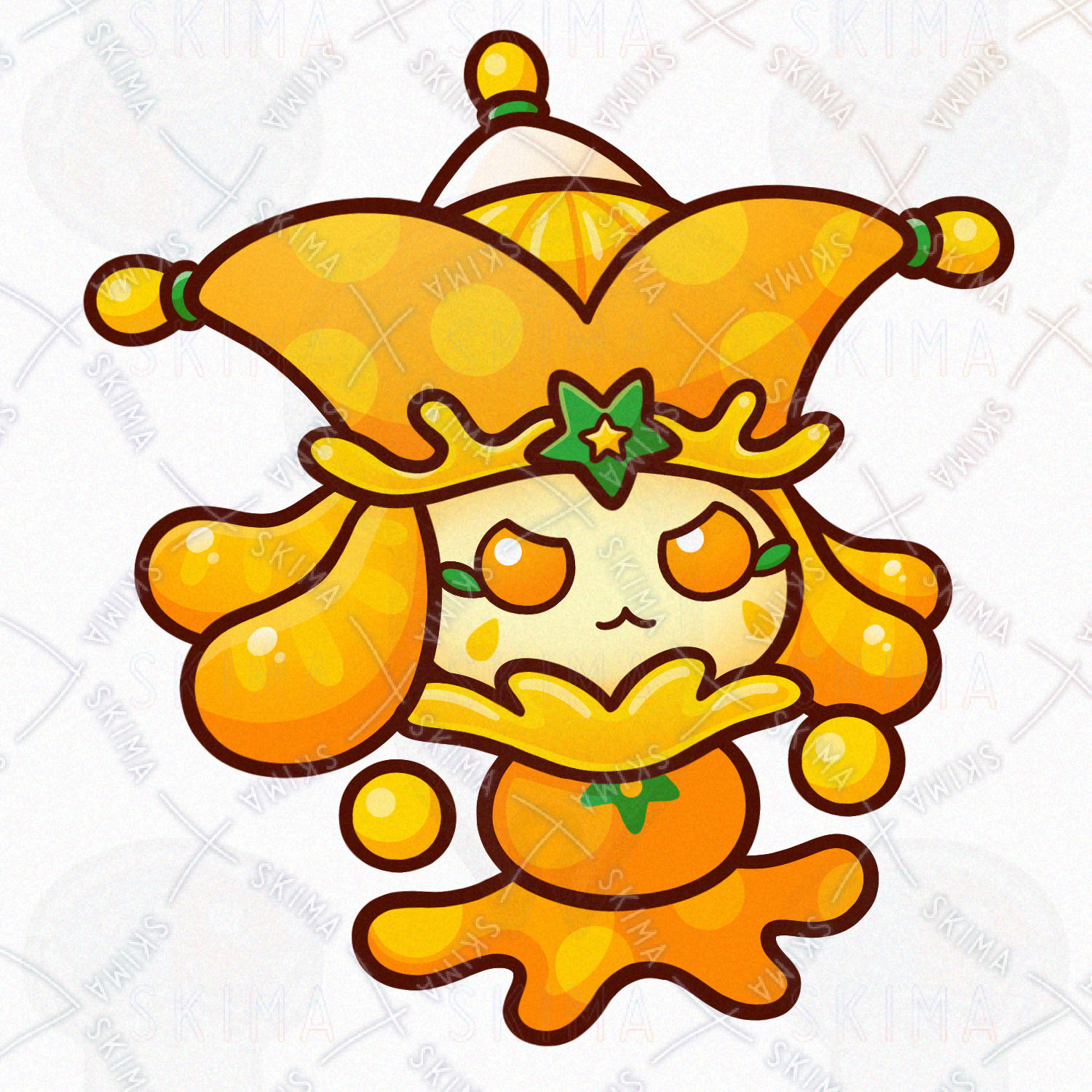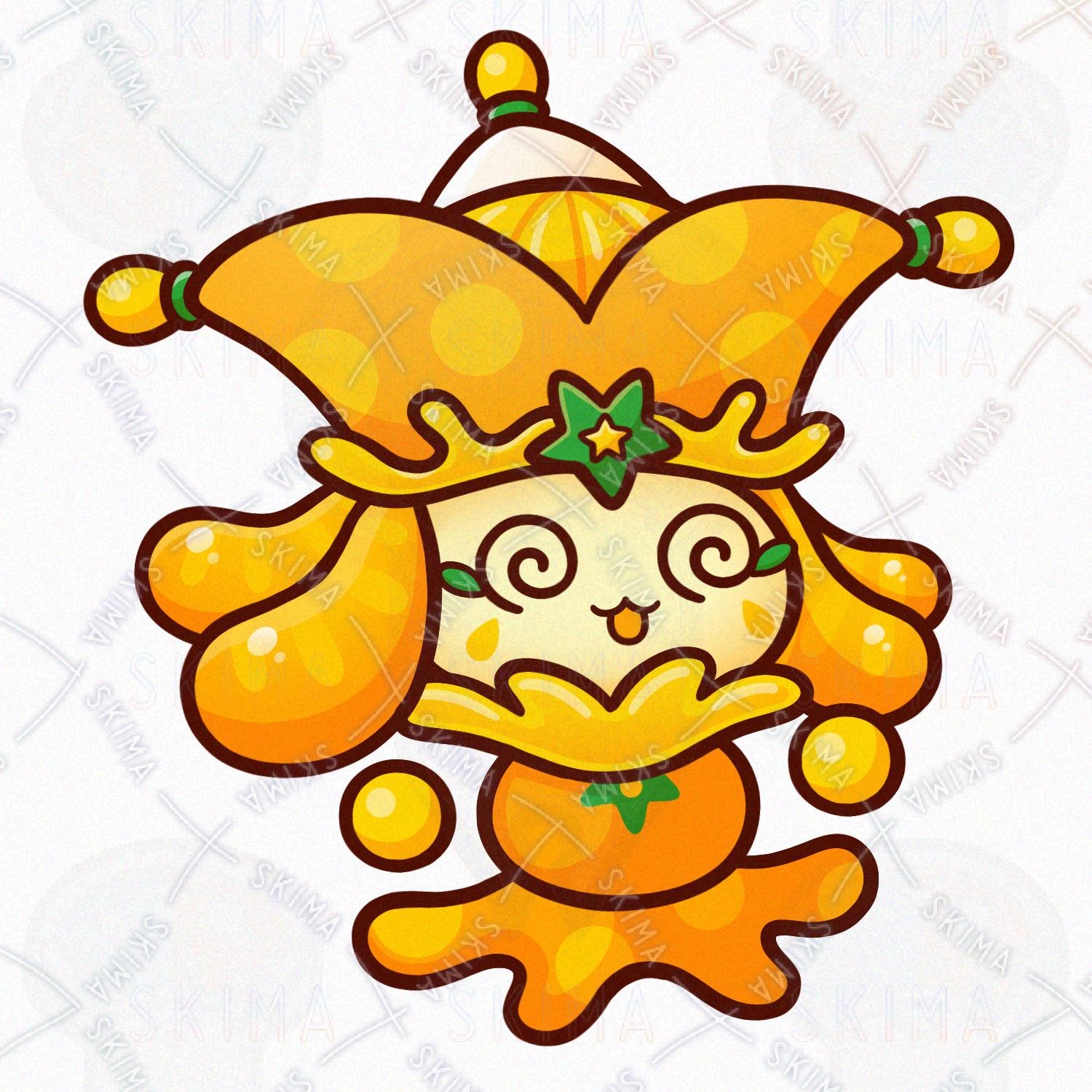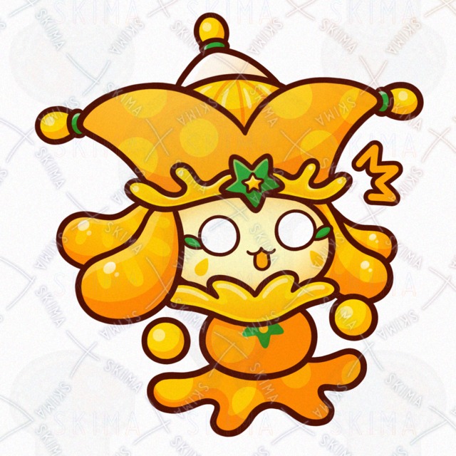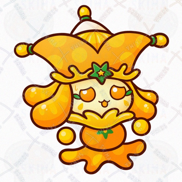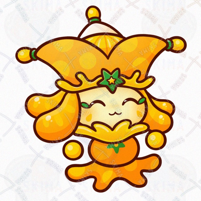 ミカン/オレンジ/フルーツ/果物/食べ物/道化師/妖精/精霊/魔物/使い魔/モンスター/人外/敵キャラ/ファンタジー/デフォルメ/マスコット/かわいい/可愛い