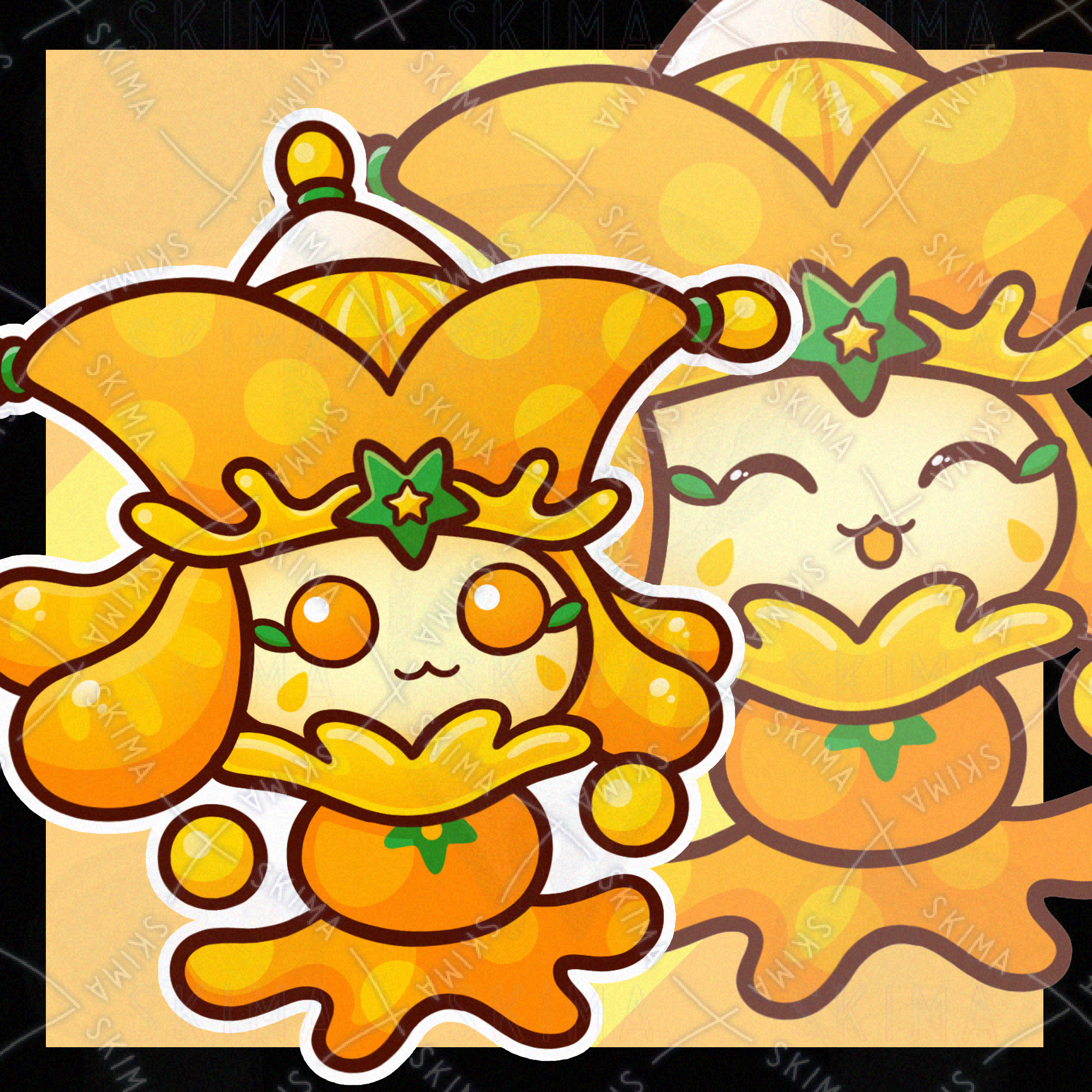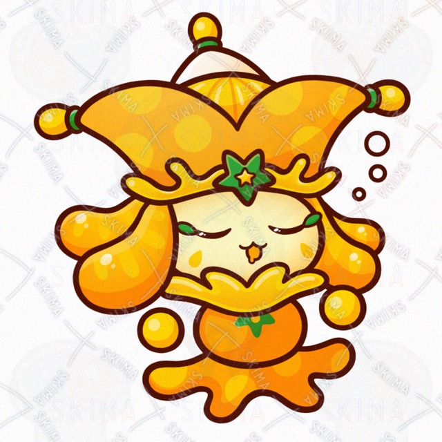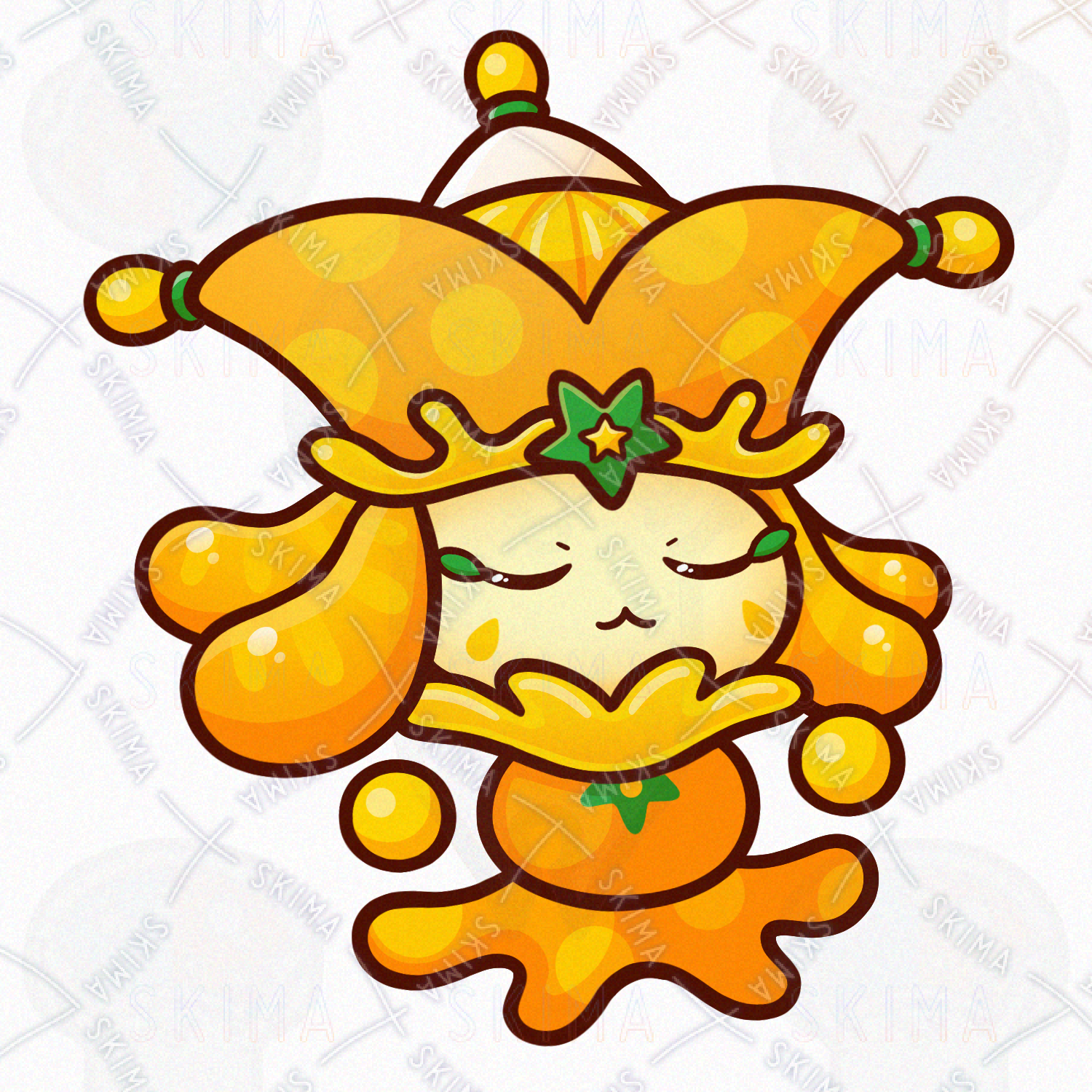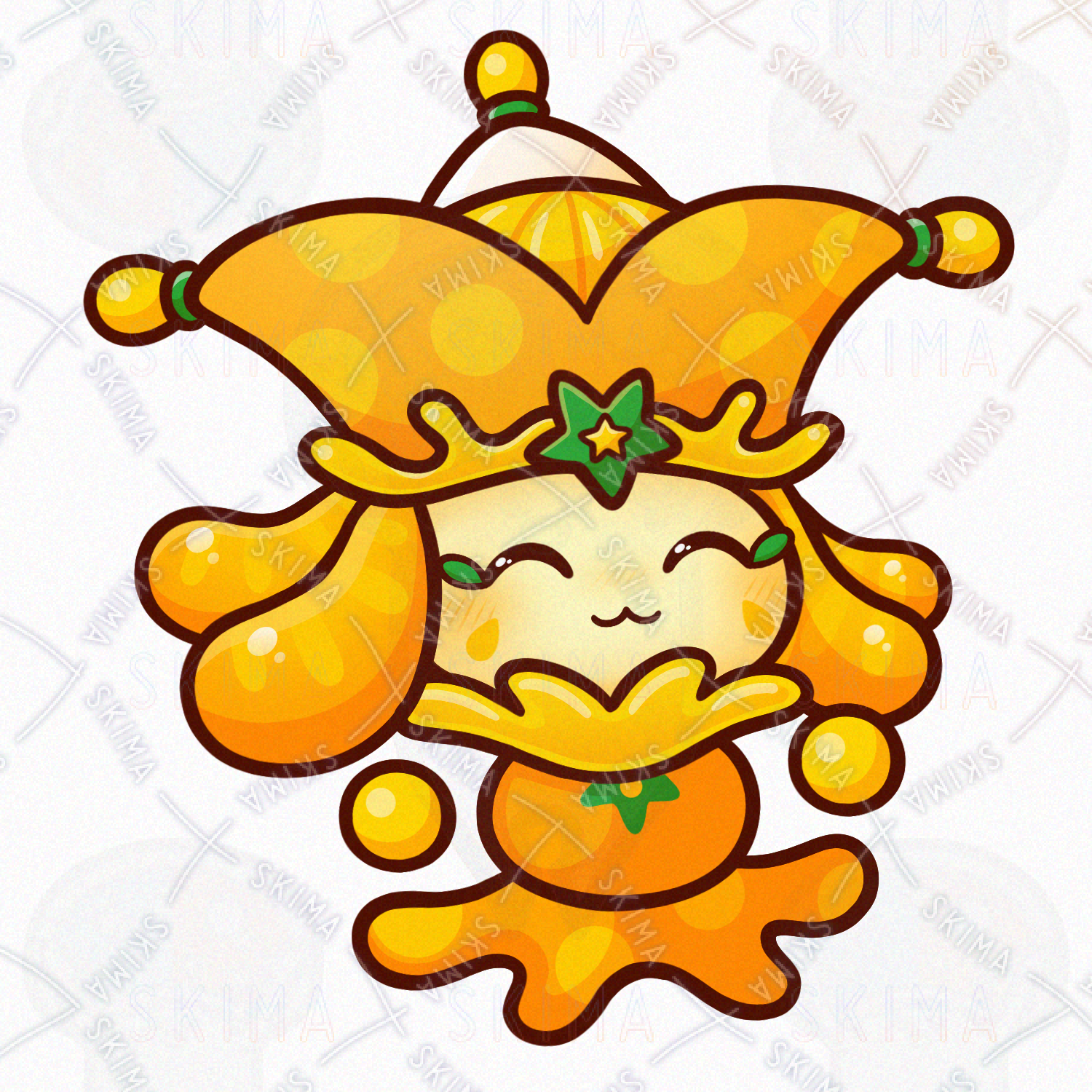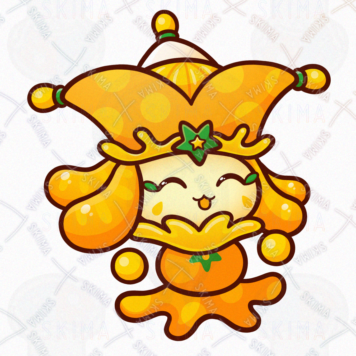 ミカン/オレンジ/フルーツ/果物/食べ物/道化師/妖精/精霊/魔物/使い魔/モンスター/人外/敵キャラ/ファンタジー/デフォルメ/マスコット/かわいい/可愛い