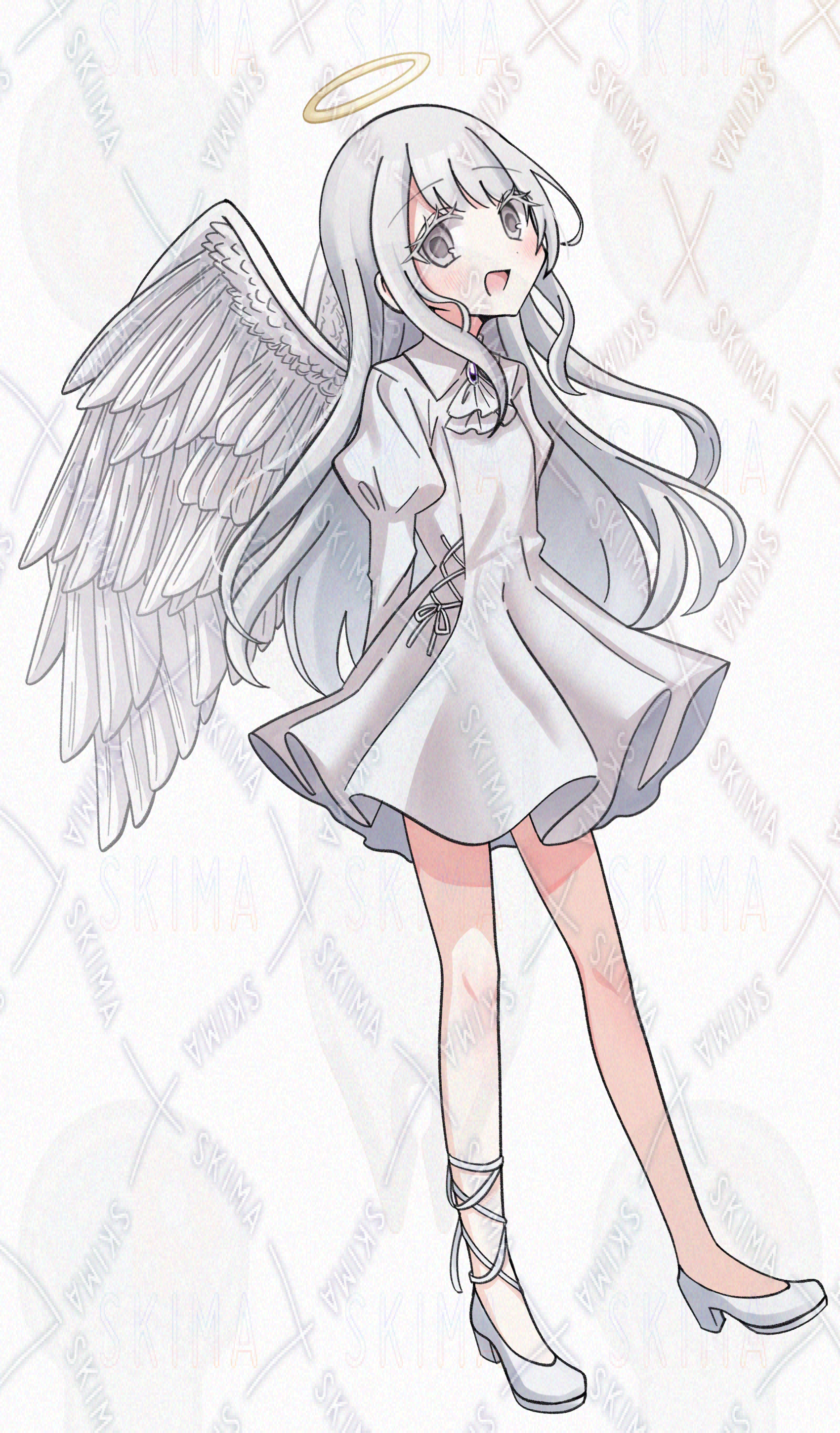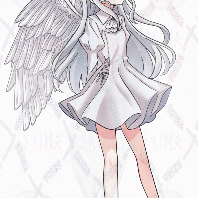 (天使 白髪 ロングヘア タレ目)