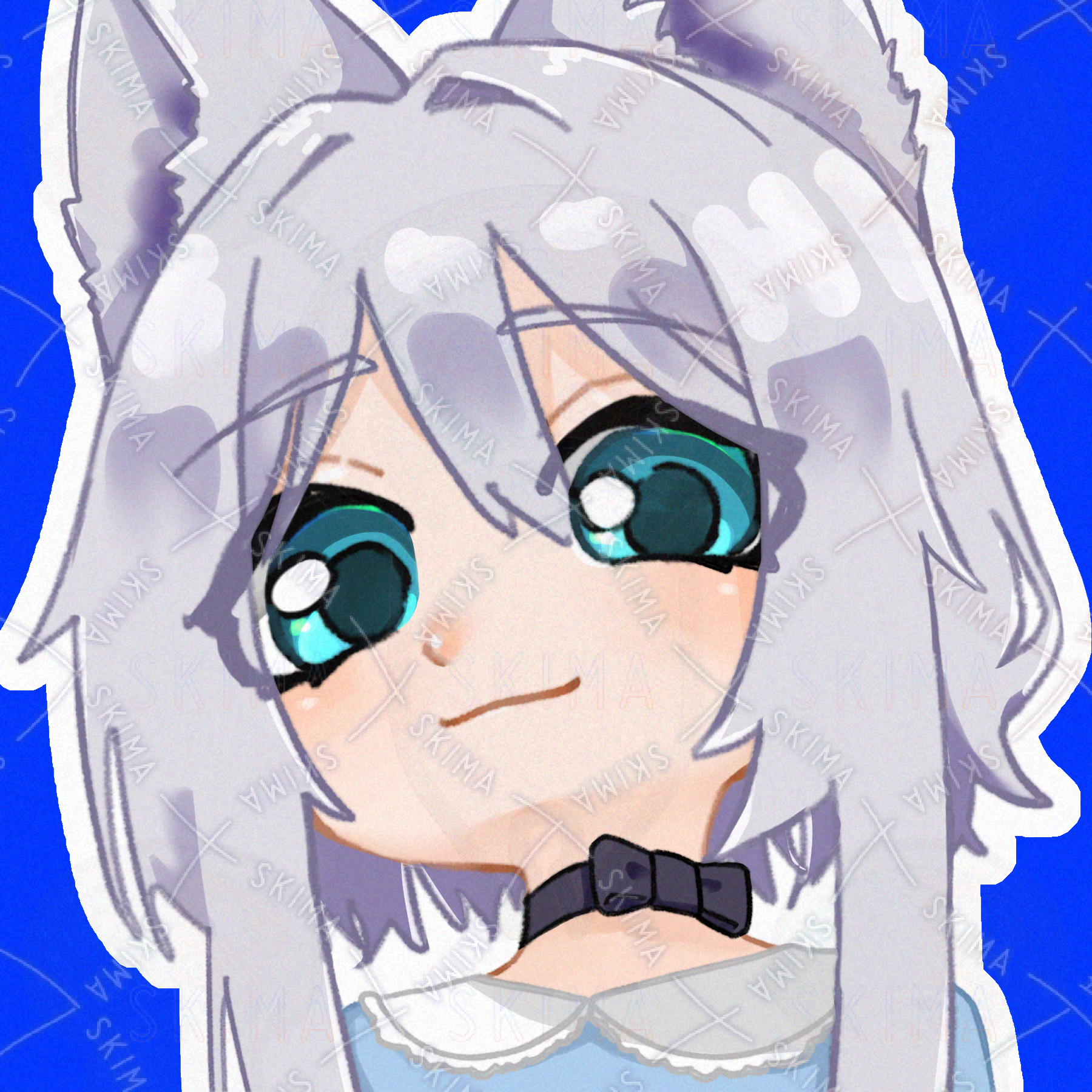 デフォルメ ケモ耳 銀髪 少女 チョーカー 碧眼 青眼
