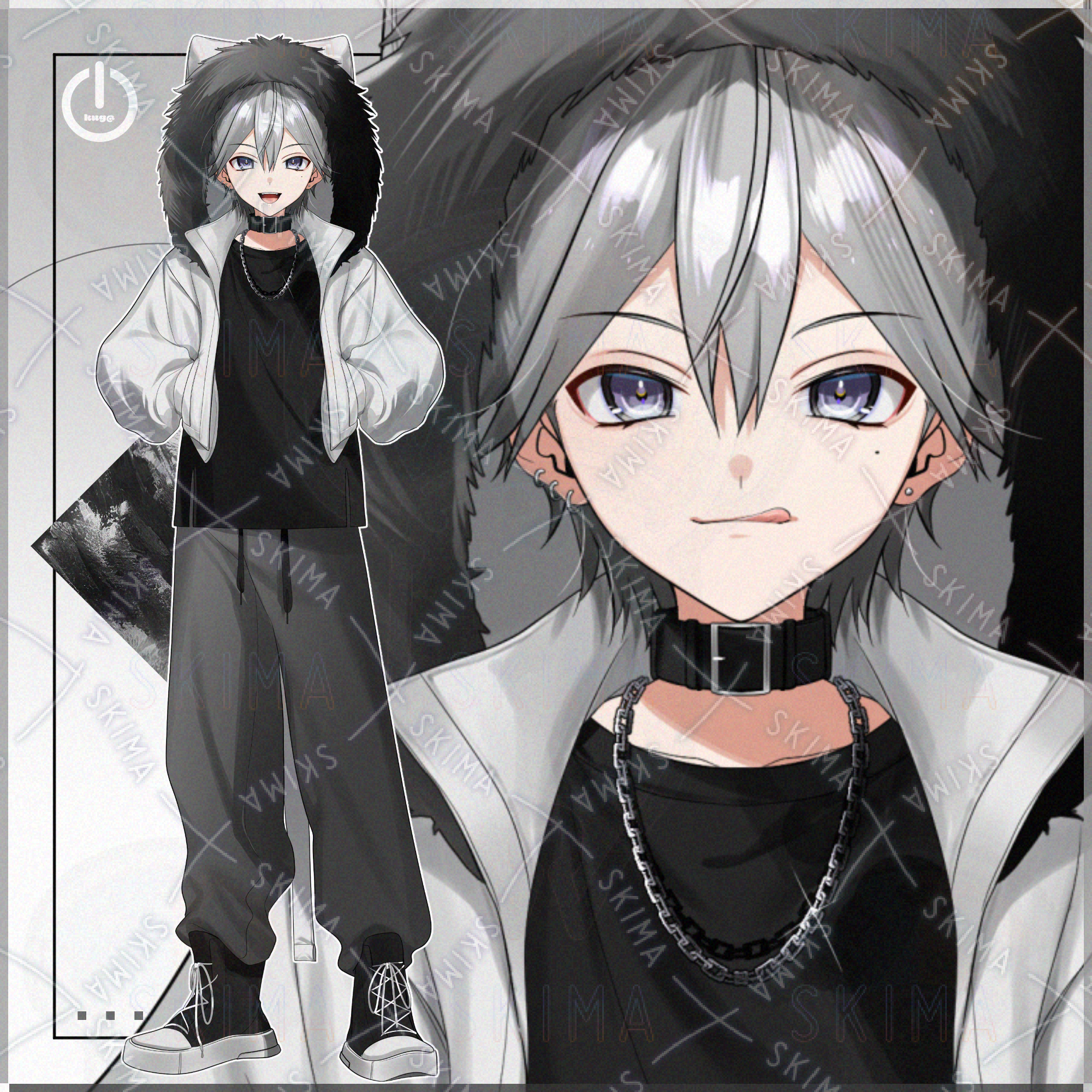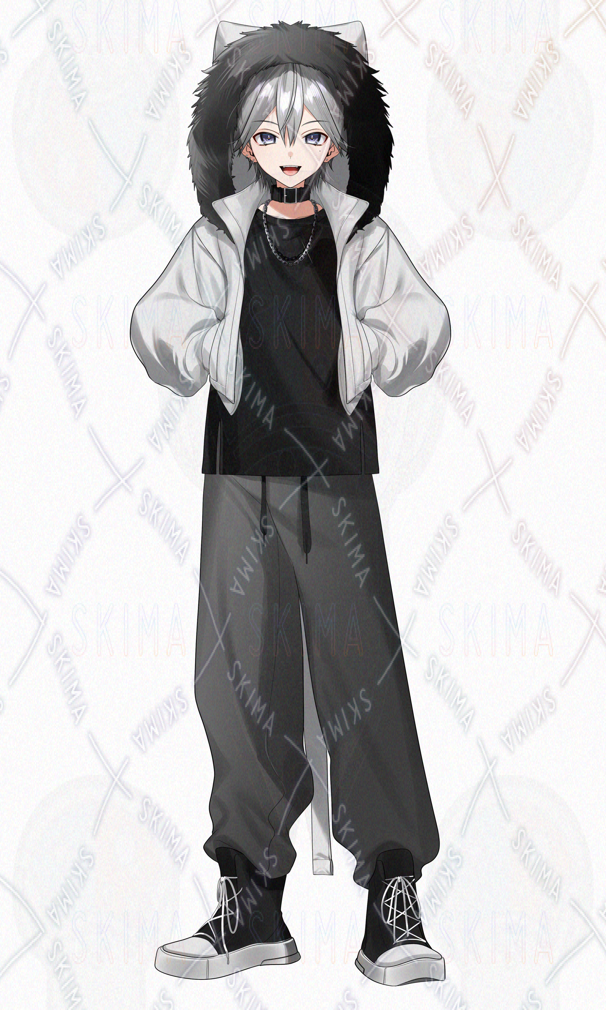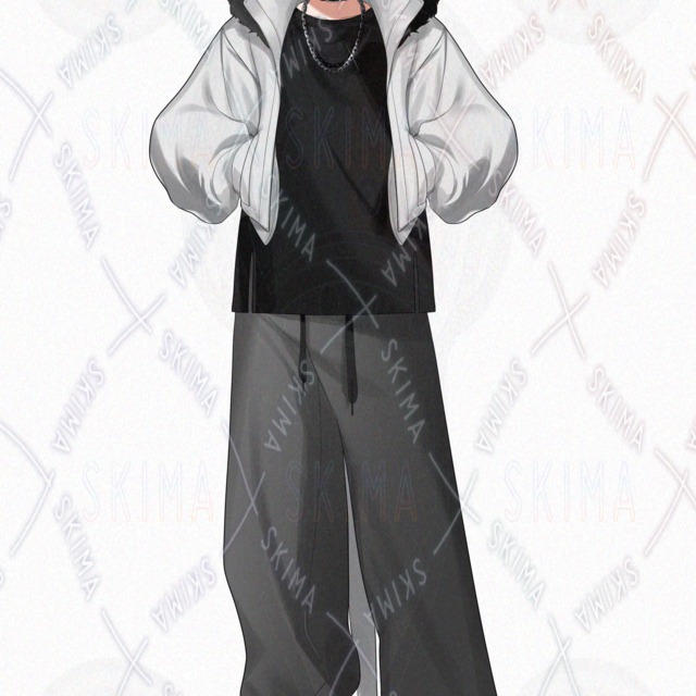 立ち絵 男の子 オリジナル adopt Vtuber IRIAM モノトーン モード系 猫耳フード