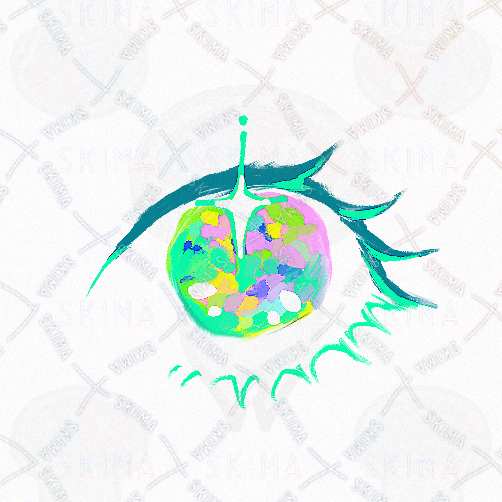 カラフルな手描きの瞳(片目)のSNSアイコン用イラストです。