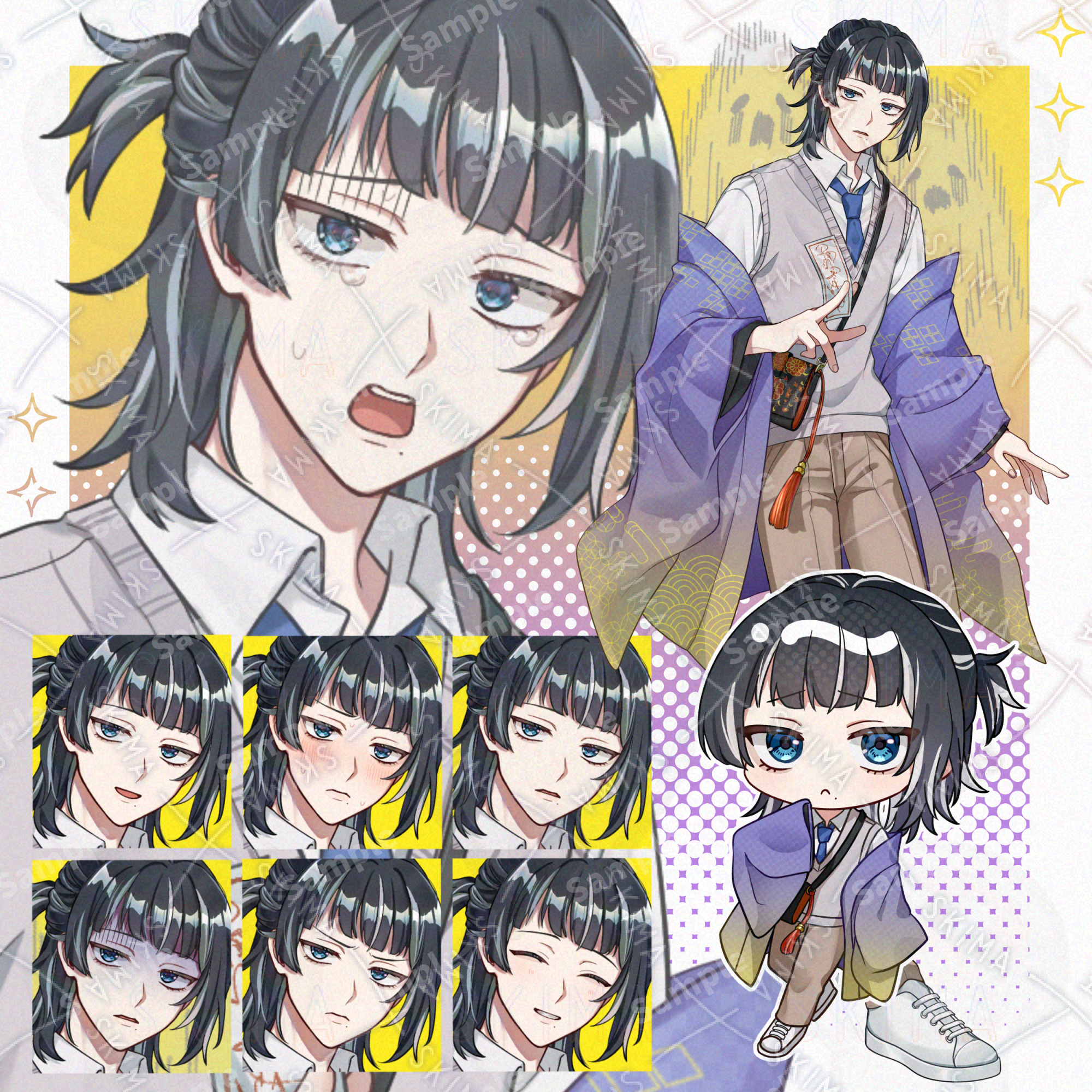 【表情7種/SD/おまけお化け付】霊媒体質のお札を持った男性