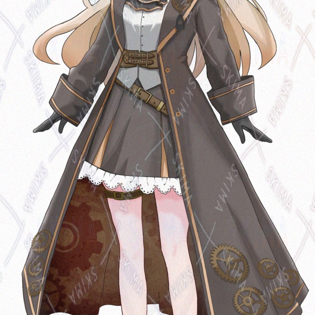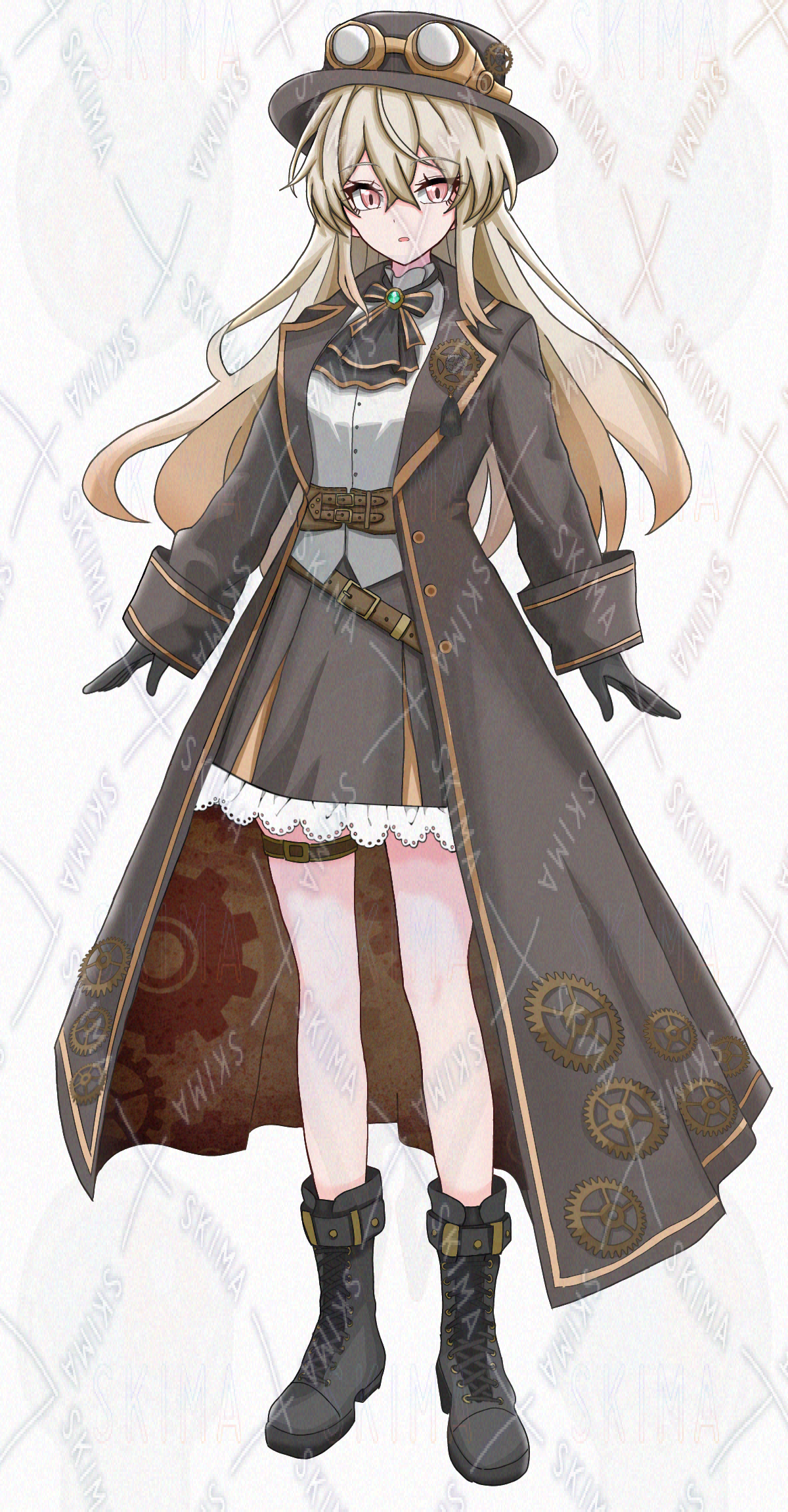 女の子/帽子/ゴーグル/ベルト/長髪/フリル/リボン/歯車/赤目