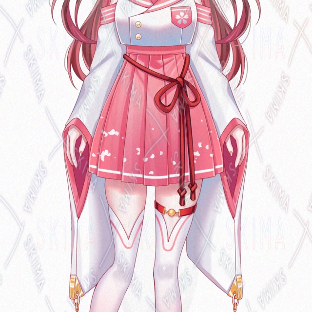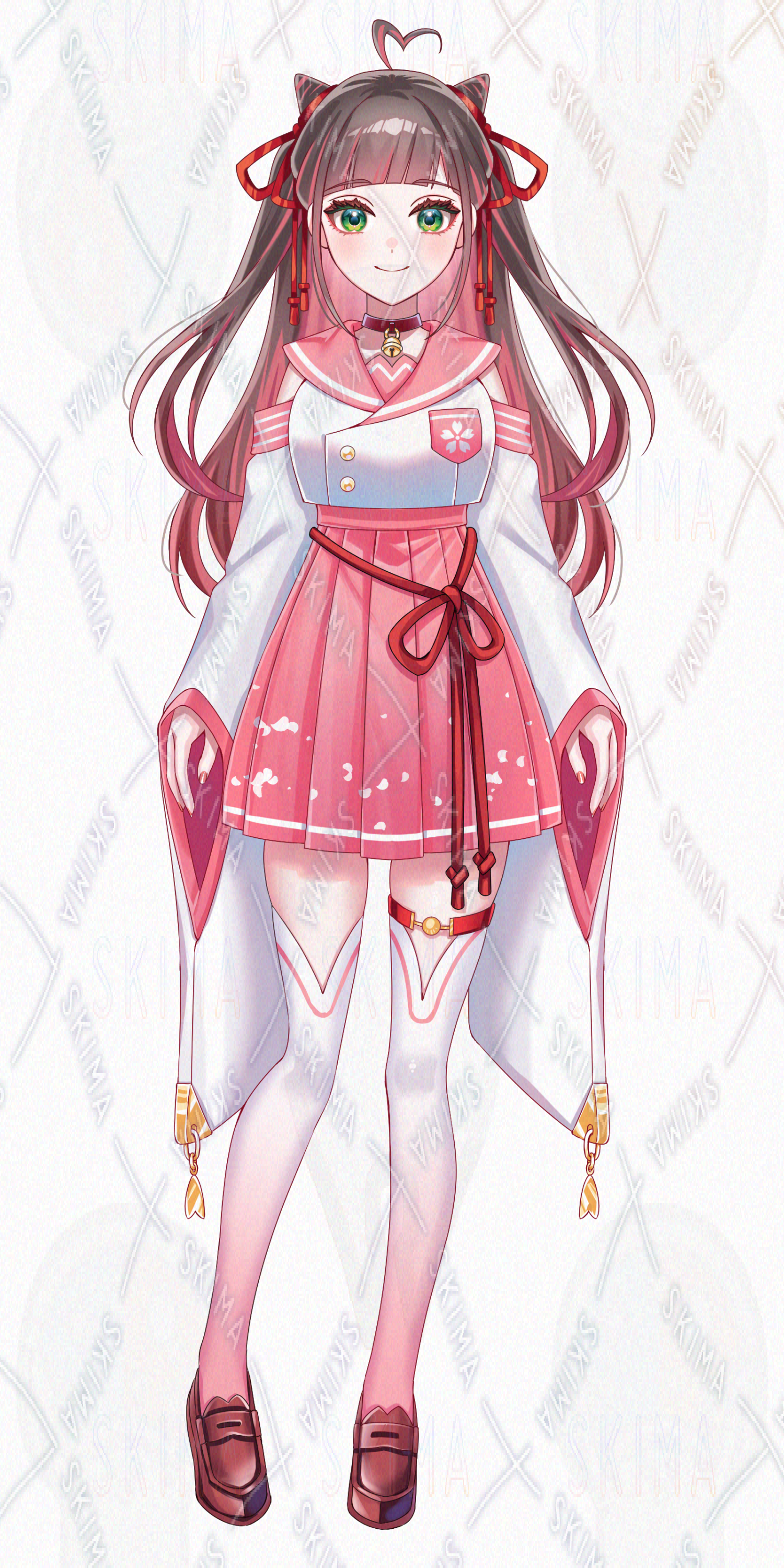 IRIAM/リボン/桜/茶髪/緑目/インナーカラー/ニーハイ/少女/女の子/女性/かわいい/ピンク/白/金