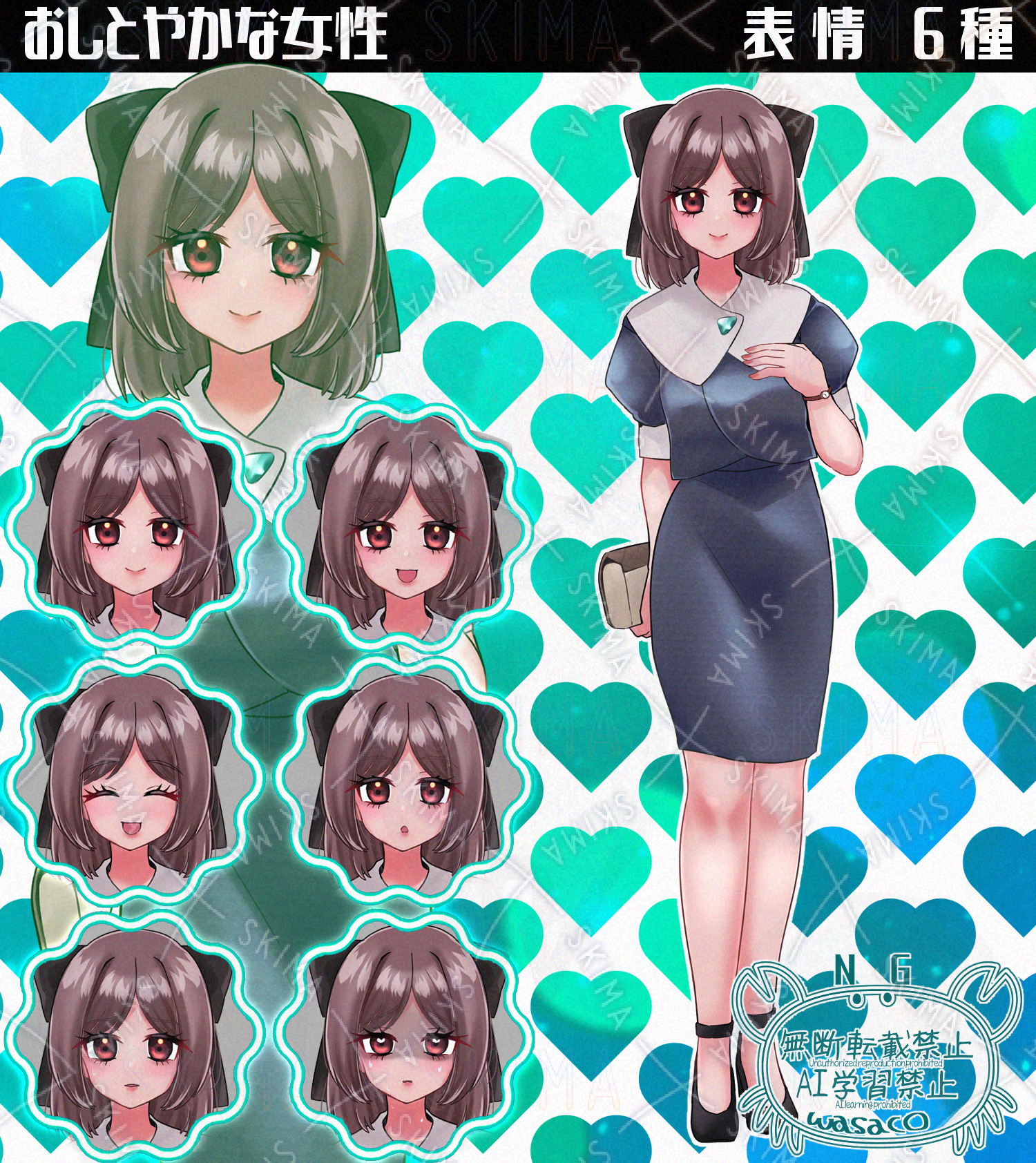 おしとやかな女性(表情6種)です。