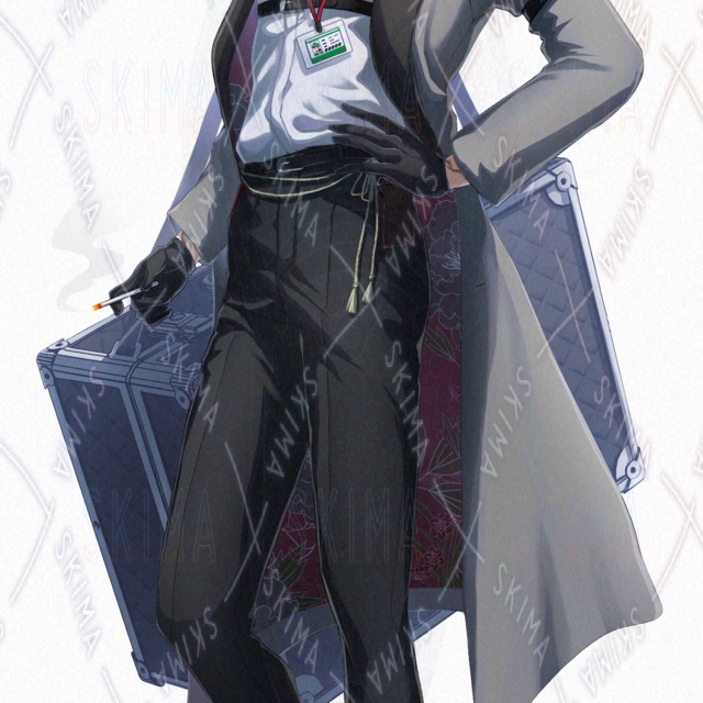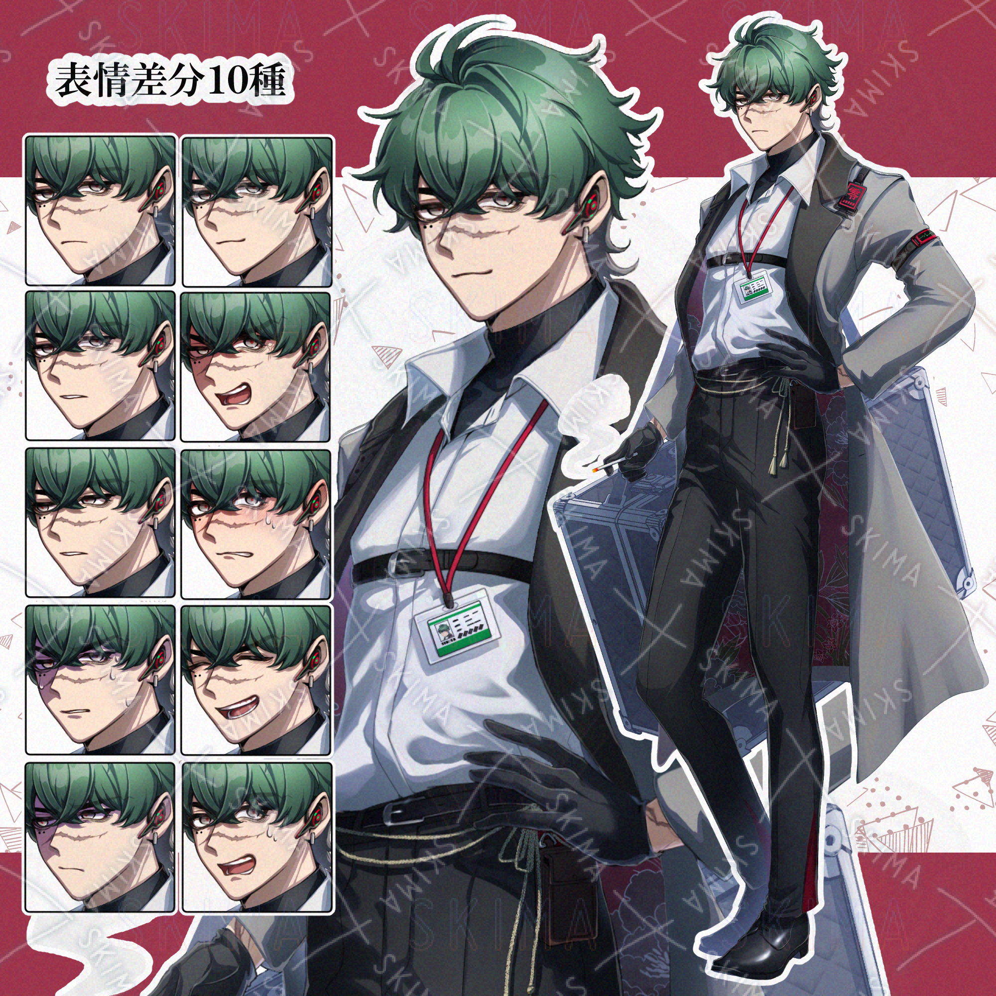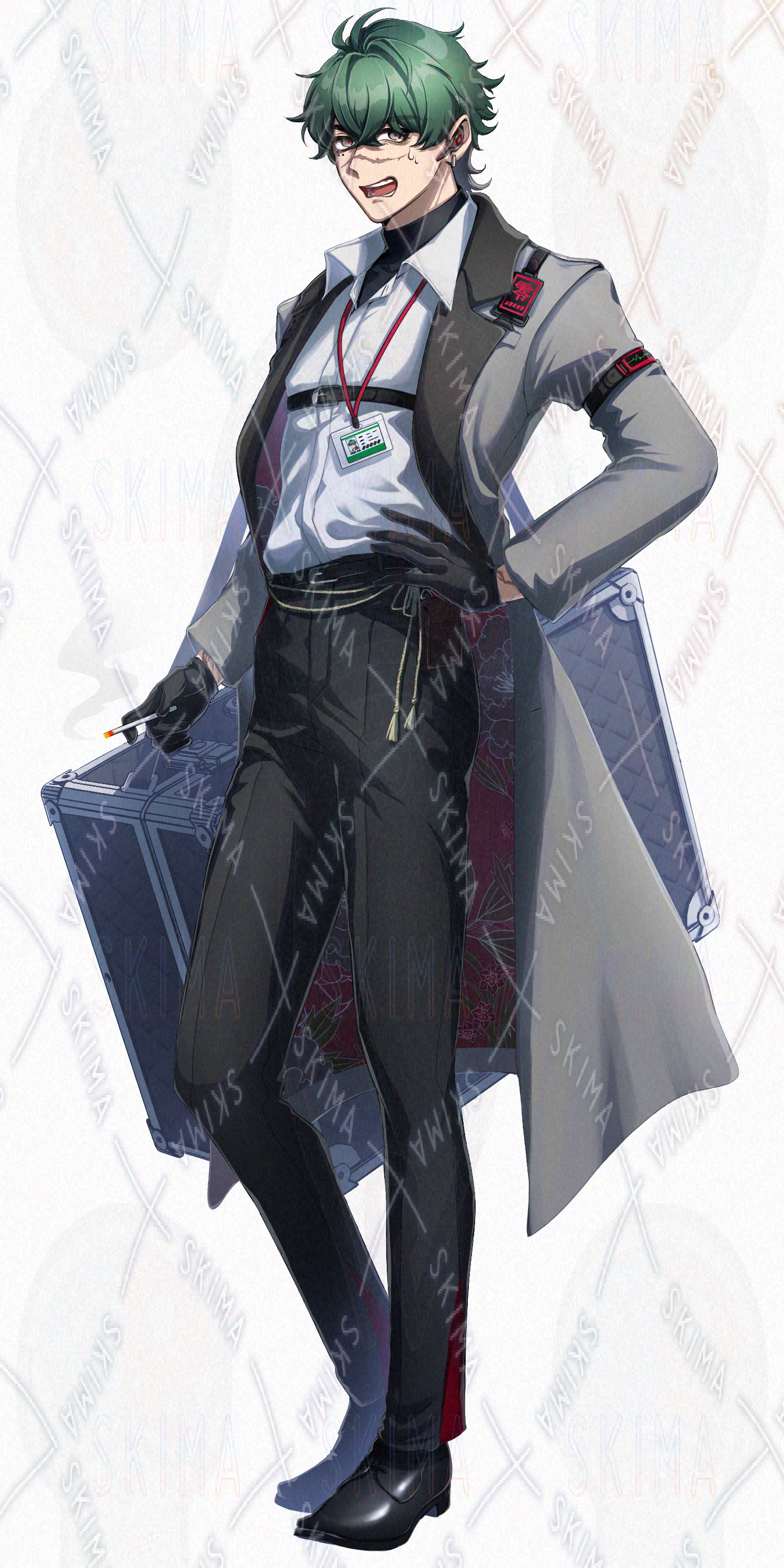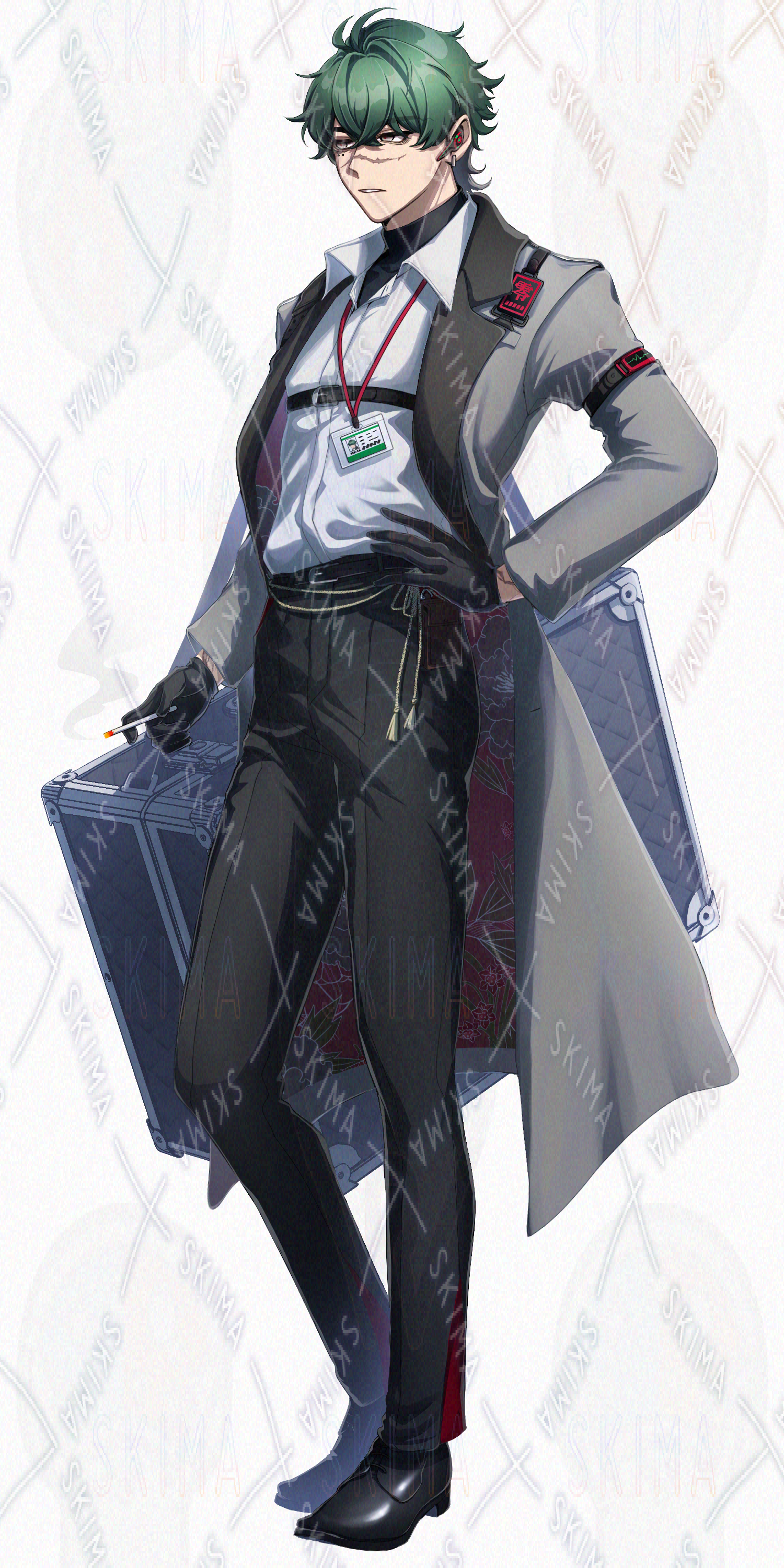 男性/立ち絵/傷/ファンタジー/緑髪/タバコ/ほくろ