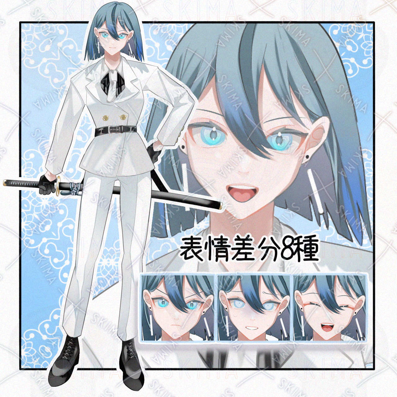 白スーツ+刀【表情差分8種】