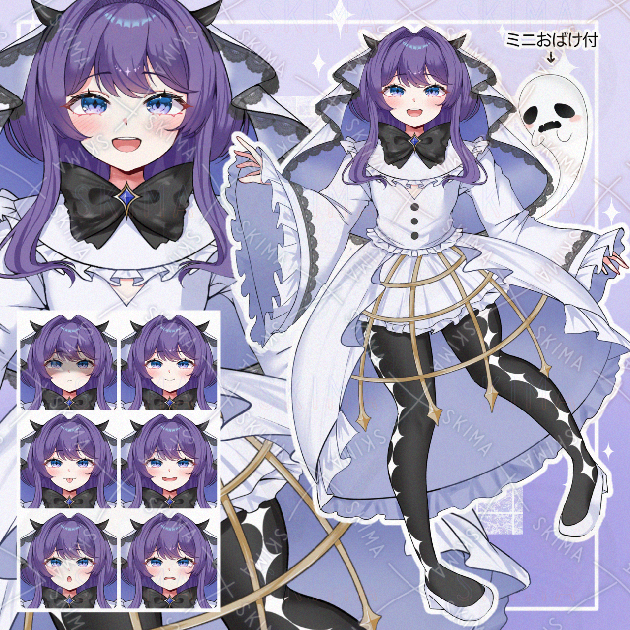 フリル 女の子 IRIAM対応 ゴースト おばけ お化け 白 ドレス 紫 ふわふわ