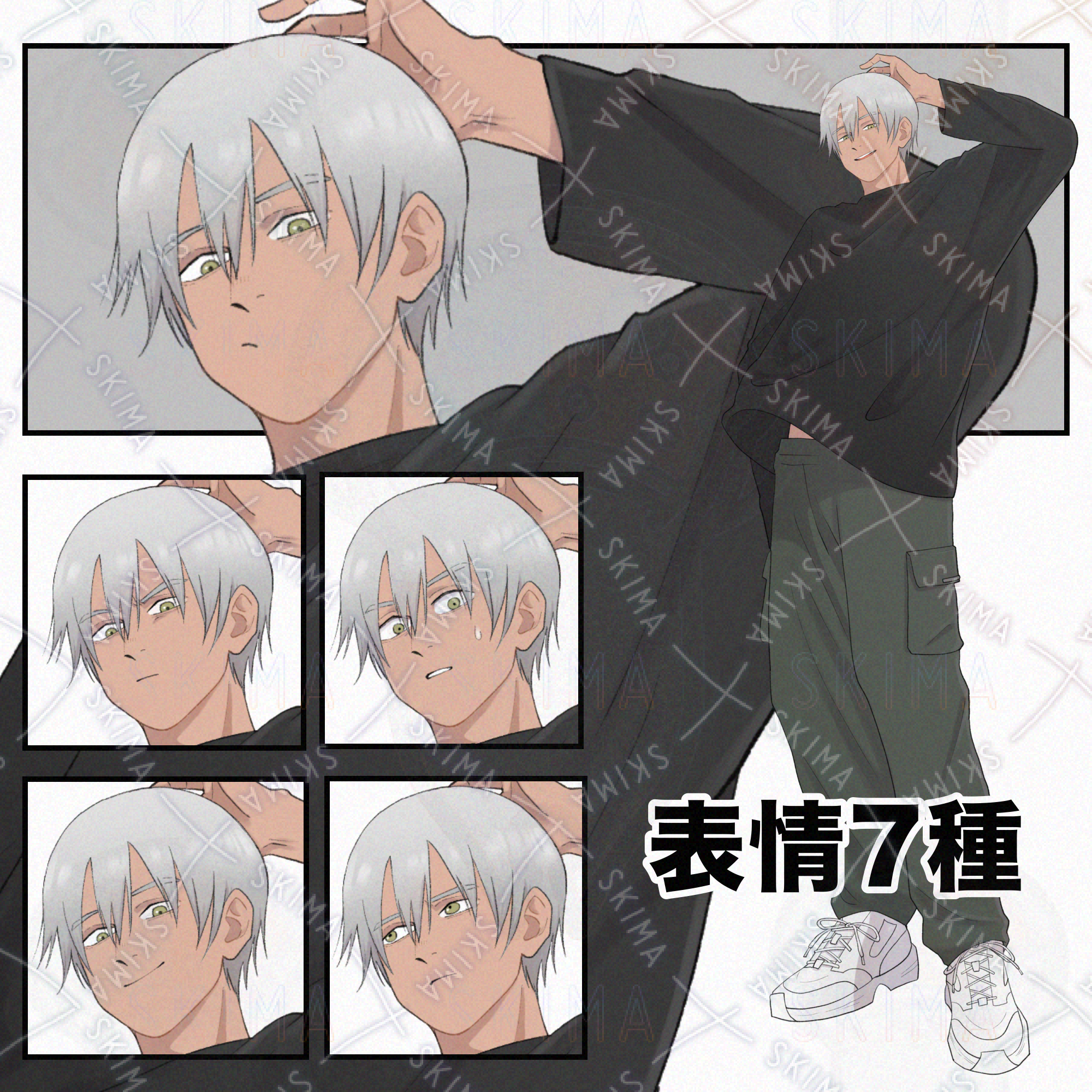 【表情7種】銀髪の男性