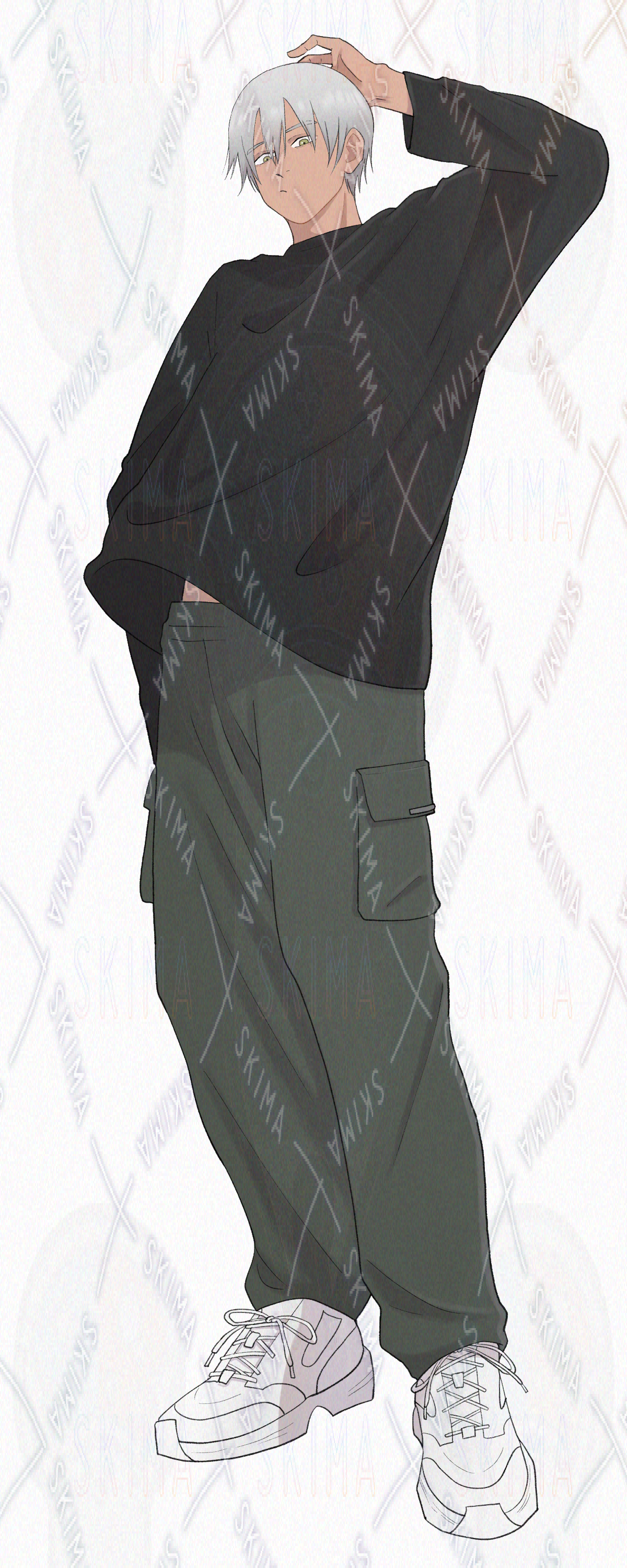 現代/学生/青年/白髪/スニーカー/長袖/私服