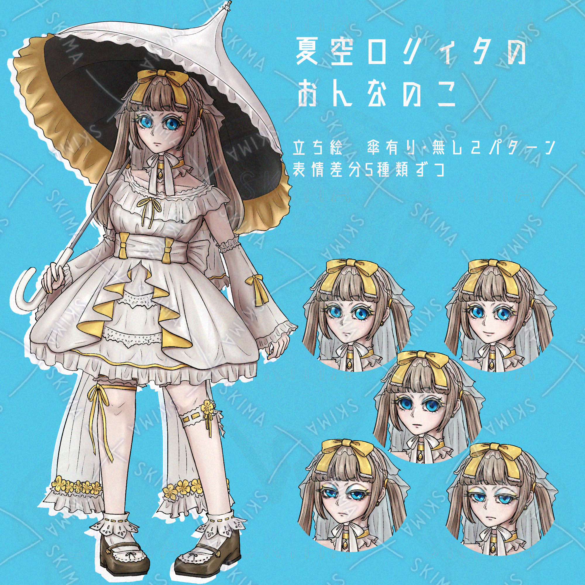 日傘差分あります。表情差分はそれぞれ5種類です。