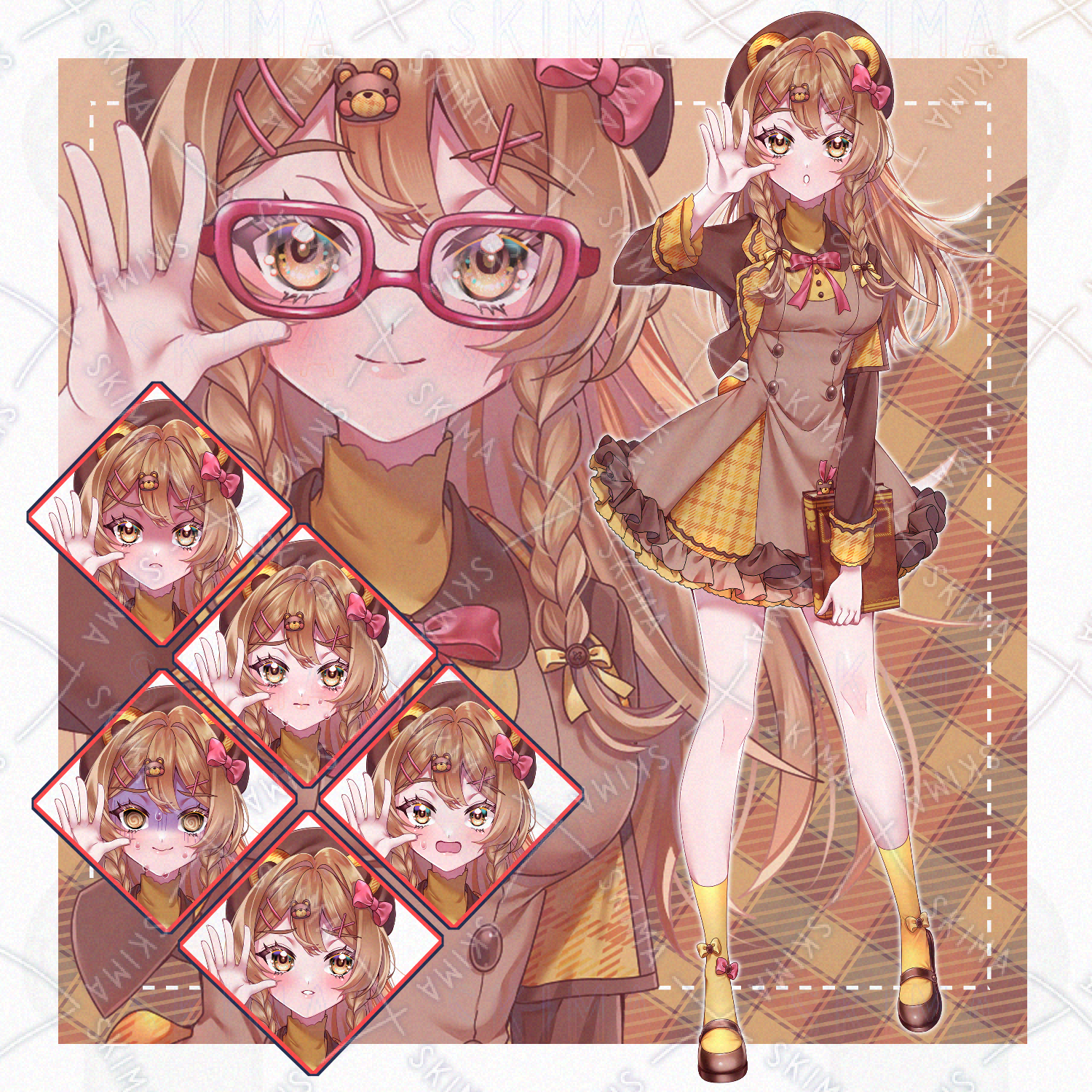 ・表情 デフォルト、笑顔、怒り、悲しみ、驚き、混乱、照れの七種類+着脱可能メガネです。