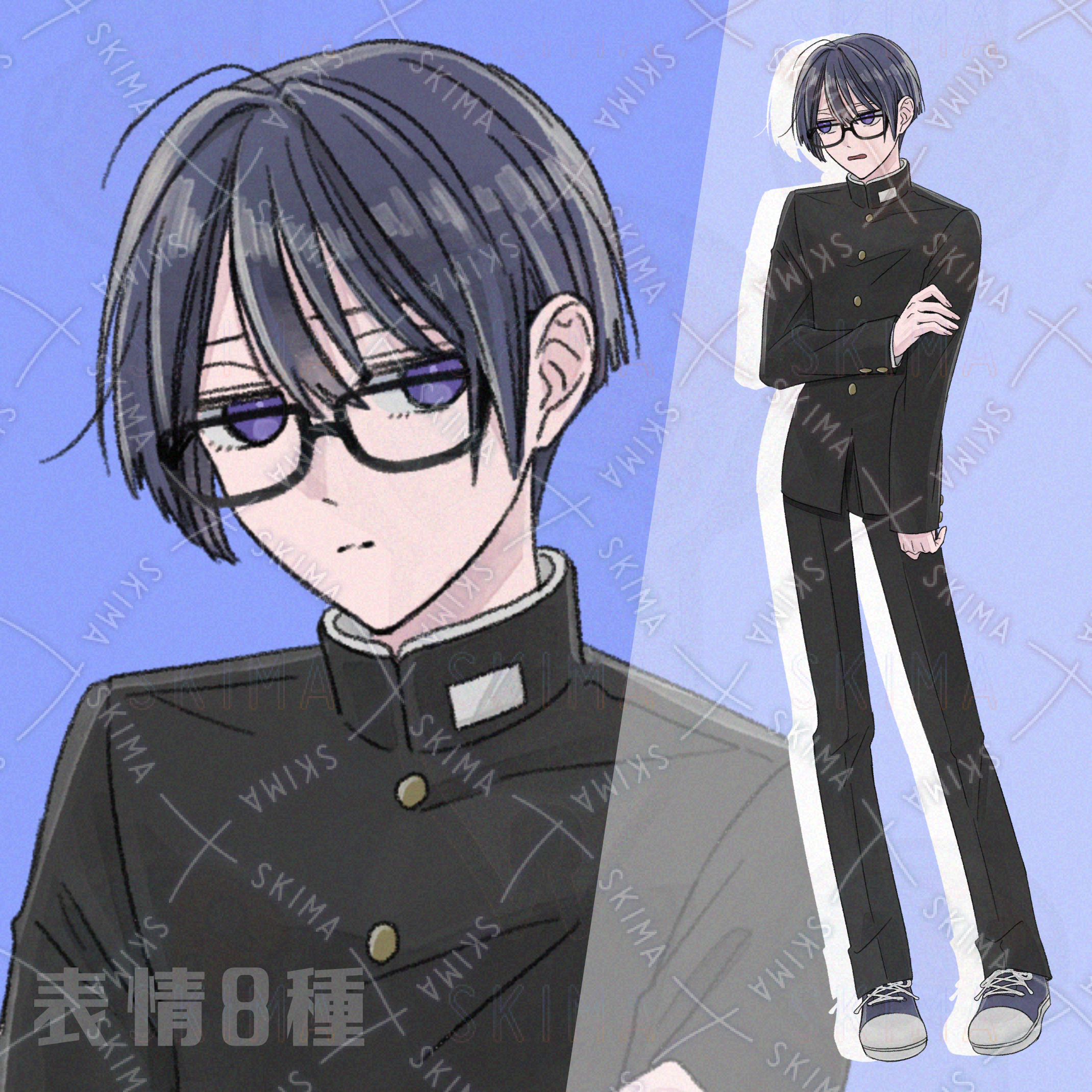 学ラン&メガネキャラクター立ち絵