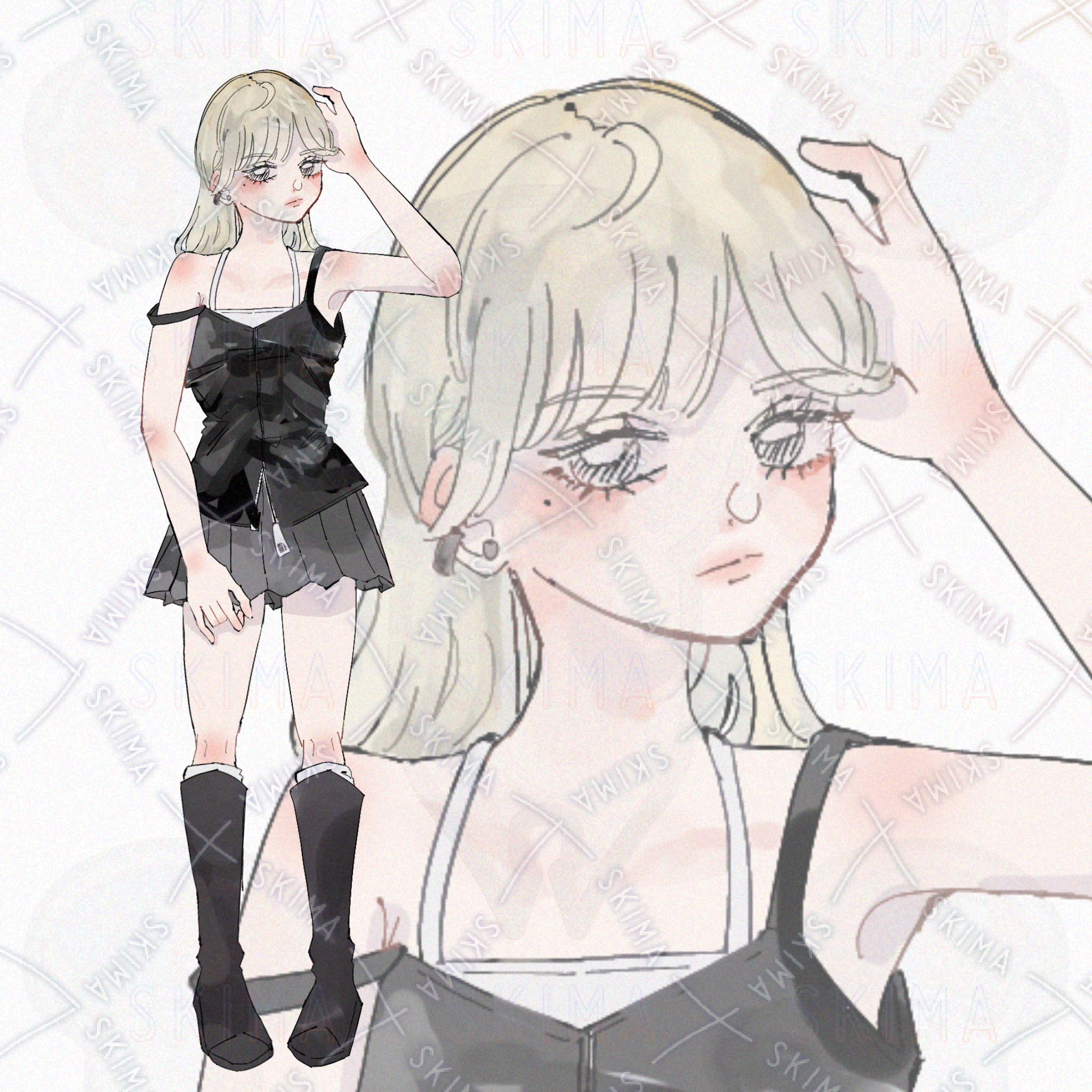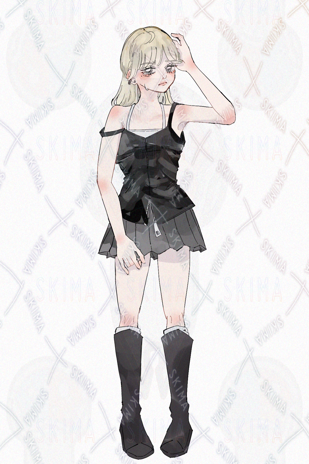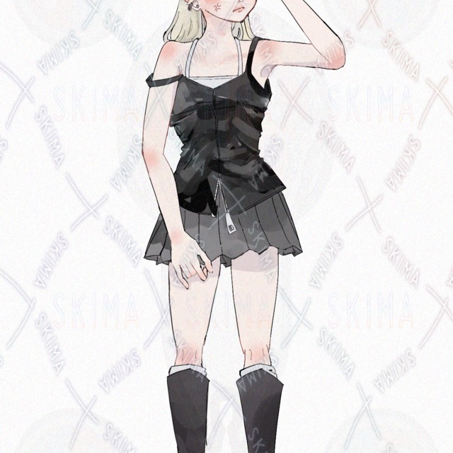女の子 ミニスカート ロングブーツ タンクトップ ノースリーブ