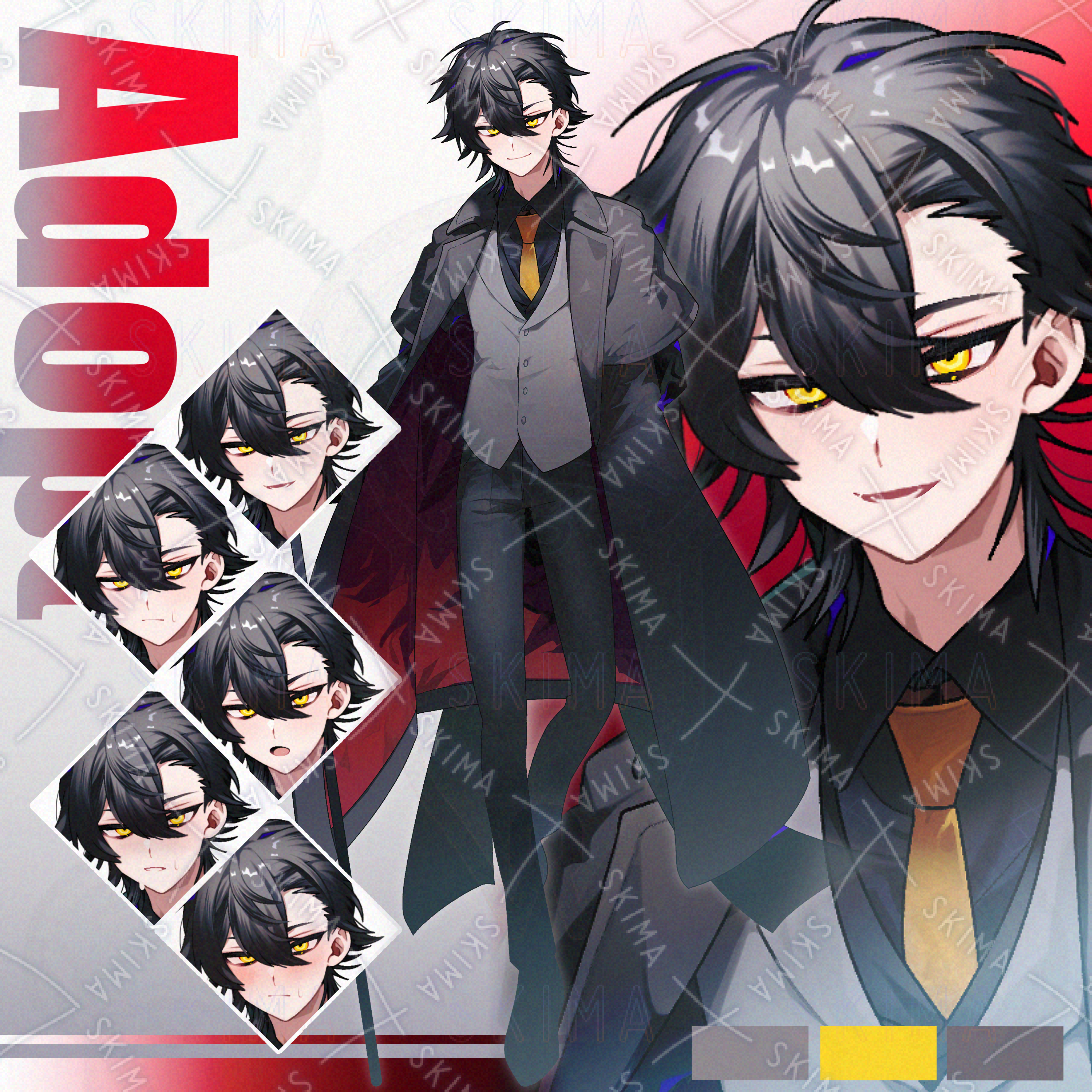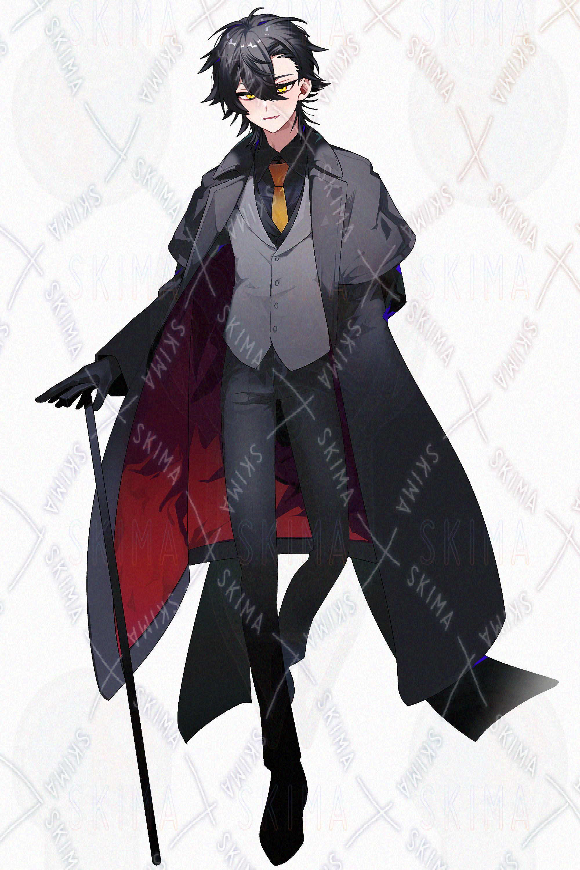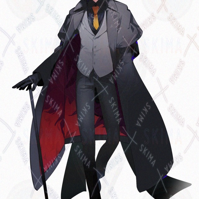 黒髪黒コートの男性の立ち絵です。