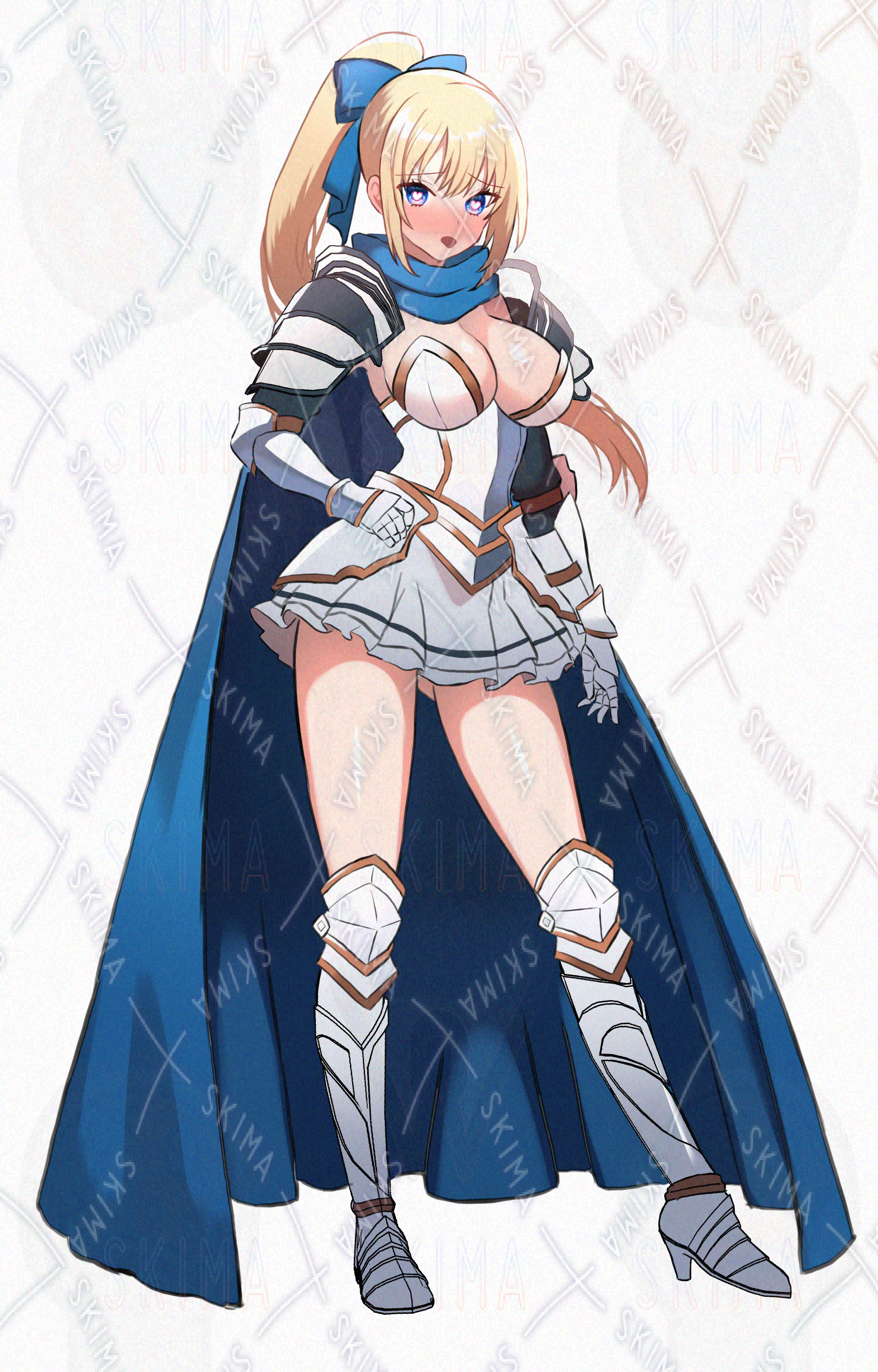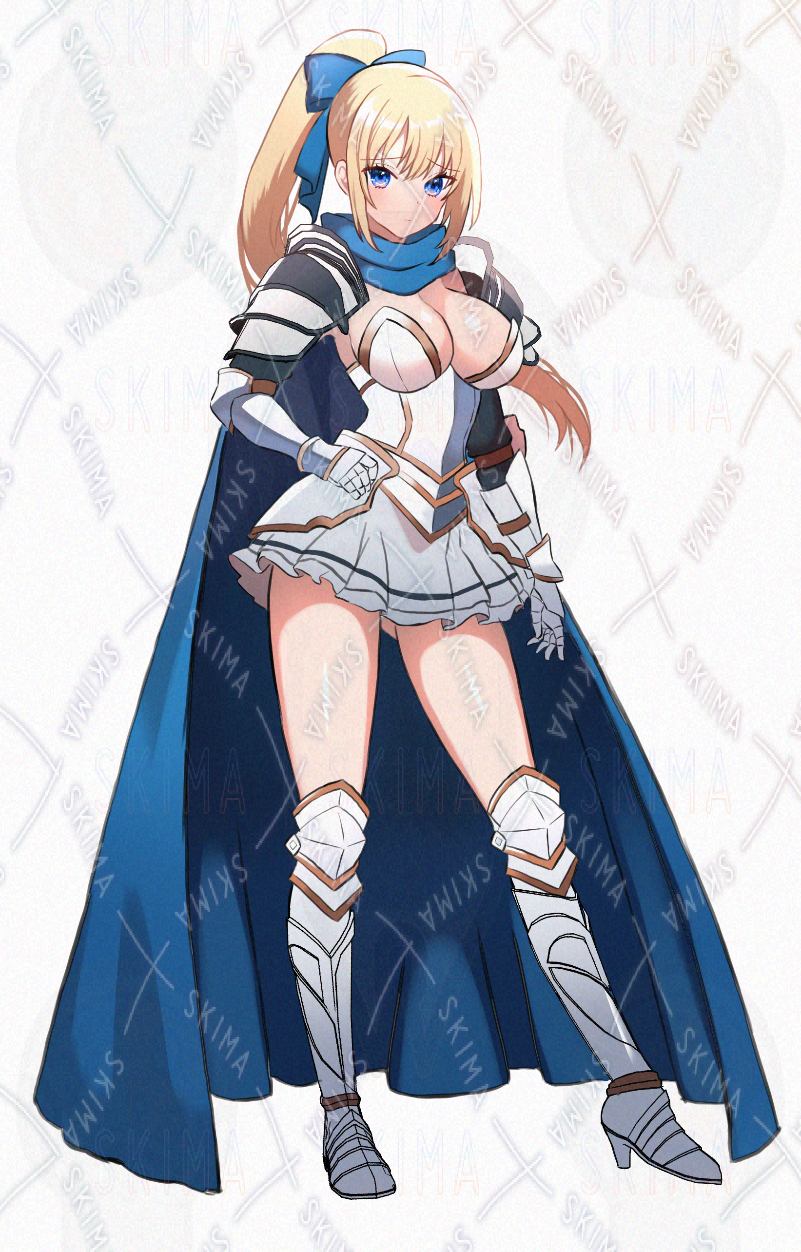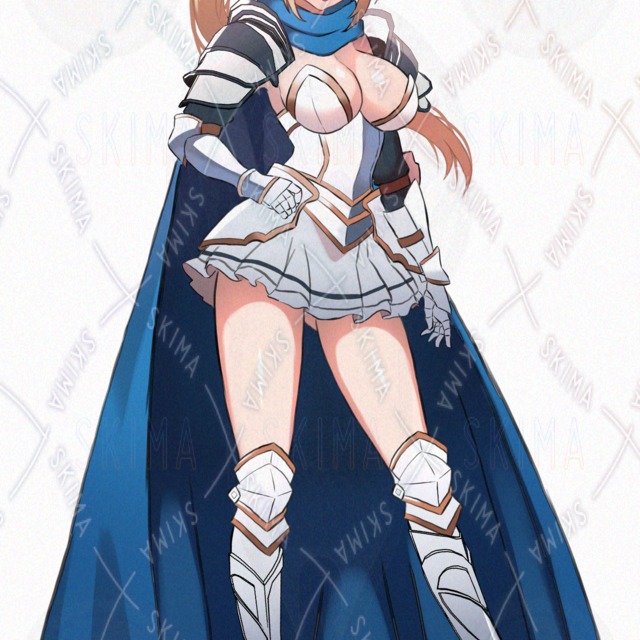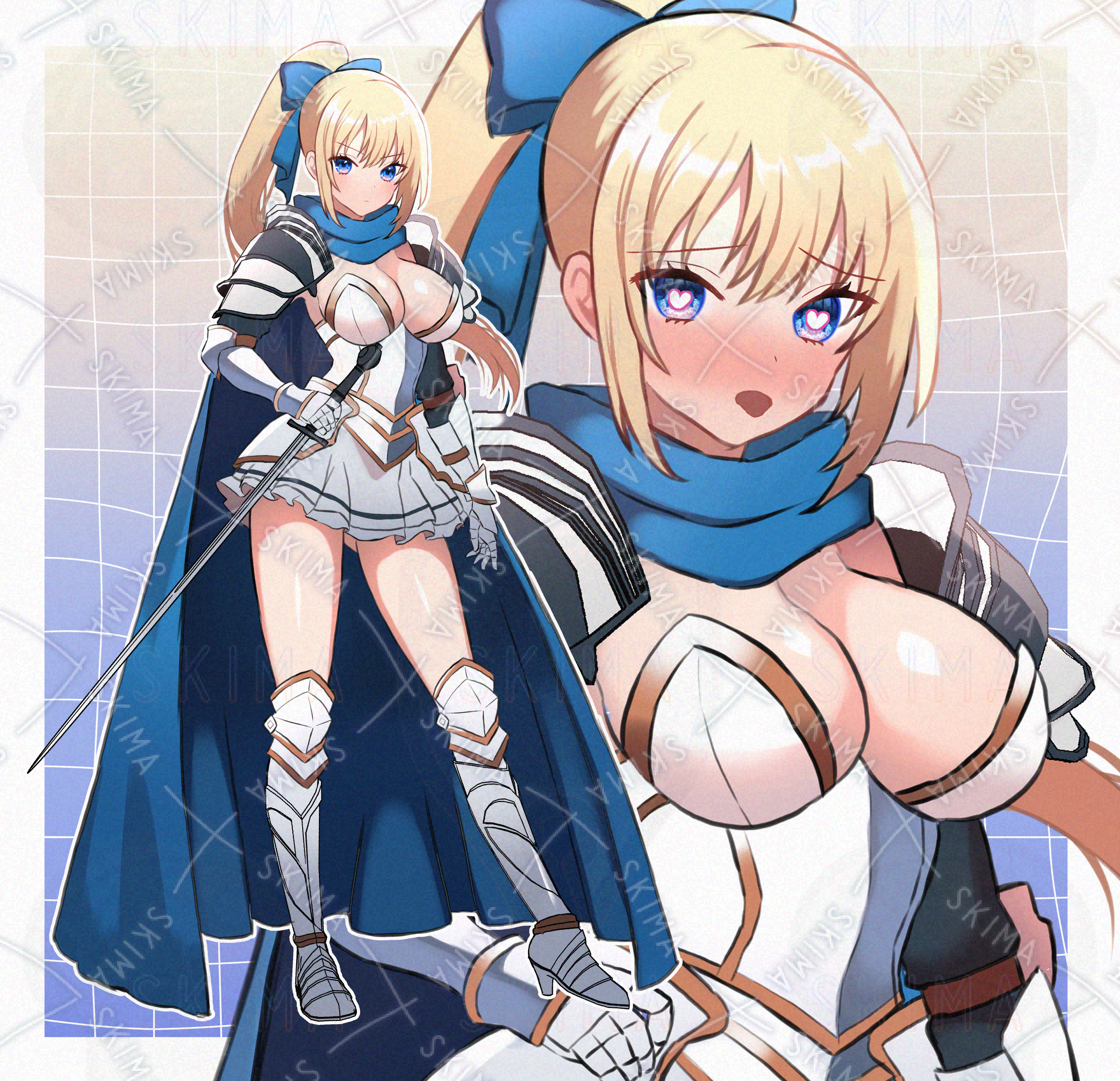 女騎士、姫騎士、金髪、鎧、剣、ファンタジー、青目、ミニスカ