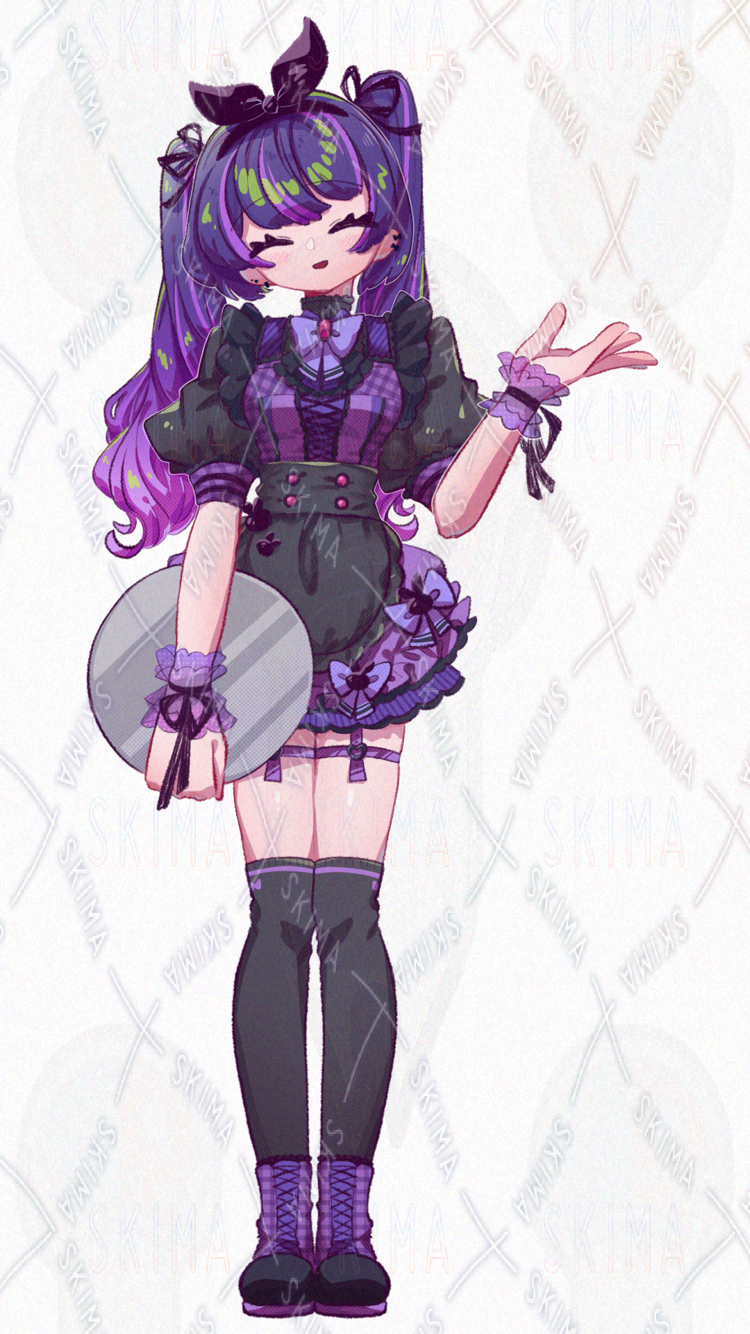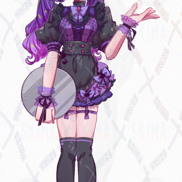 メイド服/女の子/紫/黒/リボン/スカート/ツインテール/ガーター/うさぎ/チェック柄/お袖留め