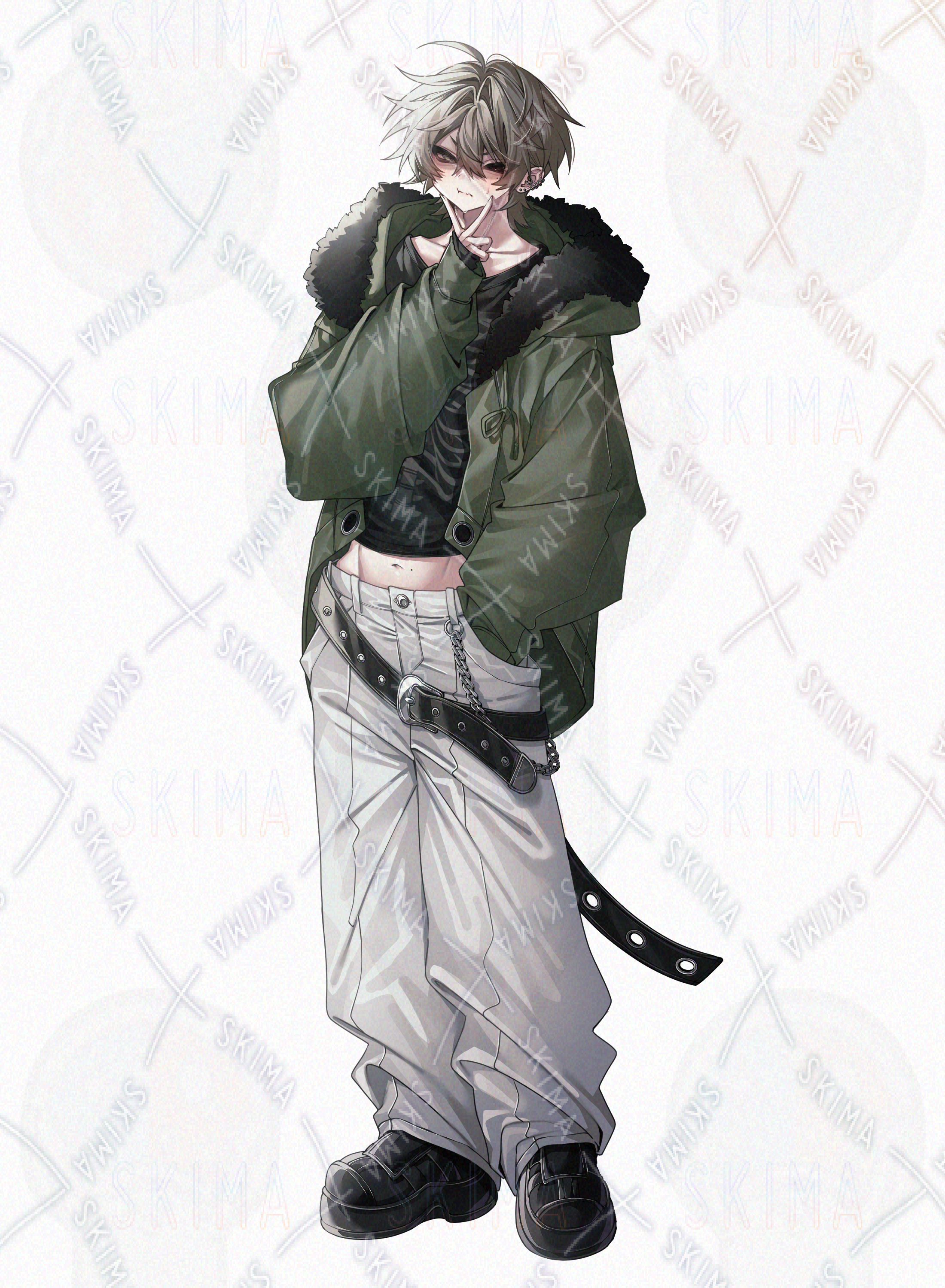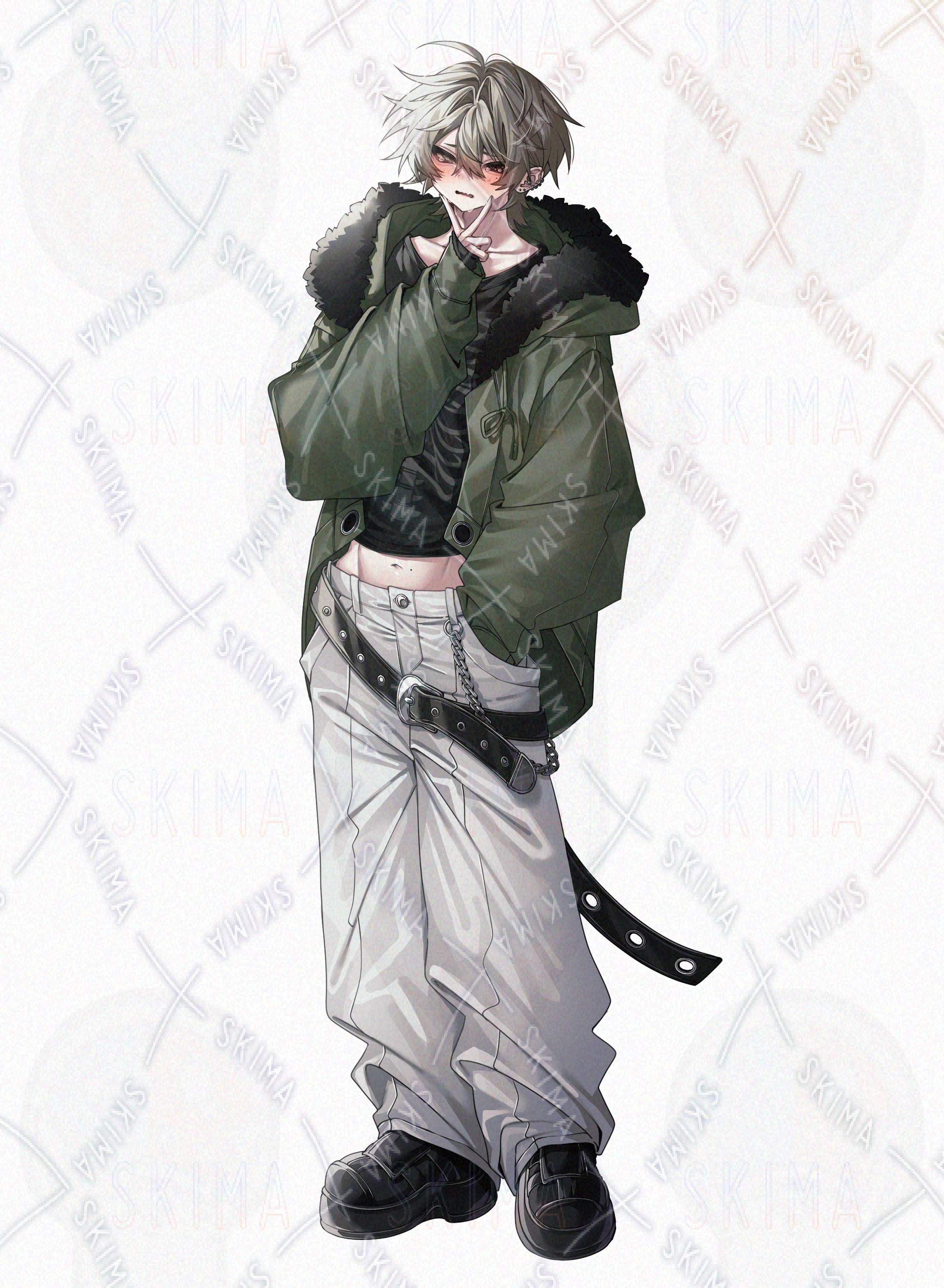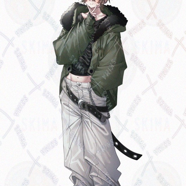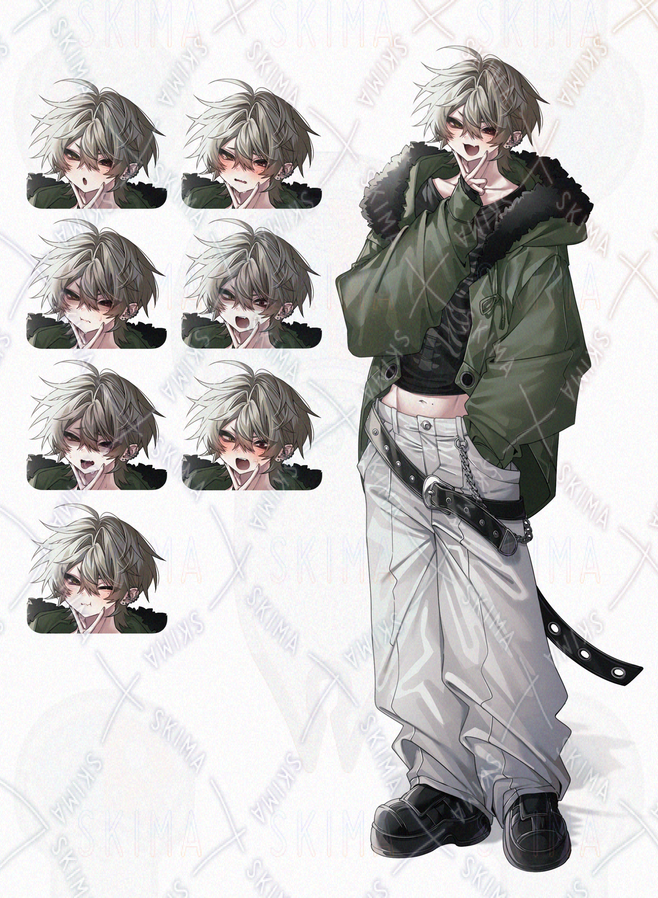 【表情差分8種男性立ち絵(モッズコート、猫顔、金髪)