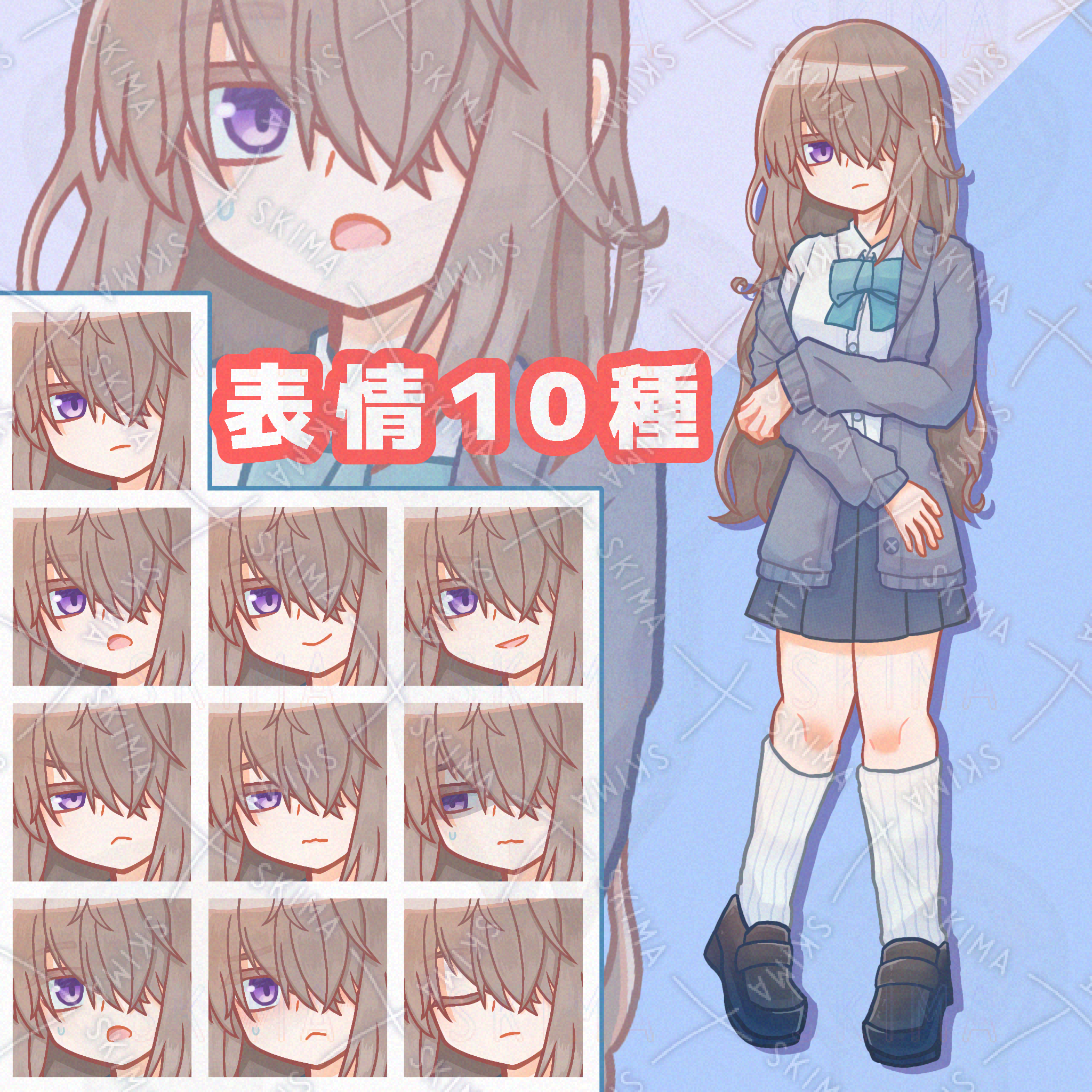 片メカクレの女子高校生【表情10種】