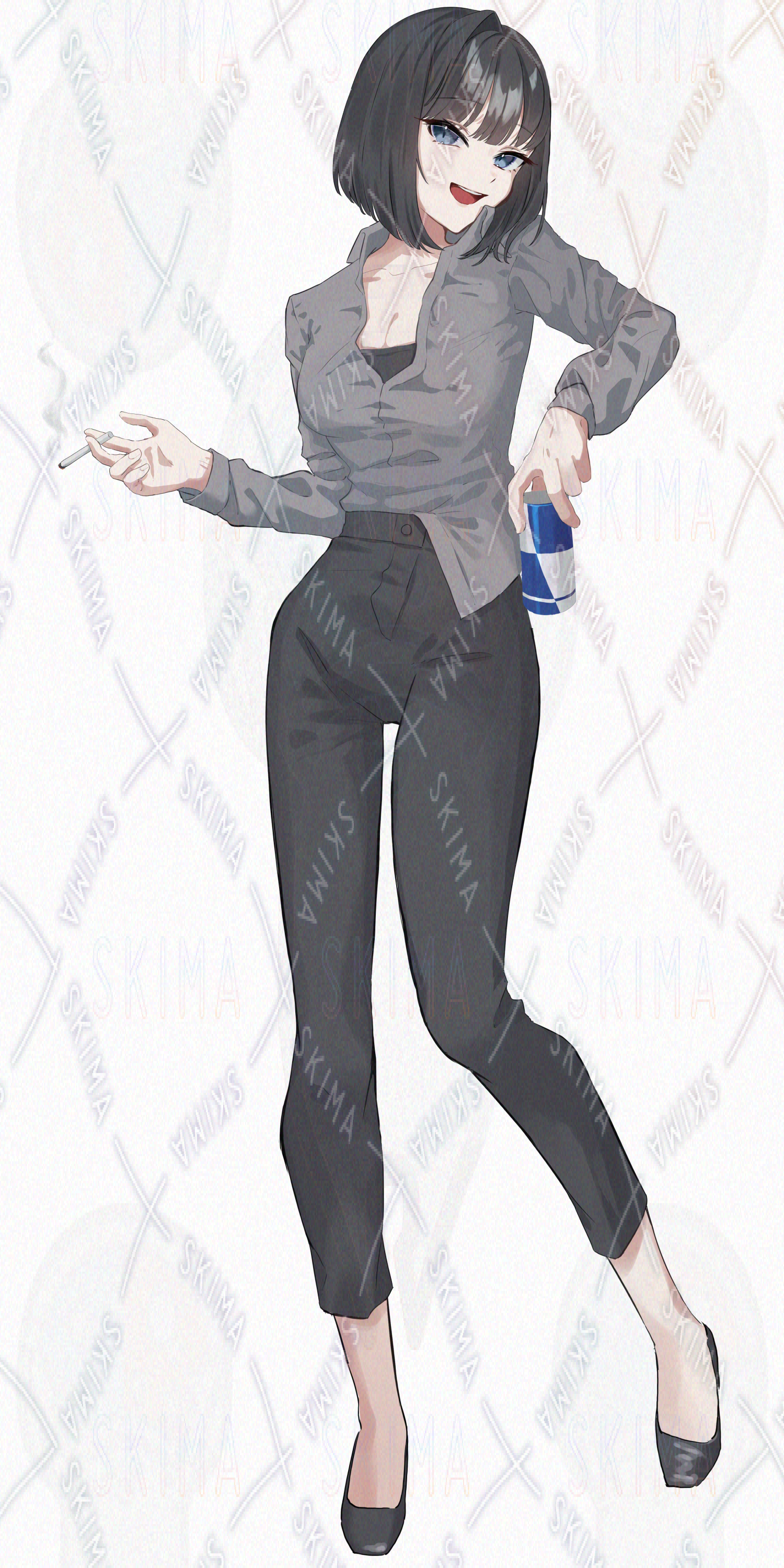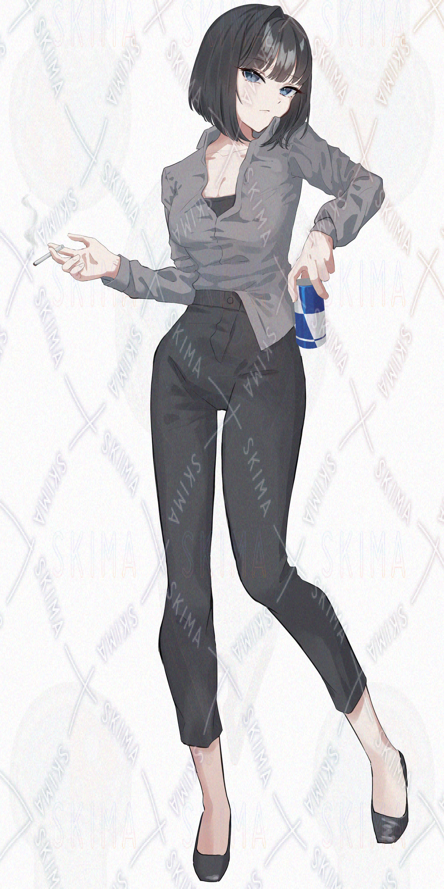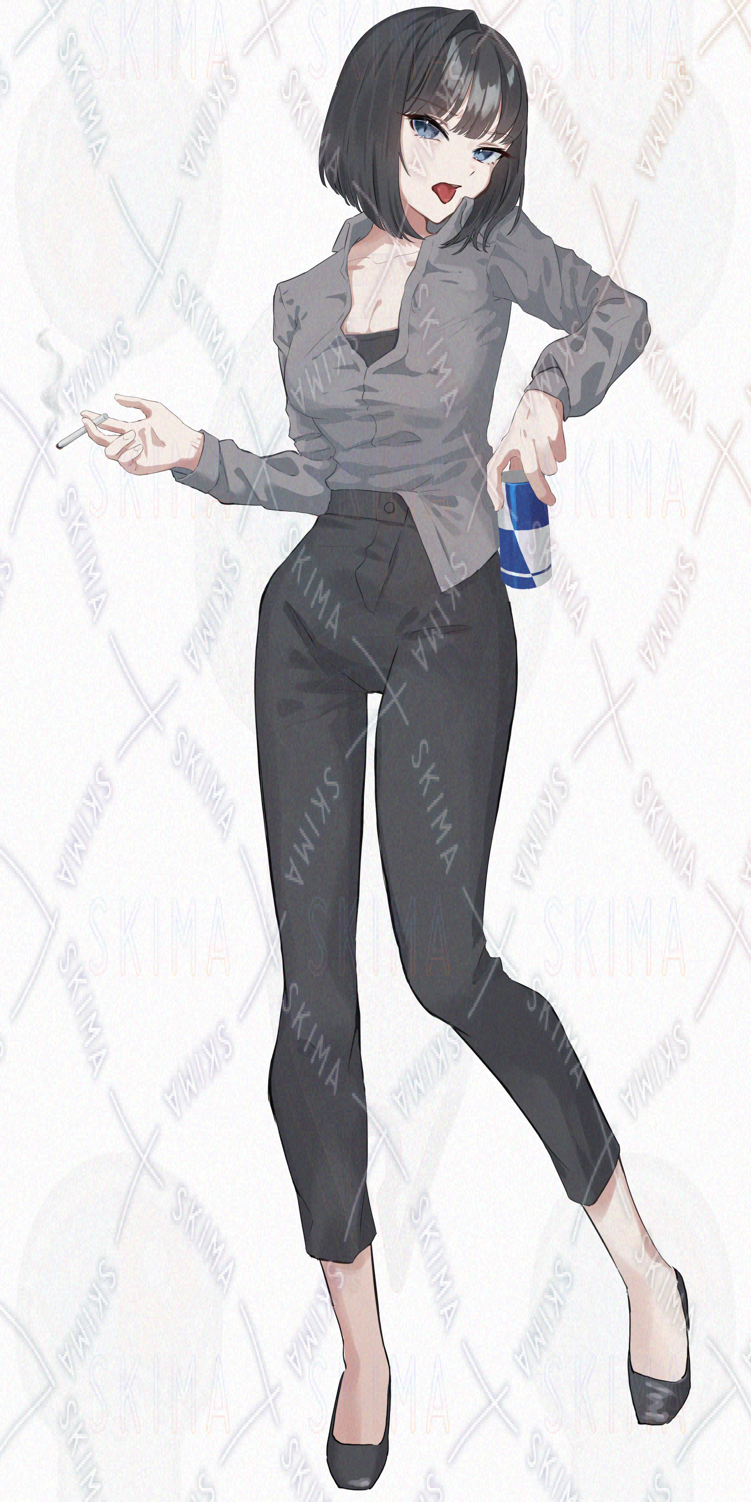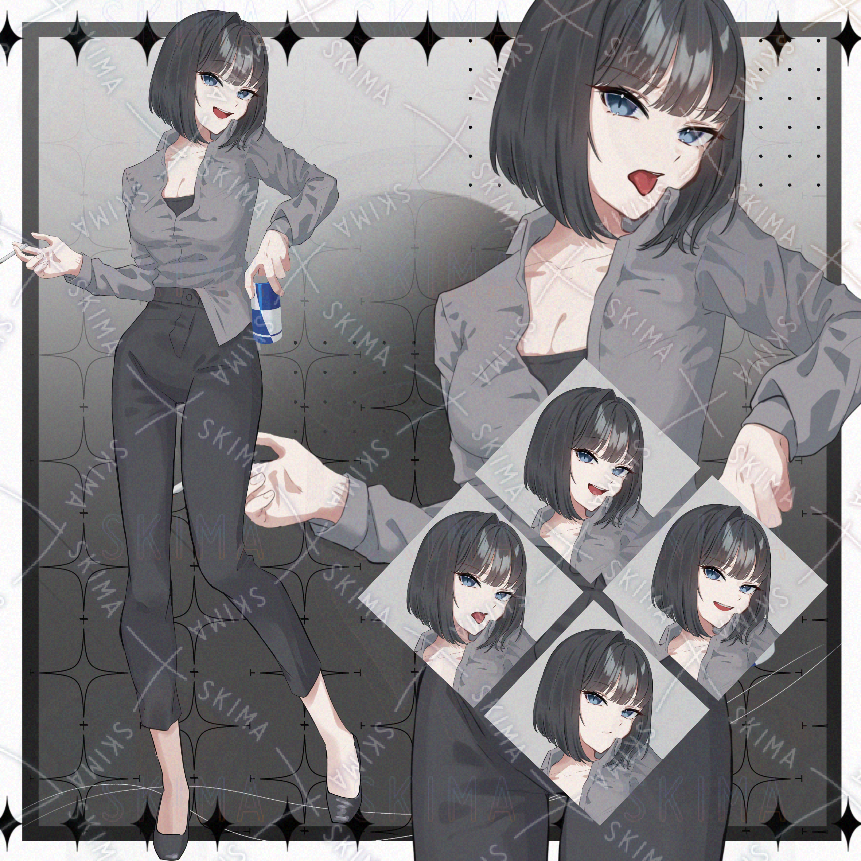 女性/黒髪/ボブ/スーツ/たばこ/黒系