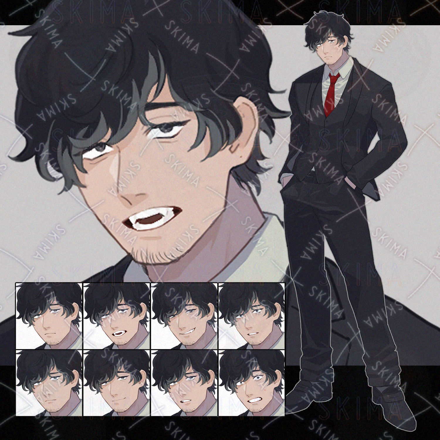 三白眼で八重歯な成人男性です。
