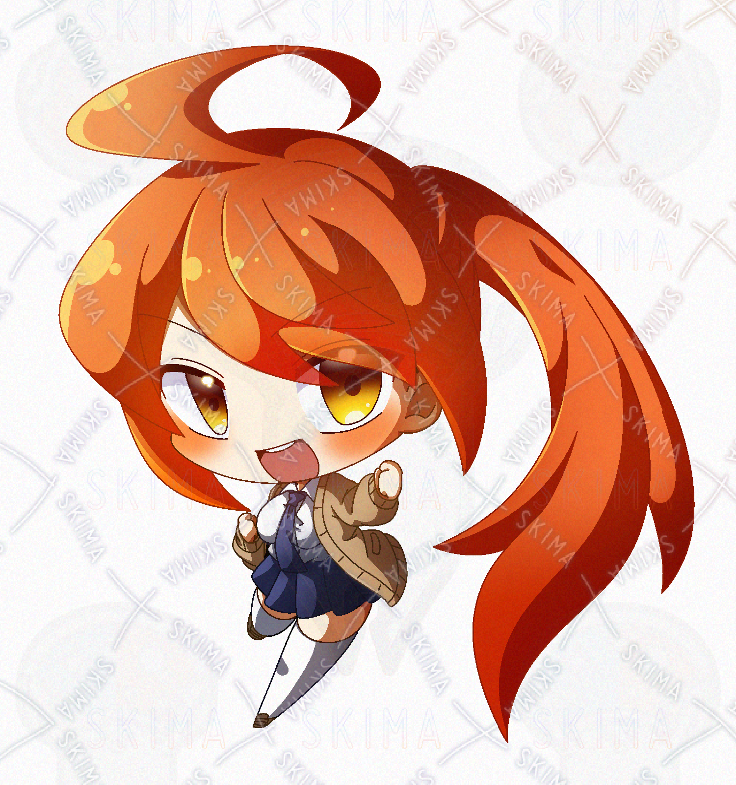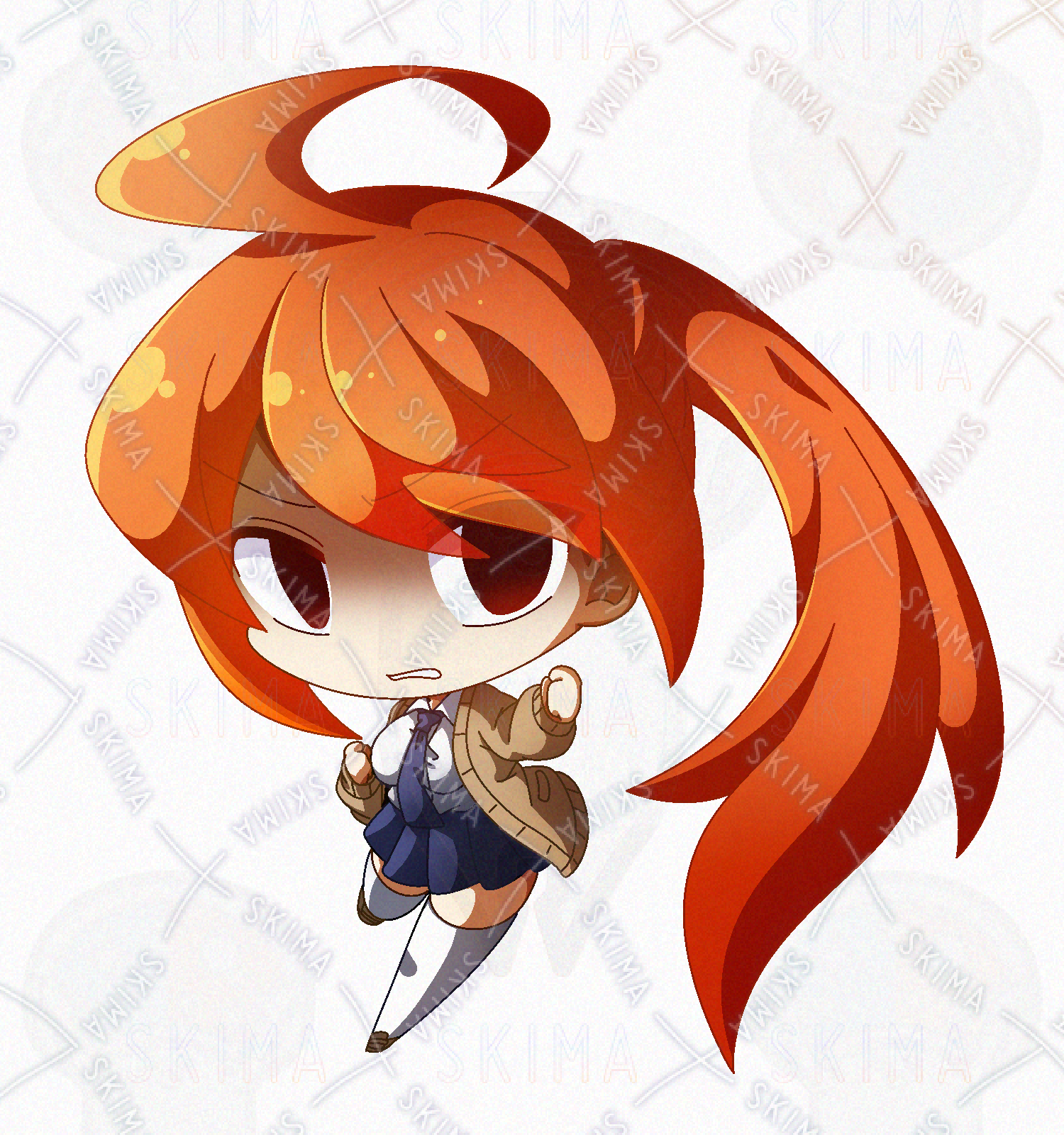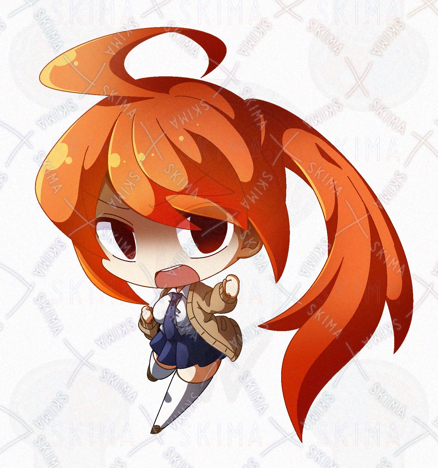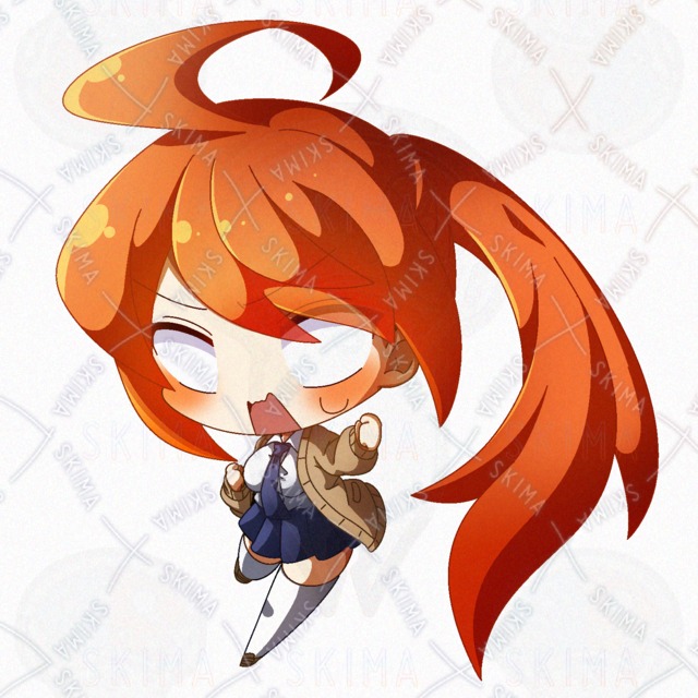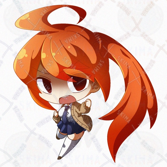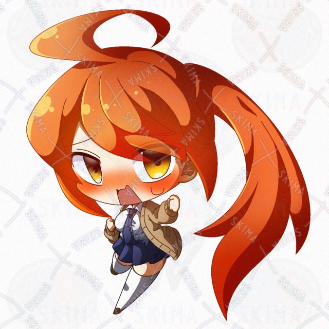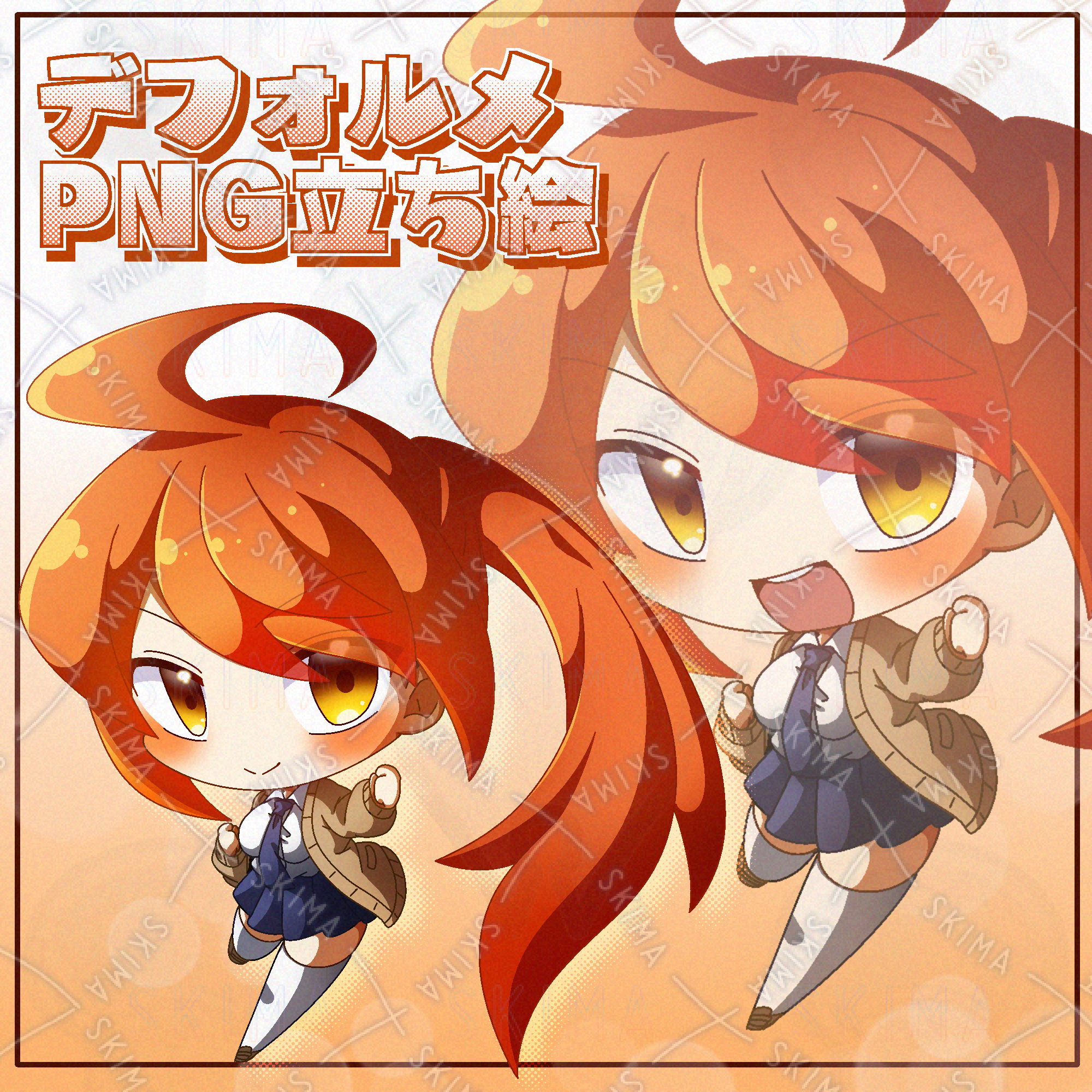 オレンジ髪なポニテ快活JKのデフォルメPNG立ち絵素材です。