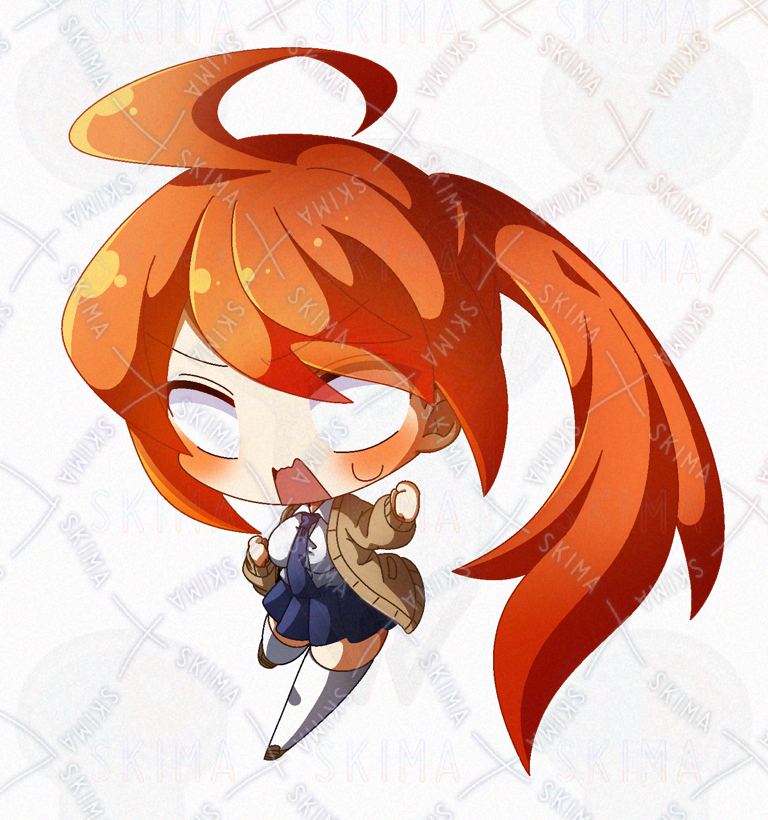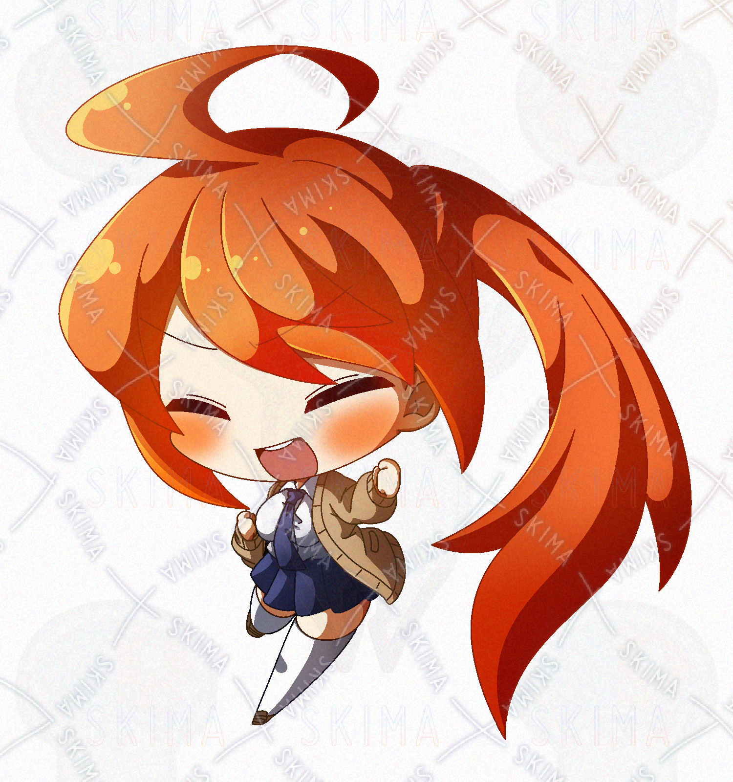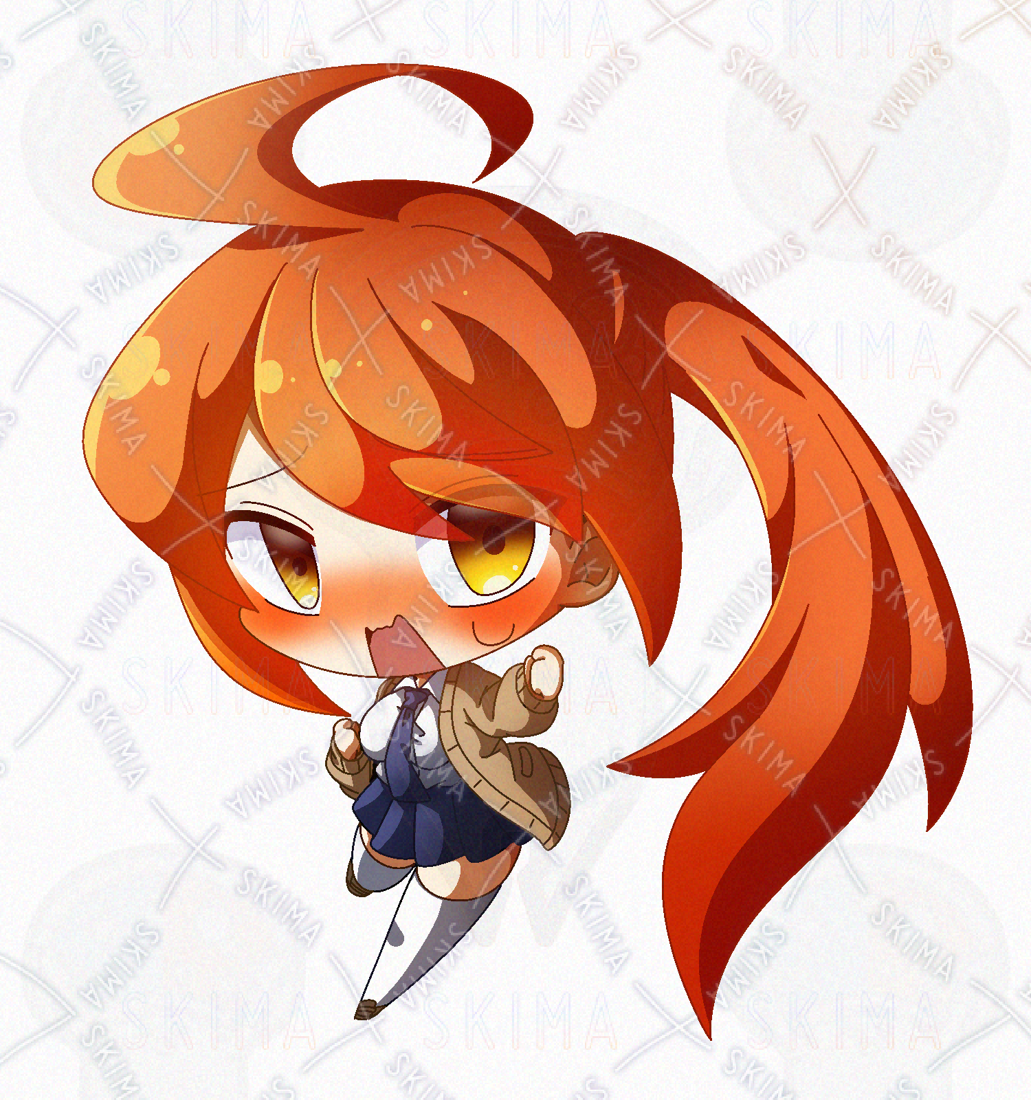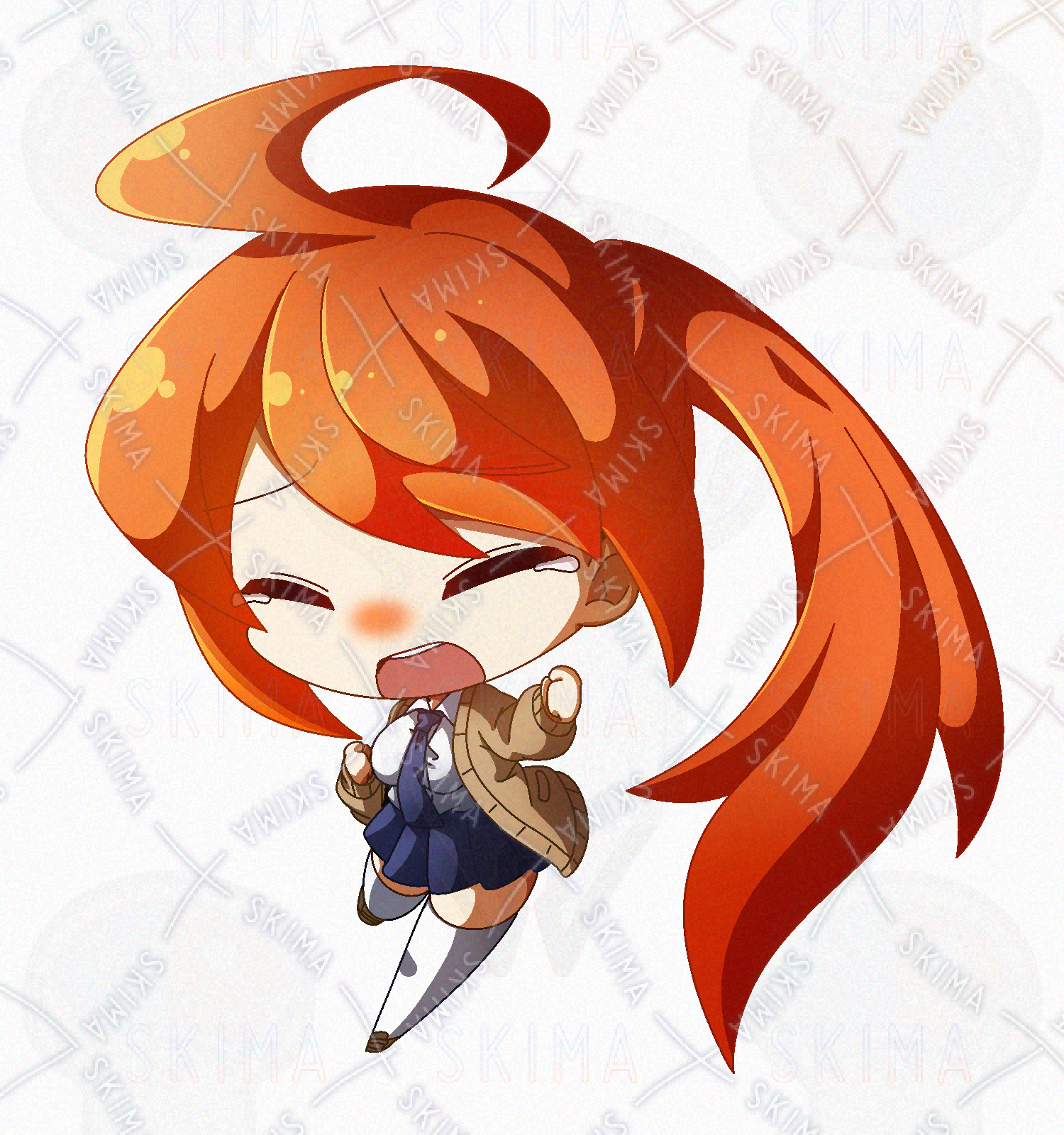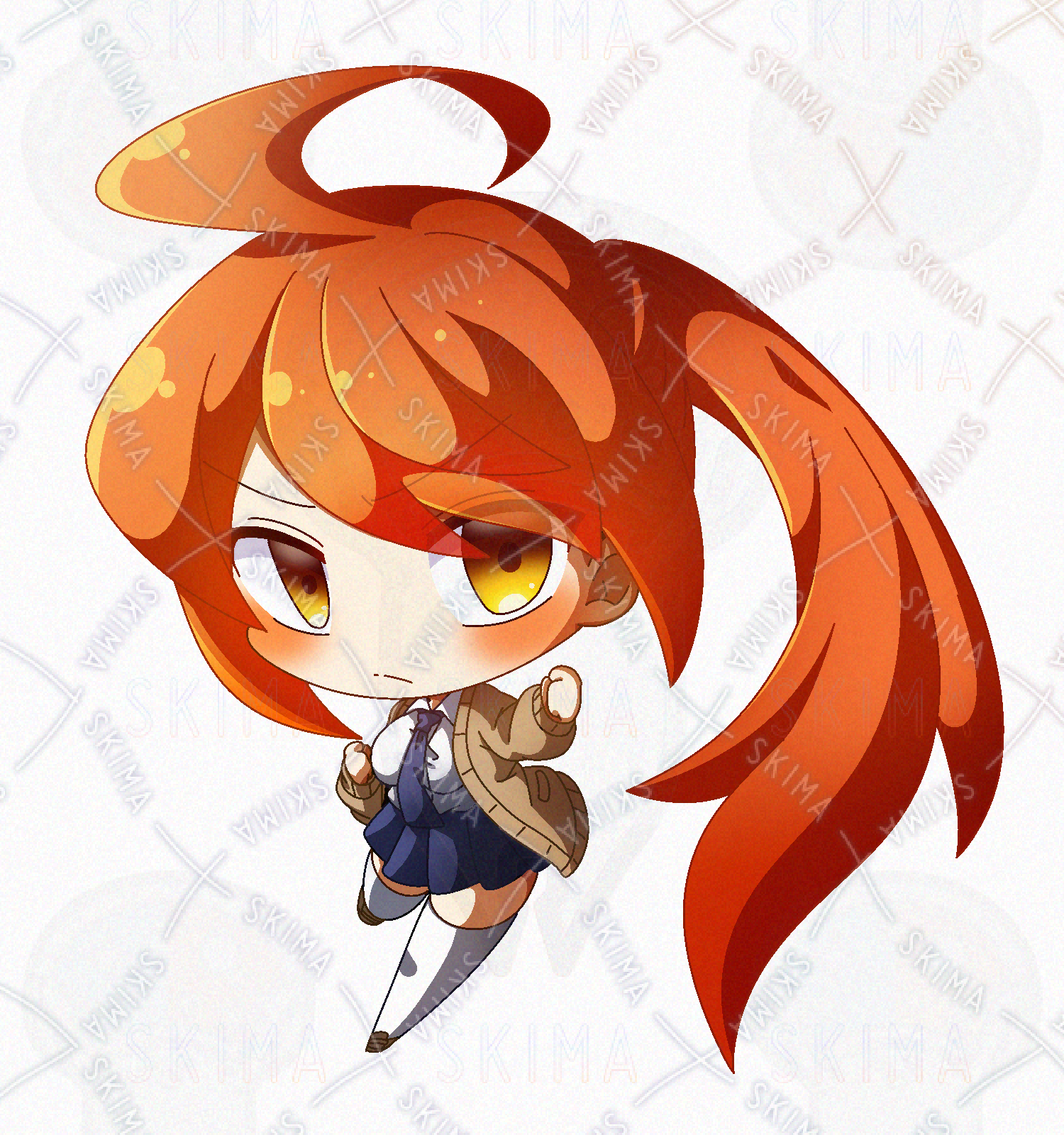 オレンジ髪なポニテ快活JKのデフォルメPNG立ち絵素材です。