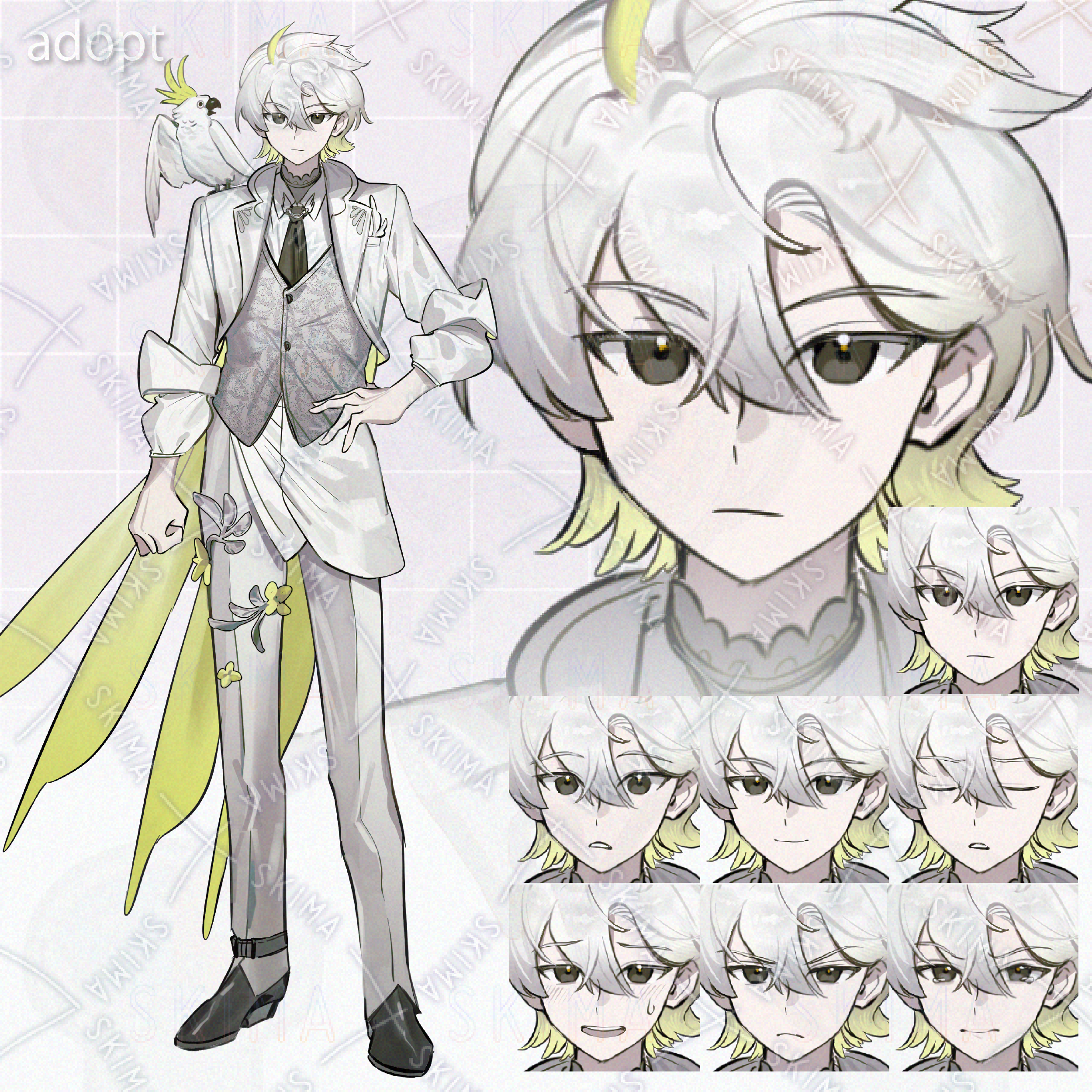 【表情差分7種類+小道具一種類】インコモチーフの青年