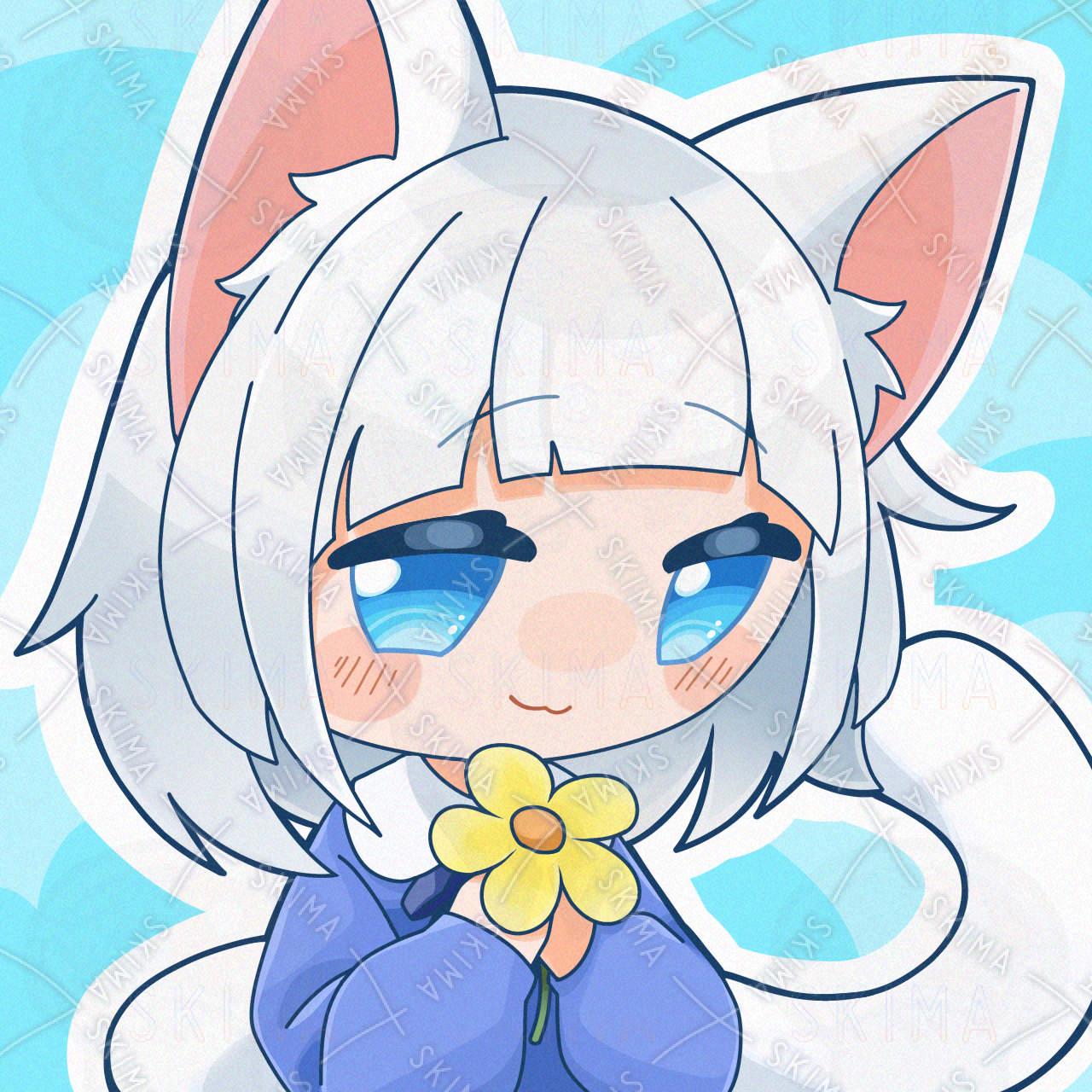 おしとやかで可愛い猫の女の子のイラストです! SNSアイコン等にお使いいただけます!