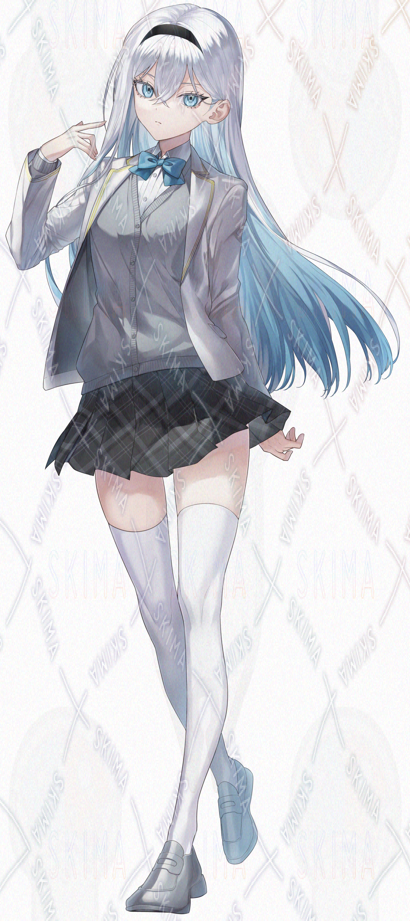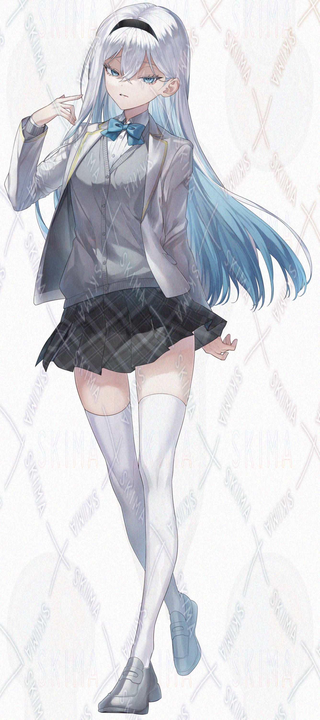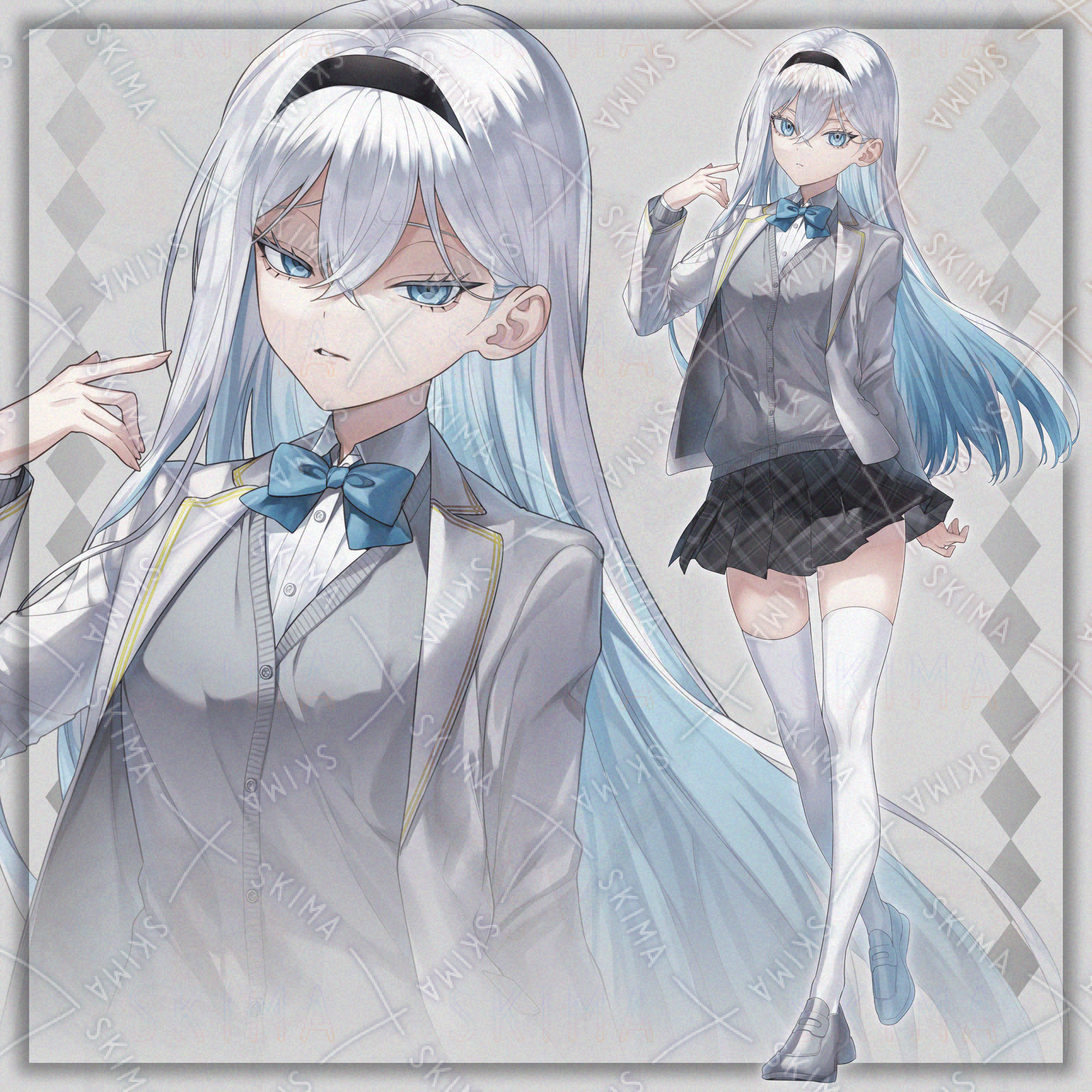 ゲス顔(軽蔑)表情差分付き、白く冷たい雰囲気の、学生服の少女です。