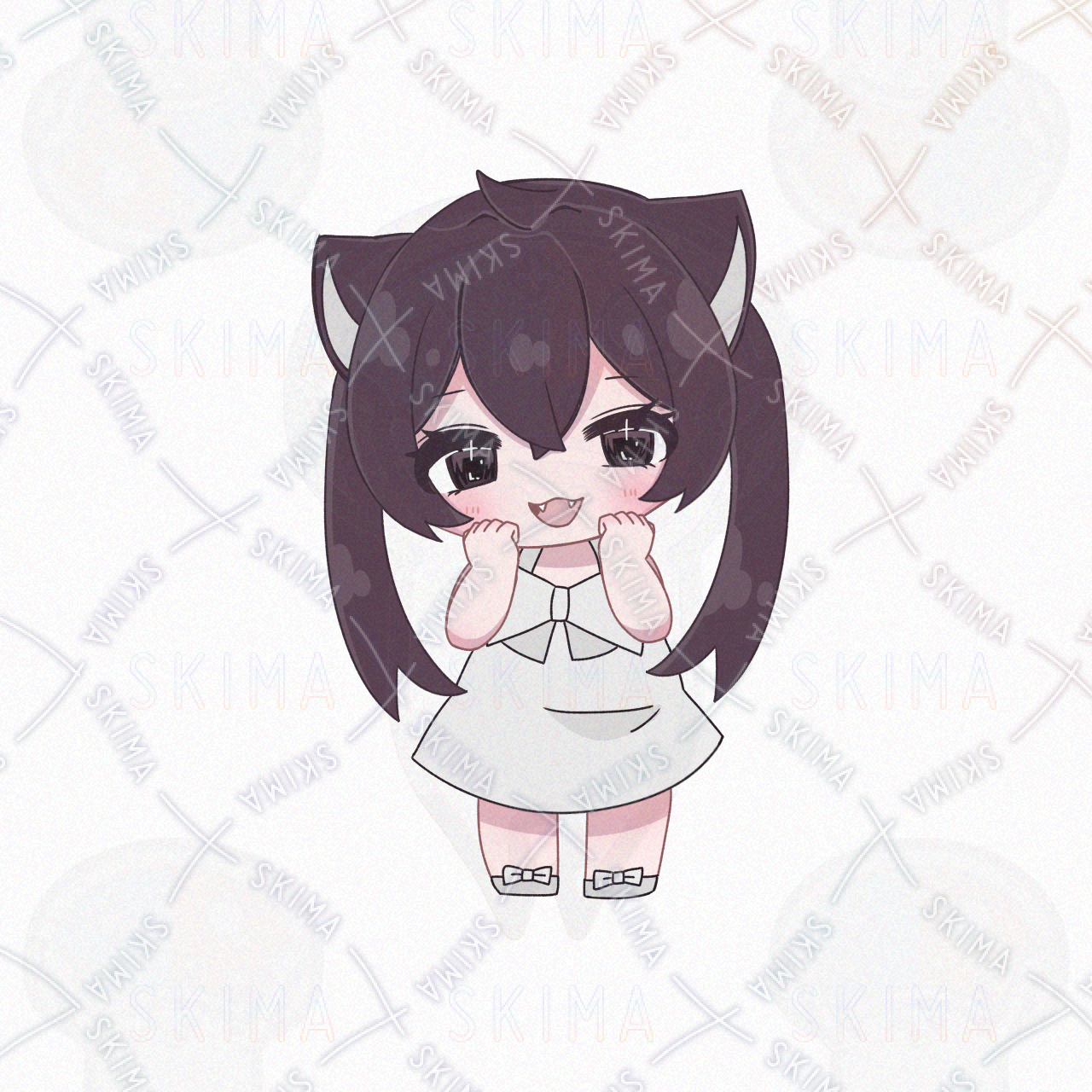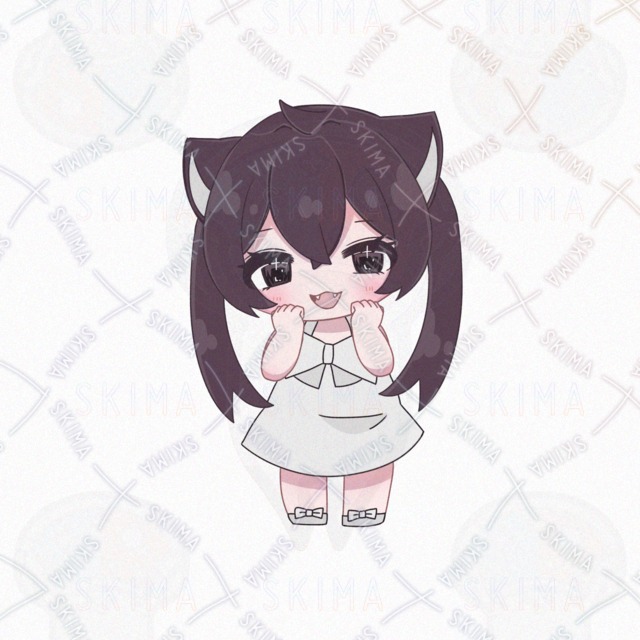 ミニキャラ デフォルメ SDキャラ 猫耳 白ワンピ 女の子 SNS アイコン 量産 地雷