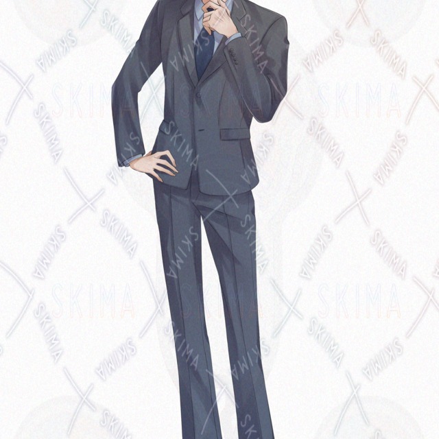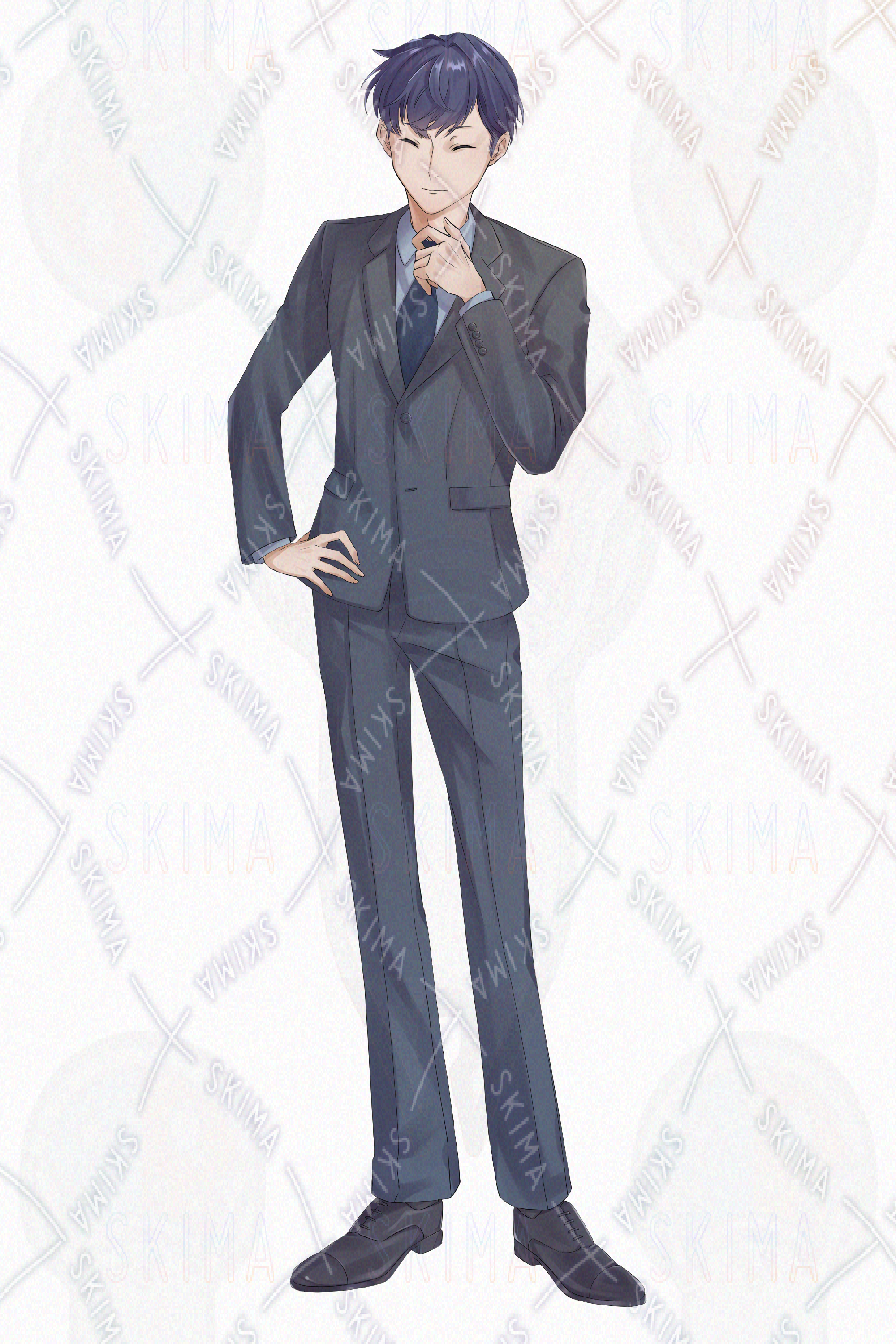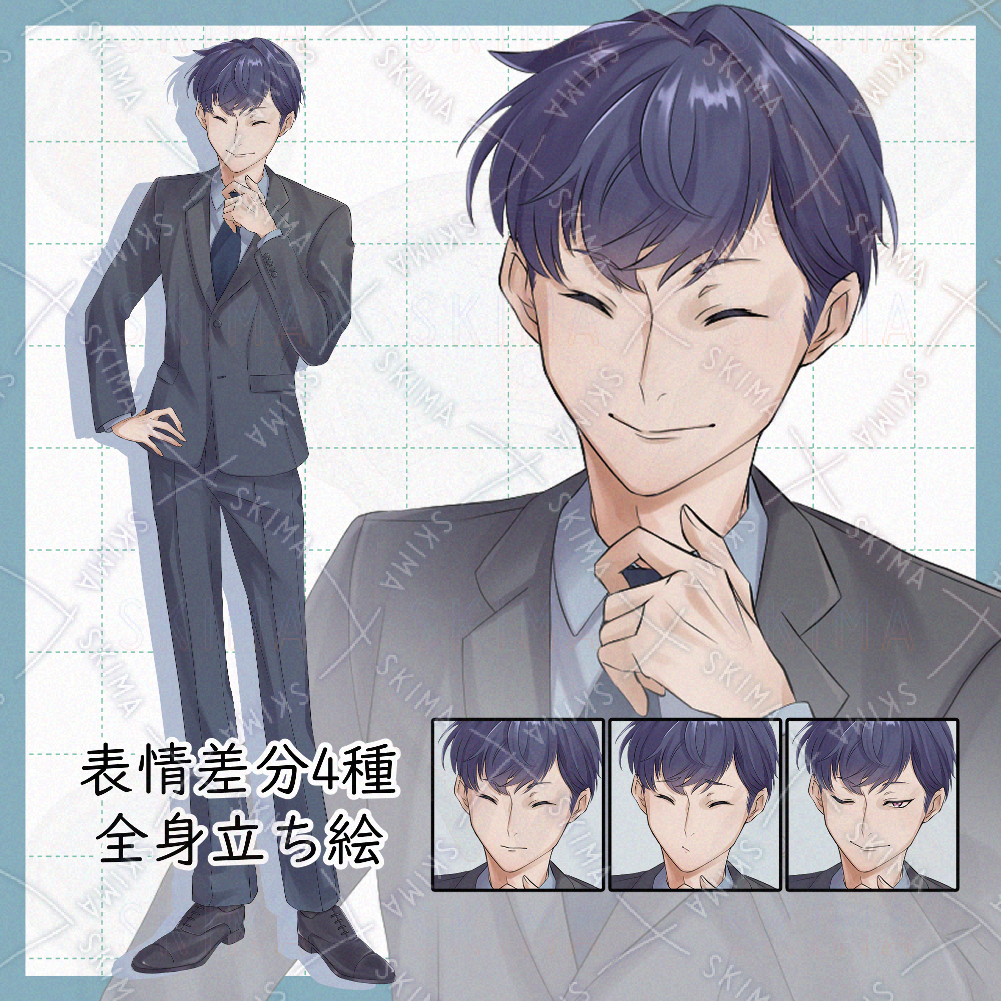 スーツを着た糸目の男性の立ち絵イラストです。