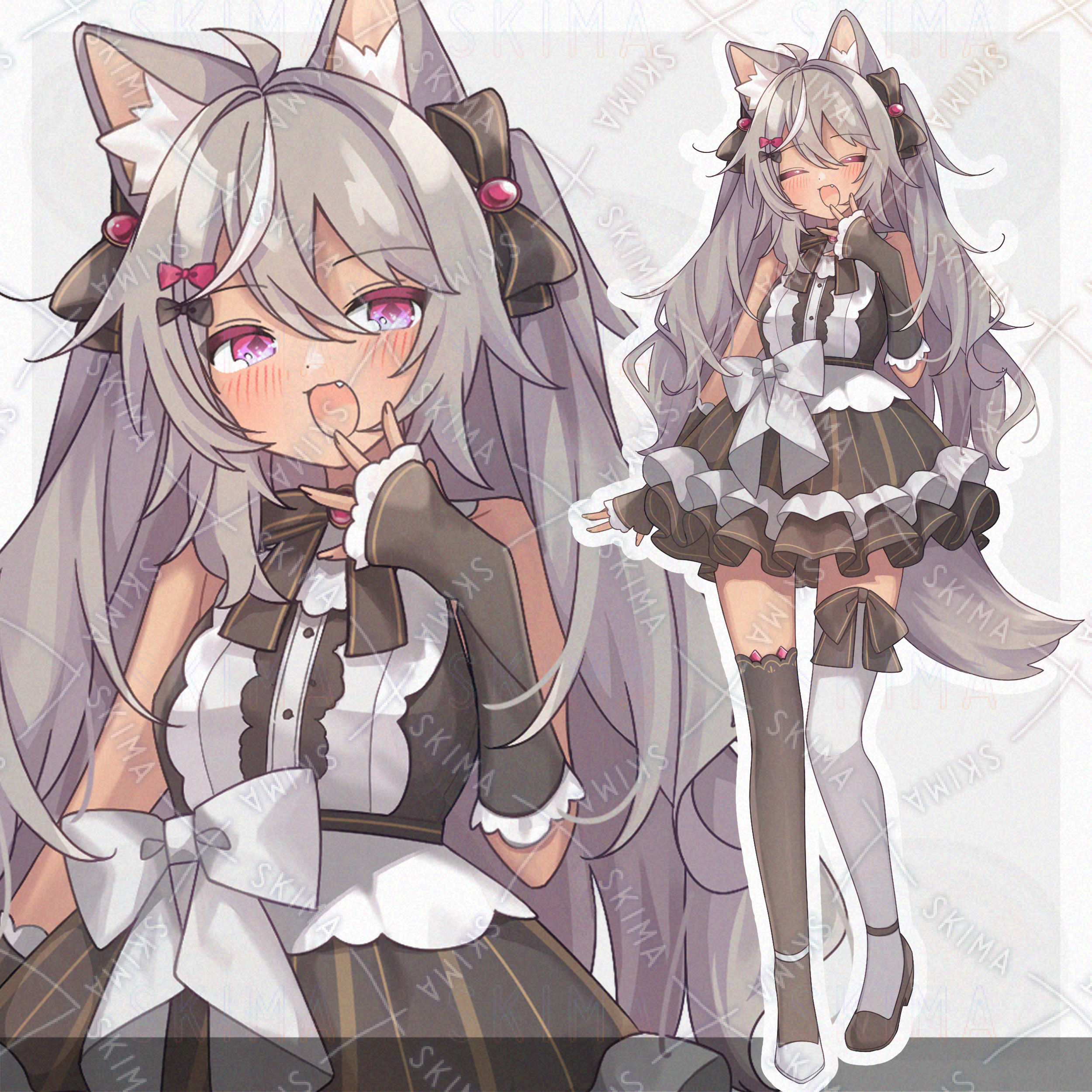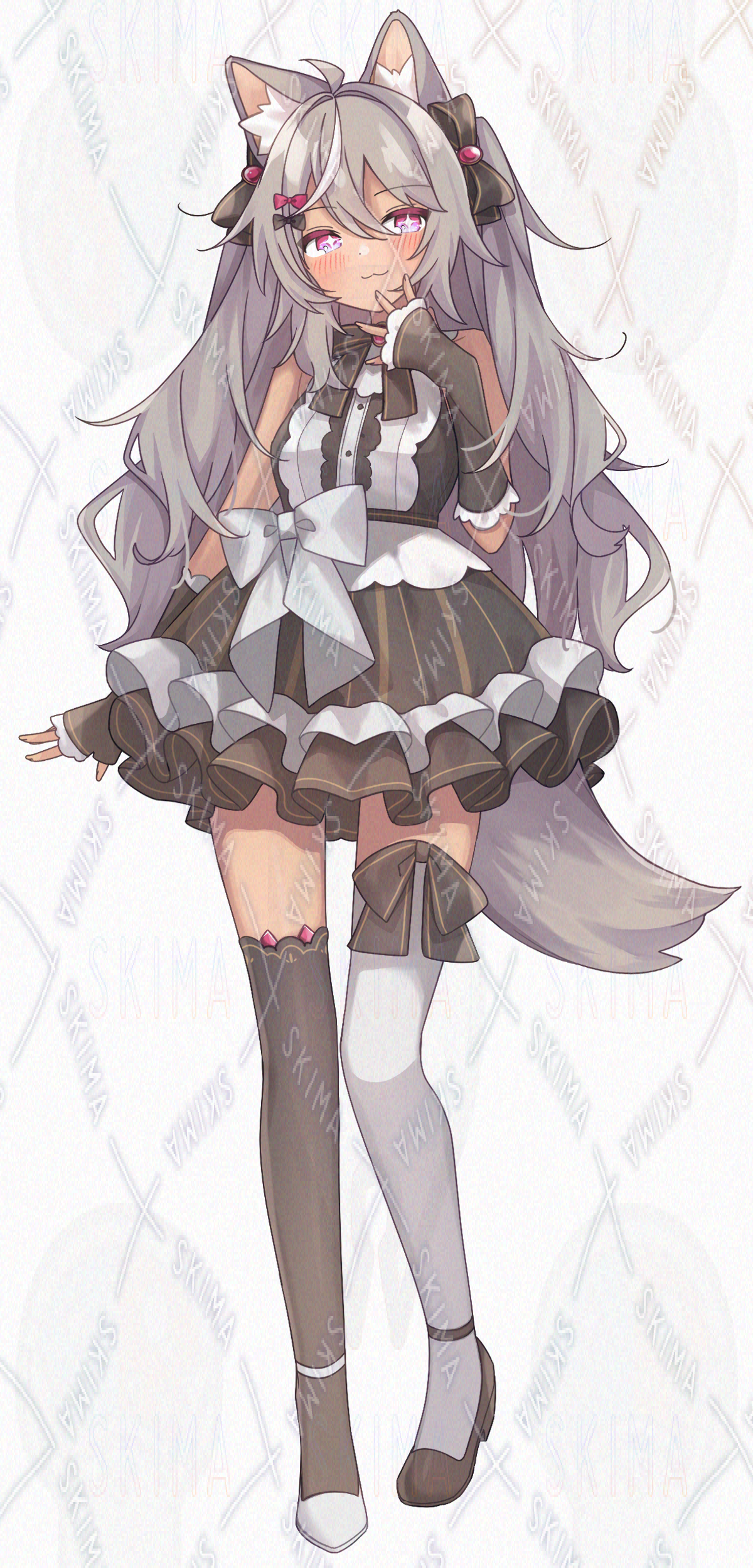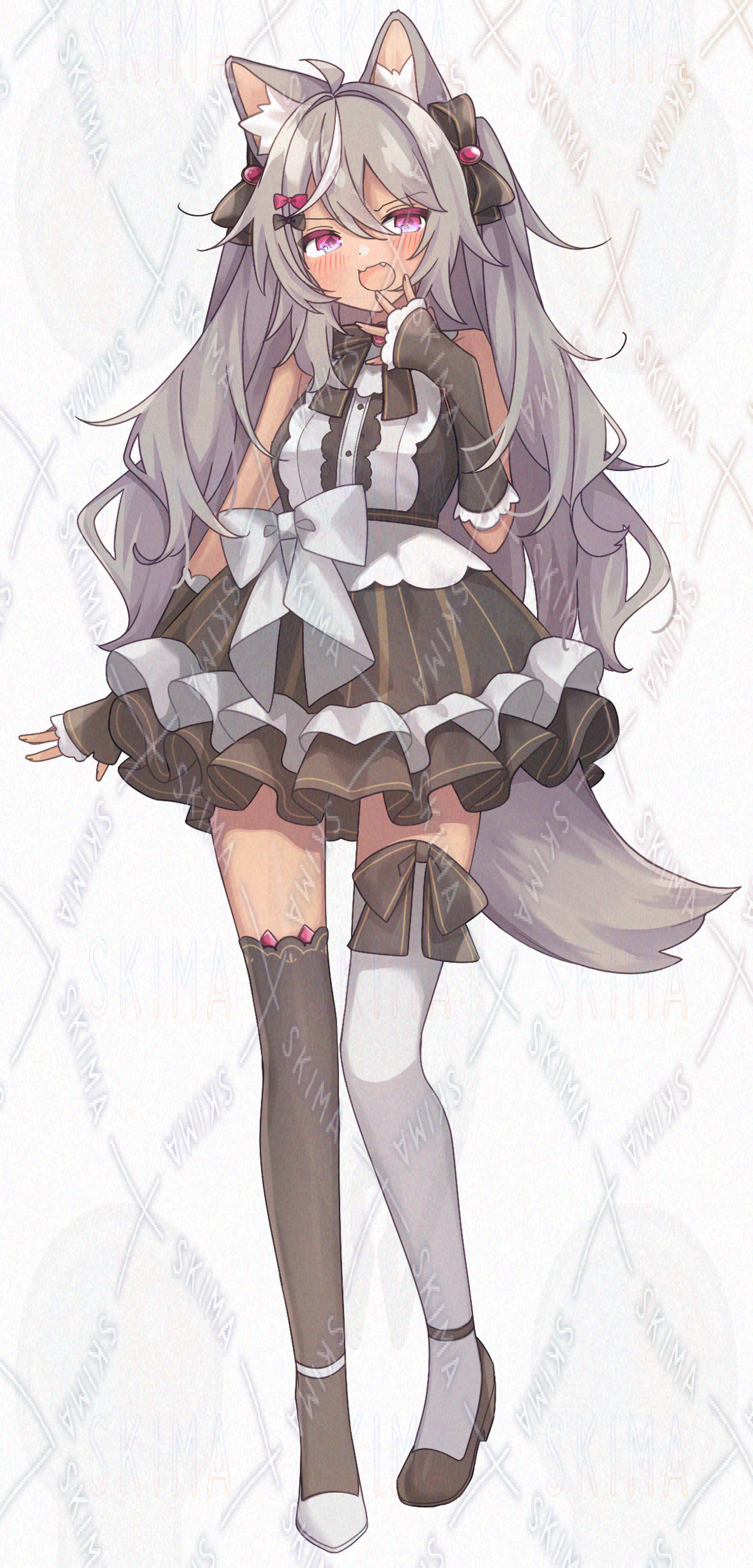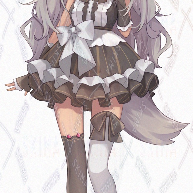 褐色肌のオオカミ耳尻尾の女の子