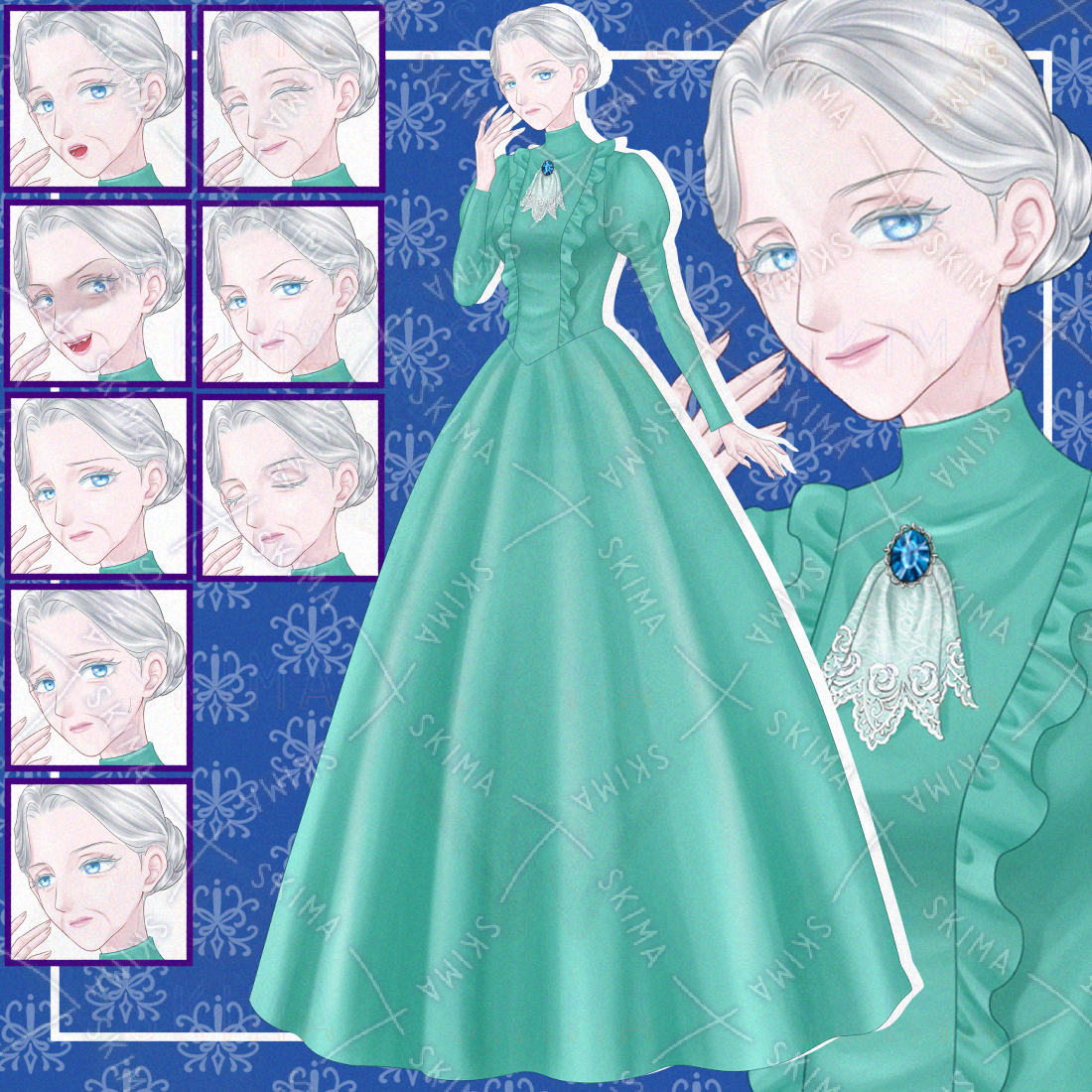 【検索用ワード:シニア女性 老女 貴婦人 おばあさん おばあちゃん 高齢者 ファンタジー 中世 ヨーロッパ 外国人 青い目 上品 きれい 美しい エレガント お年寄り