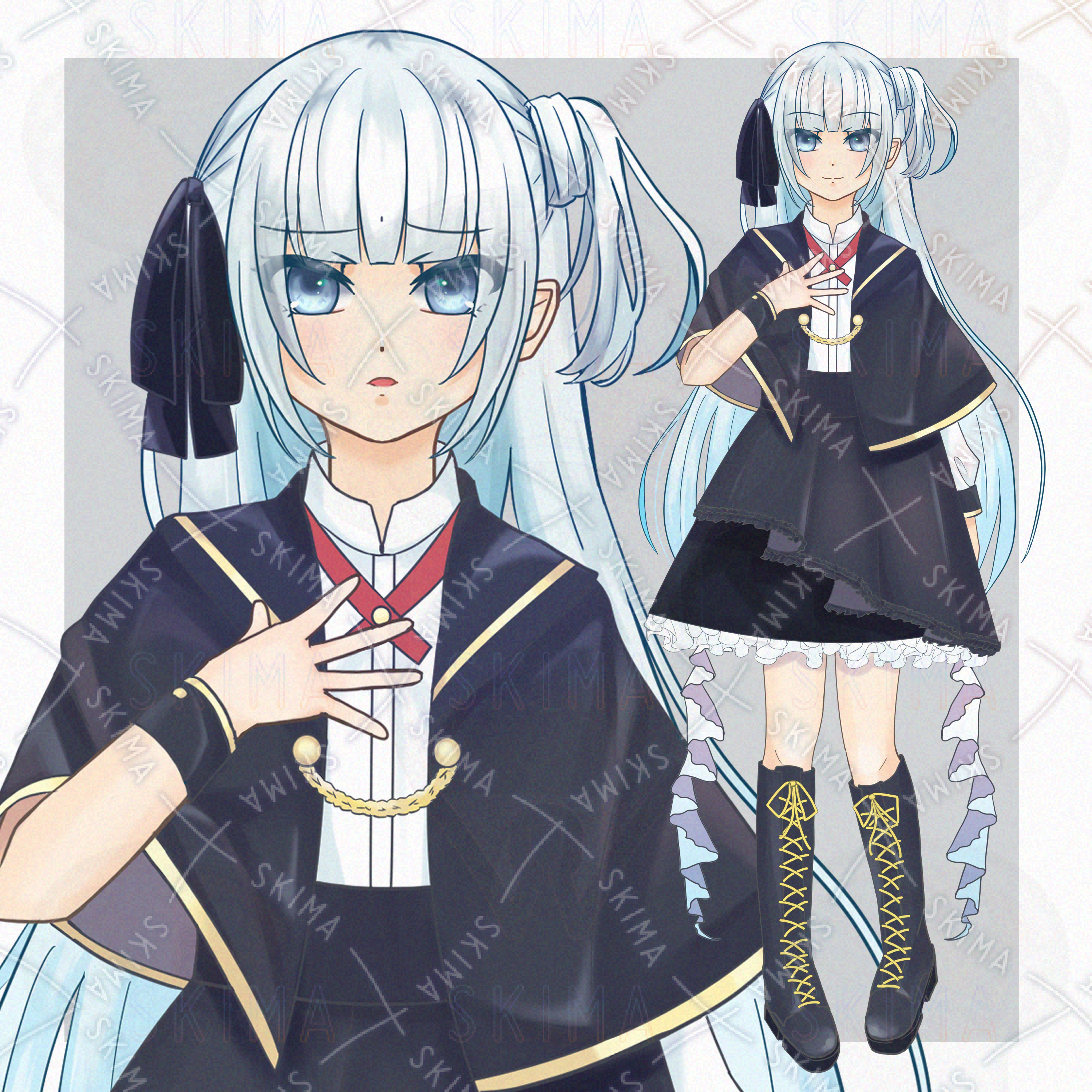 ロング 水色 制服 フリル 軍服 アイドル サイドアップ 清楚 ロングブーツ