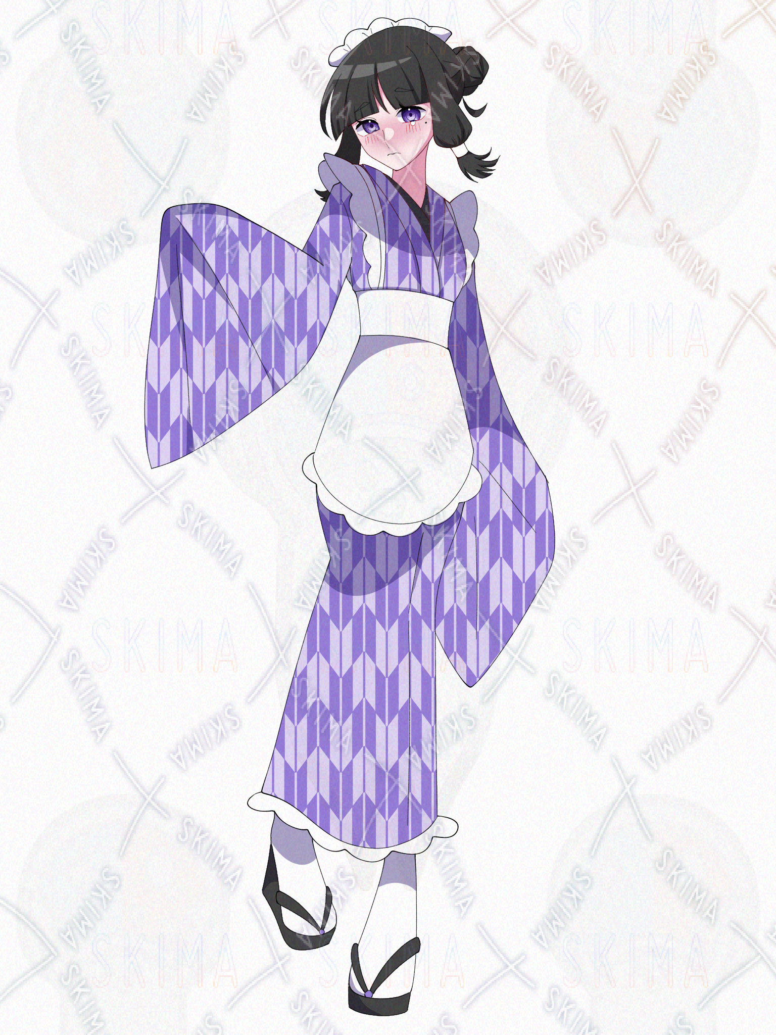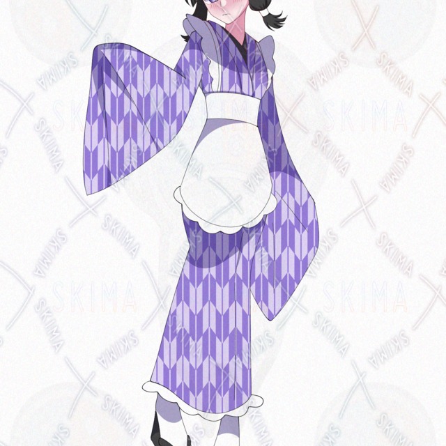 和風メイド服の黒髪の女の子