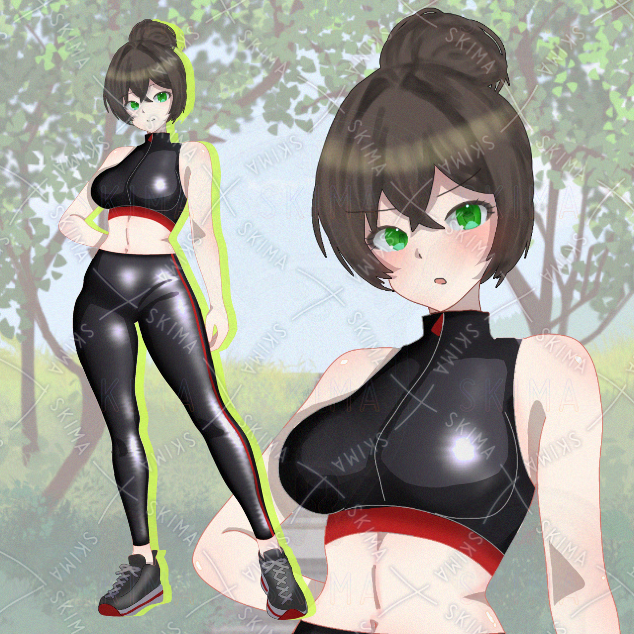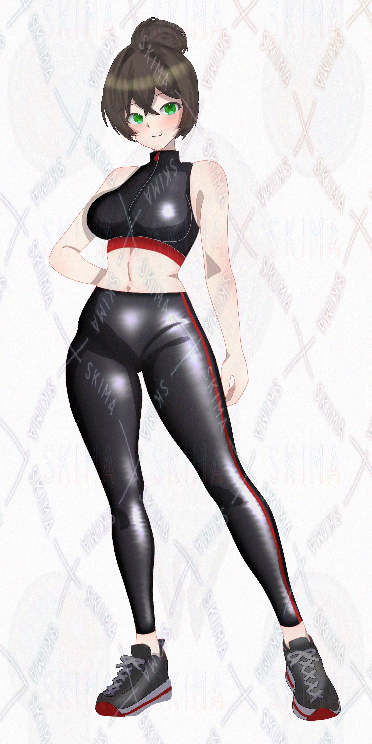 ジムトレーナーのようなフィットしたウェアを着た女の子の立ち絵です